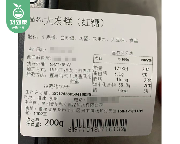 泉珍思饼大发糕-红糖味(200g/盒)生产日期:4月2日 保质期:常温5天 冷冻30天