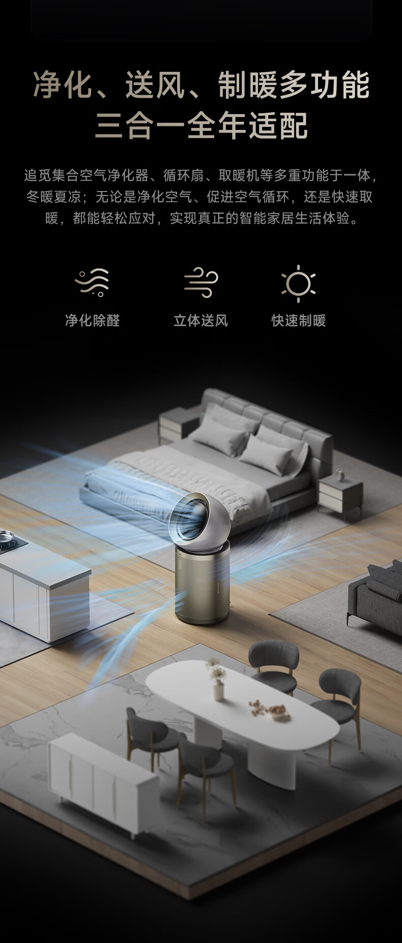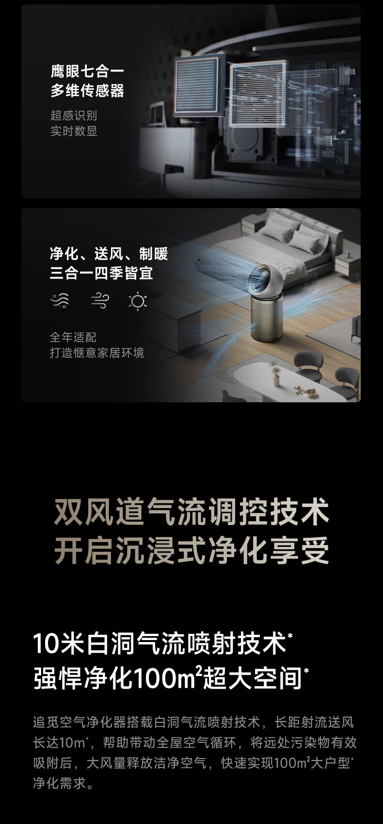 追觅/10空气净化器新房除甲醛烟味家用去猫毛制暖送风一体机_PM20版【3秒制暖丨180摆动送风丨6重净化消【新】