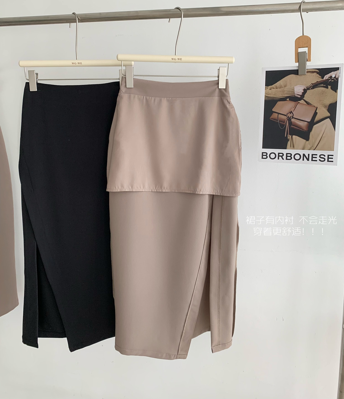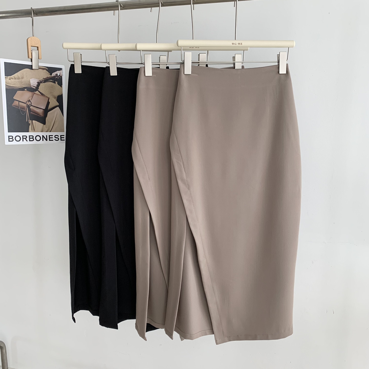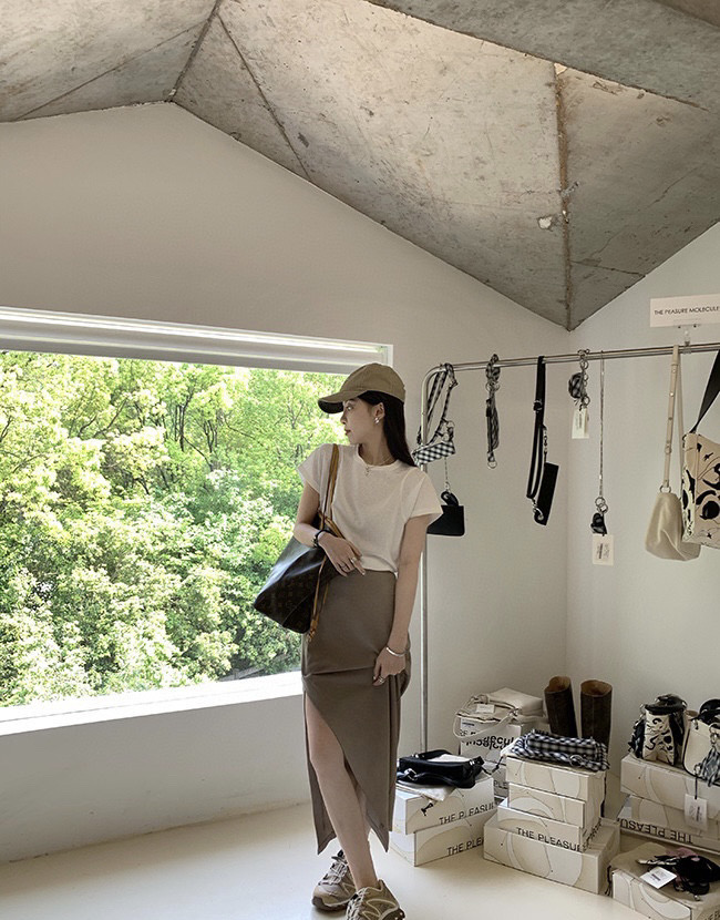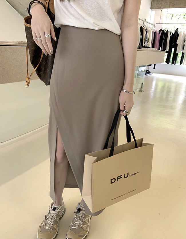 (清仓现货)【社群供K】气质纯色开衩半身裙