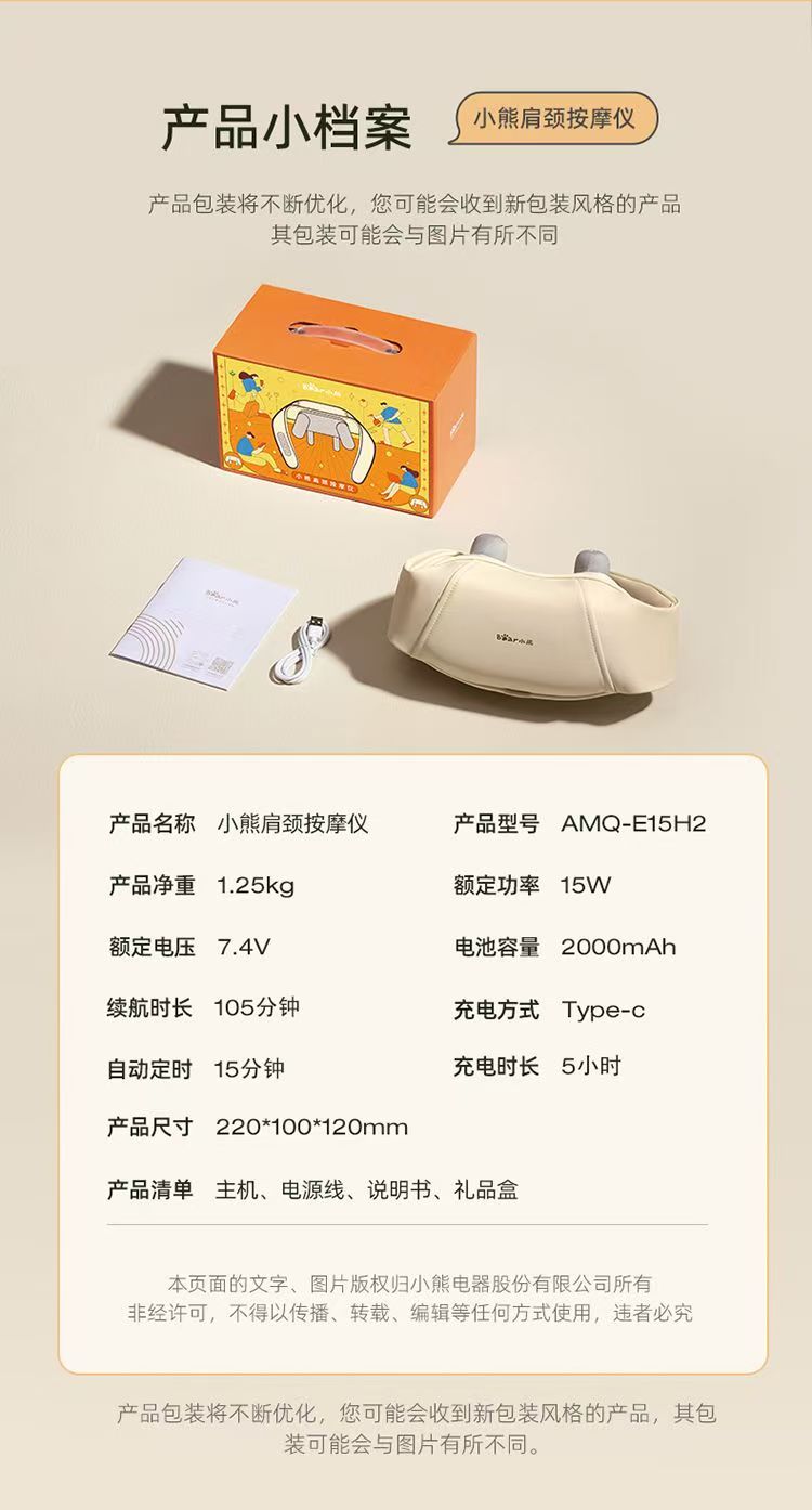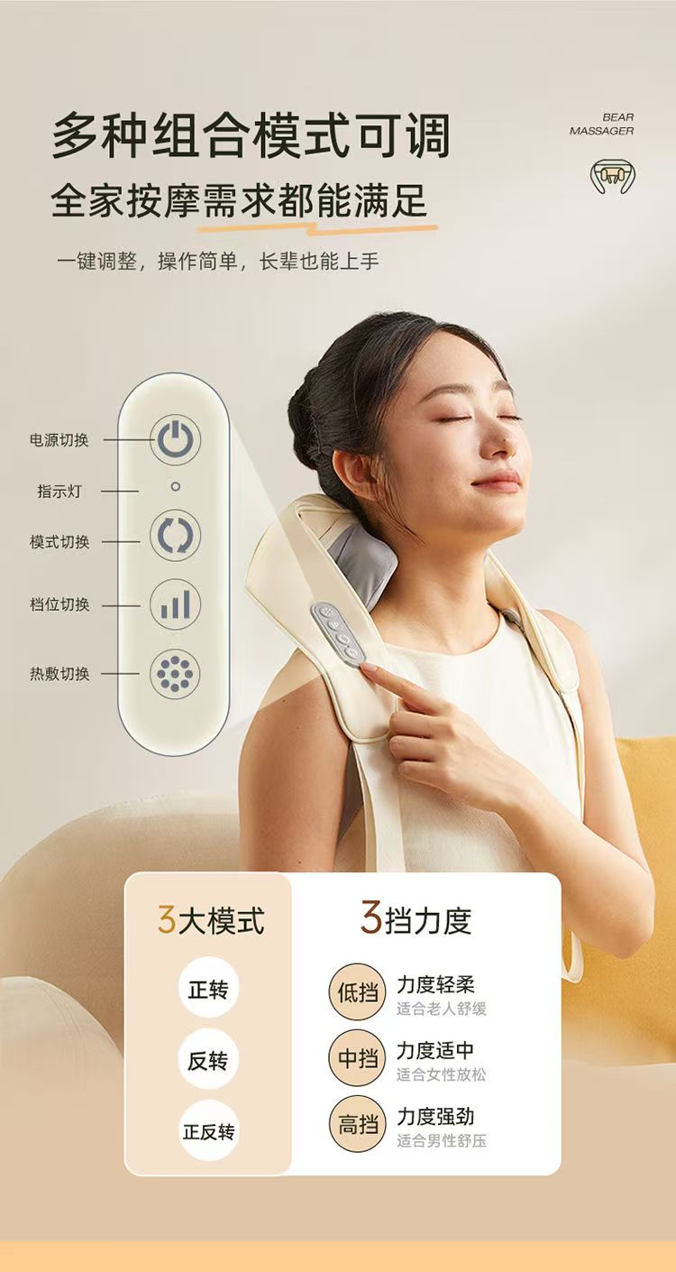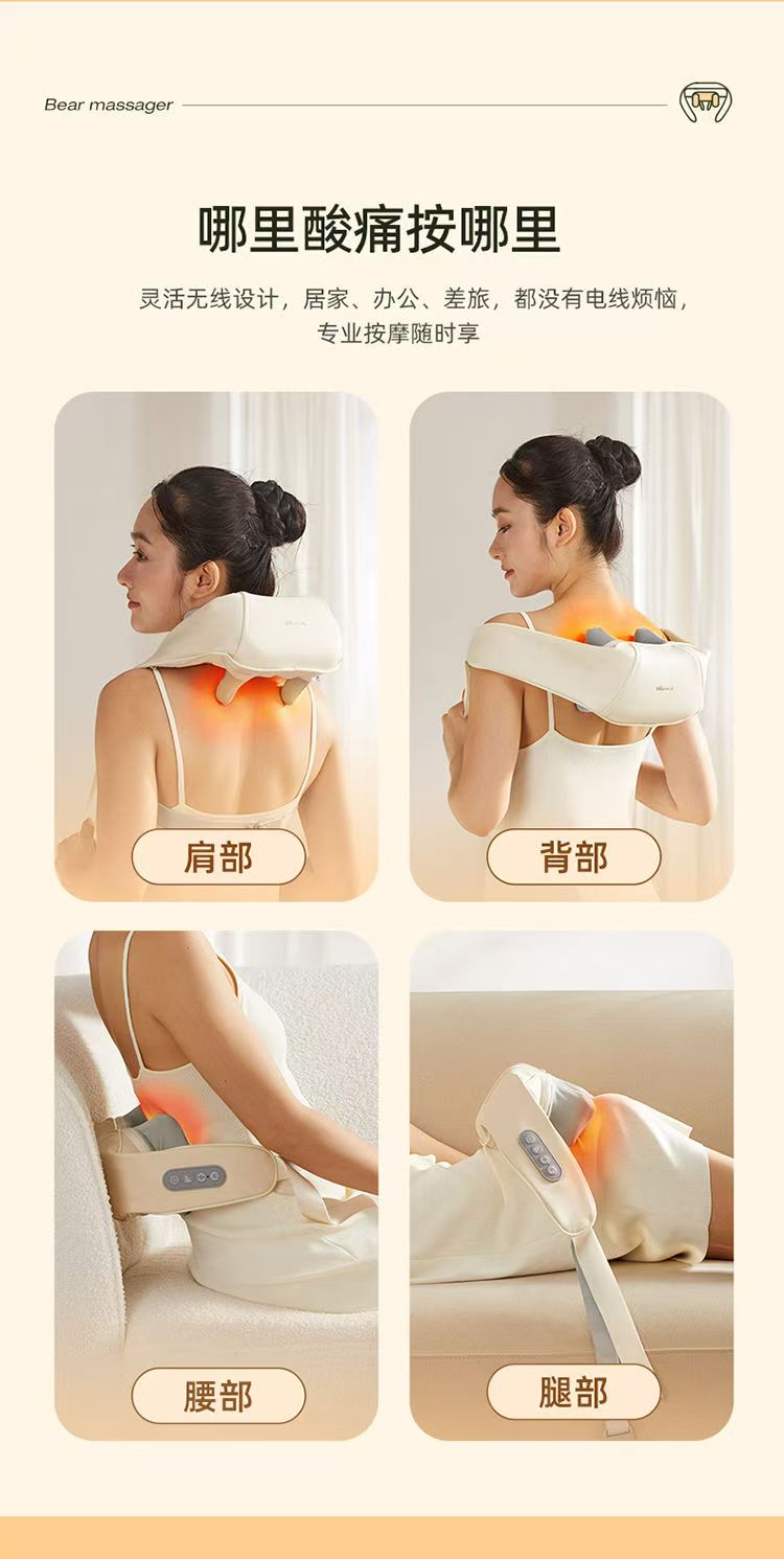 小熊肩颈按摩仪颈部按摩器家用肩部背部腰部揉捏颈椎多功能披肩