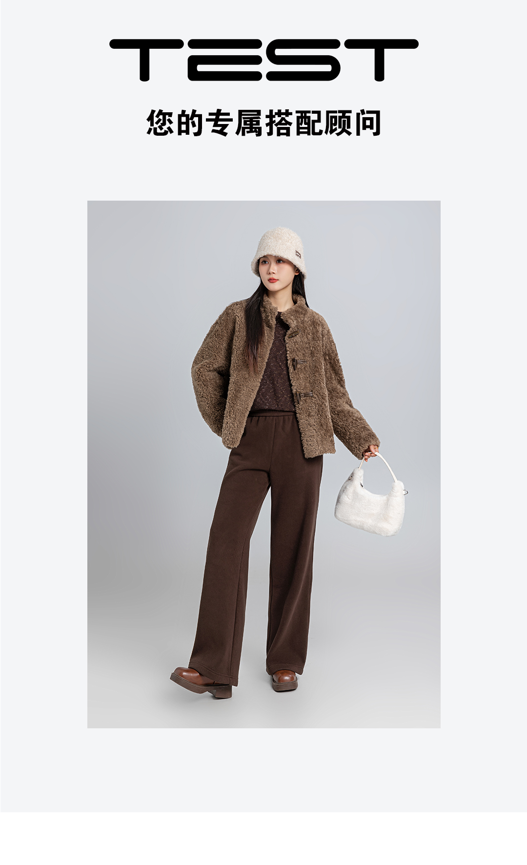 春上新复古咖色女宽松显瘦毛绒外套2261004