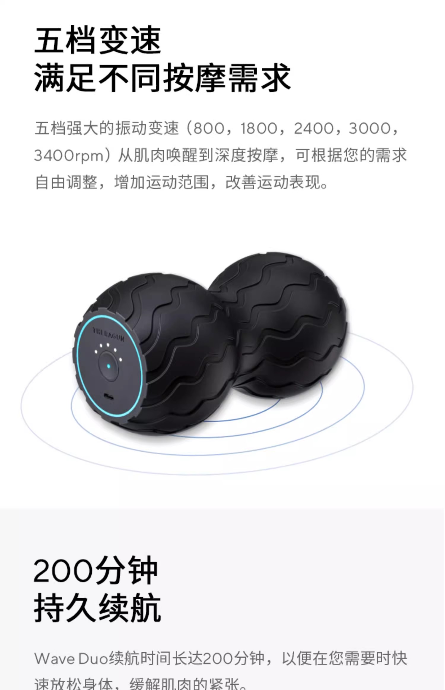Herabody美国智能Wave Duo肌肉放松专业按摩花生球泡沫轴筋膜柱