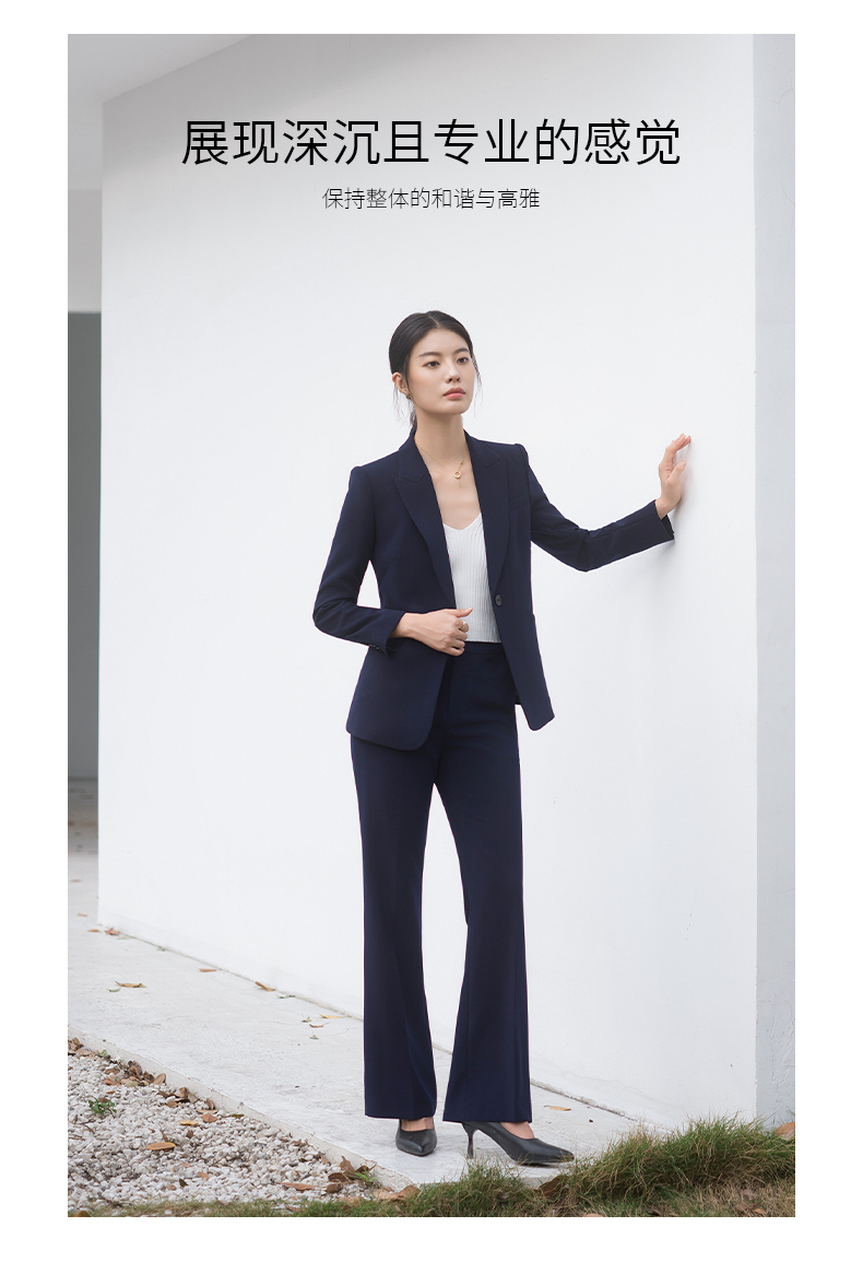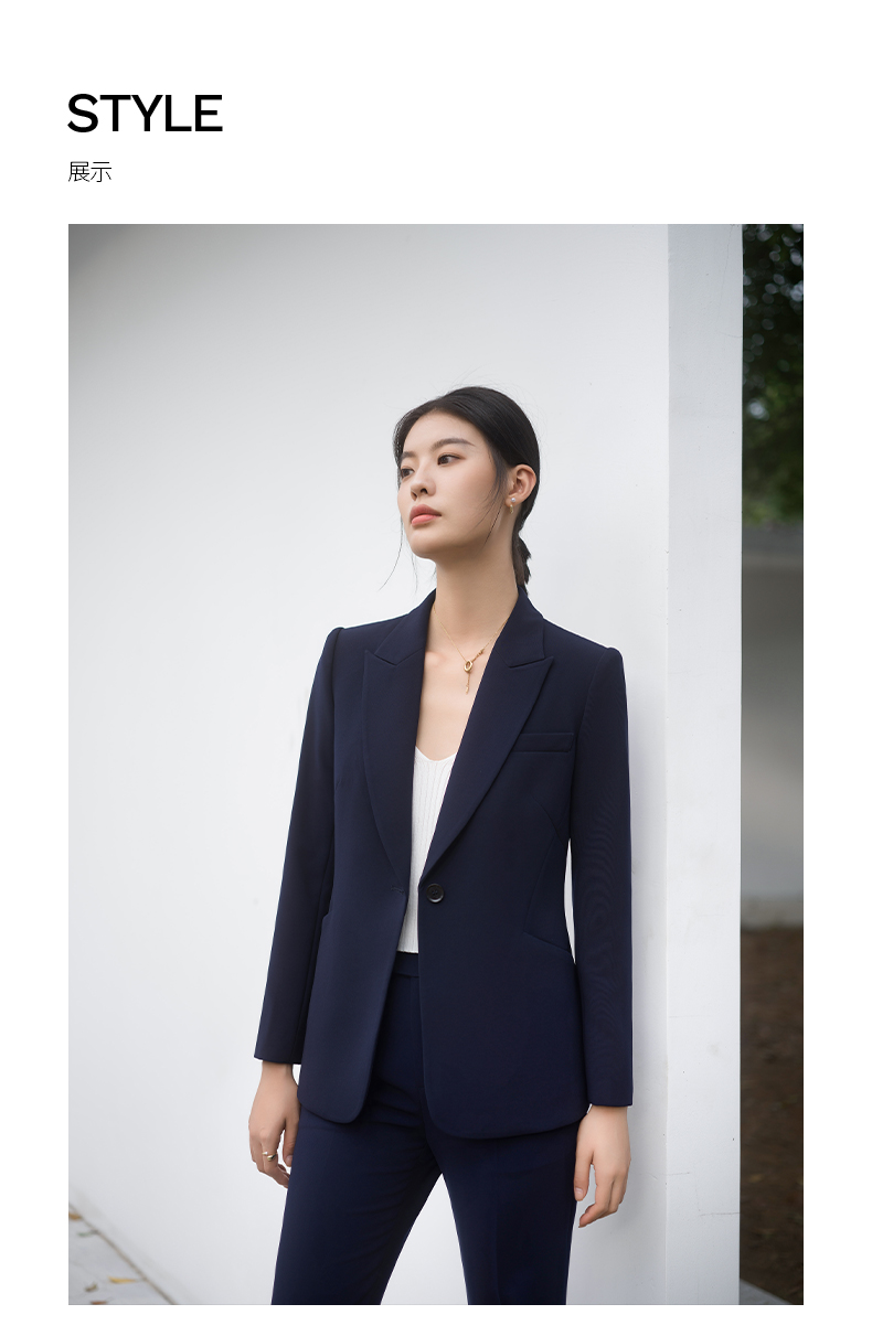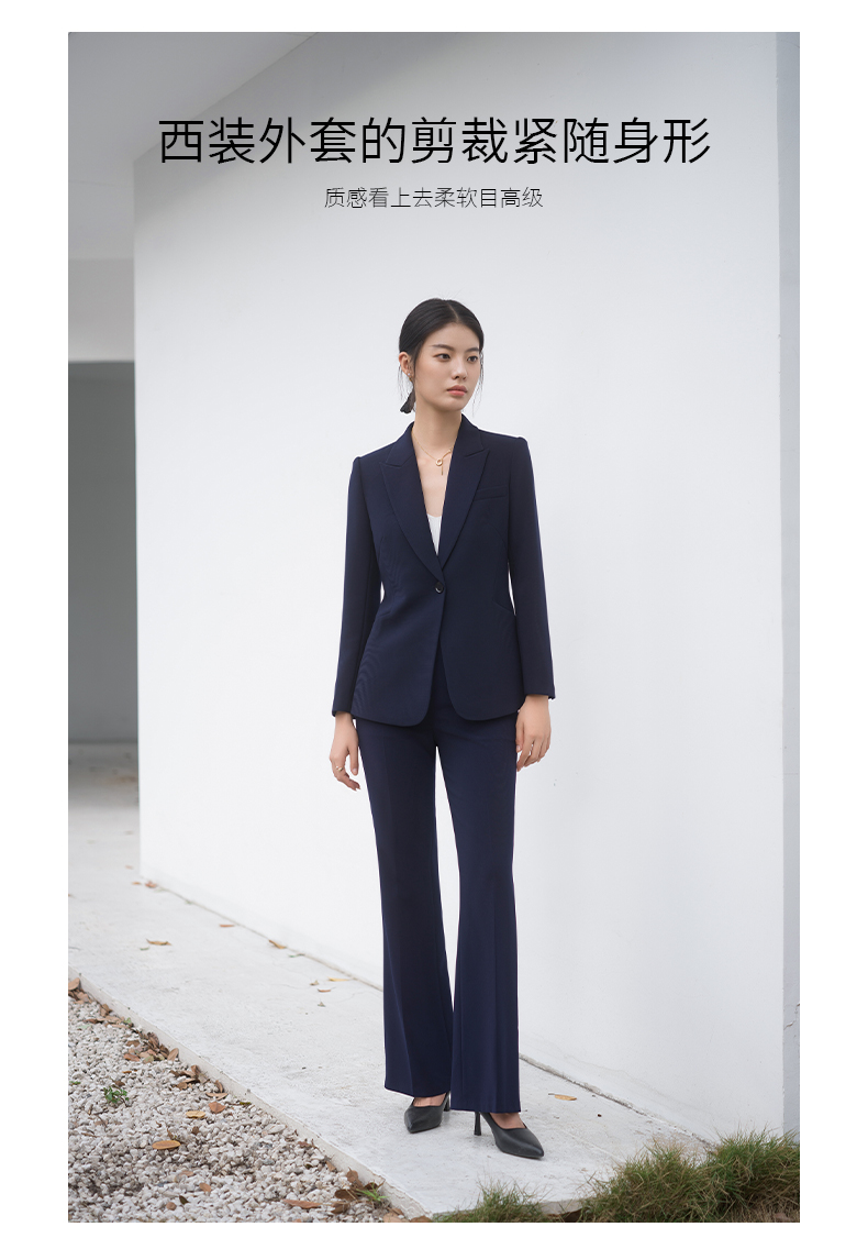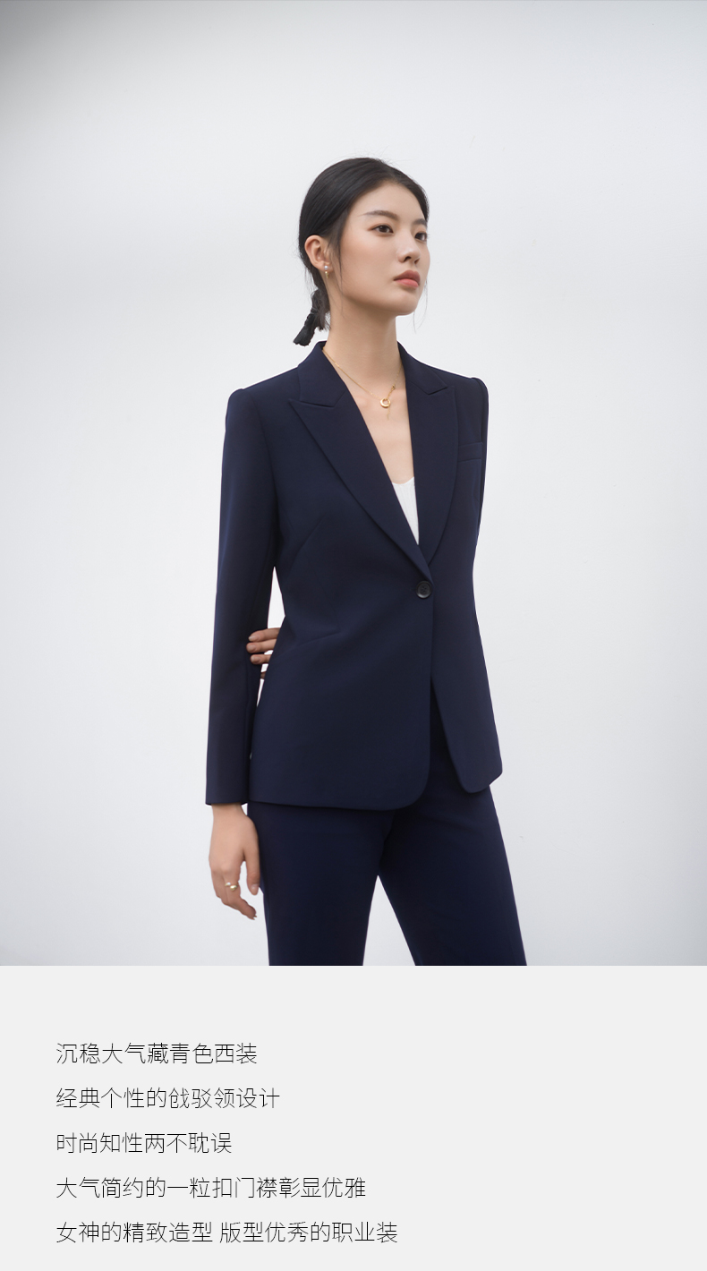 IWY/春季新款藏青色西装套装高端休闲宽松西服商务职场一粒扣裤装C14116+P34116