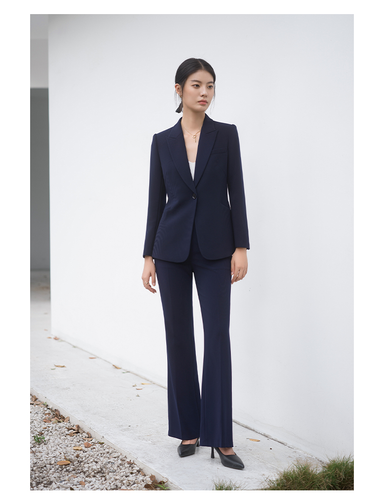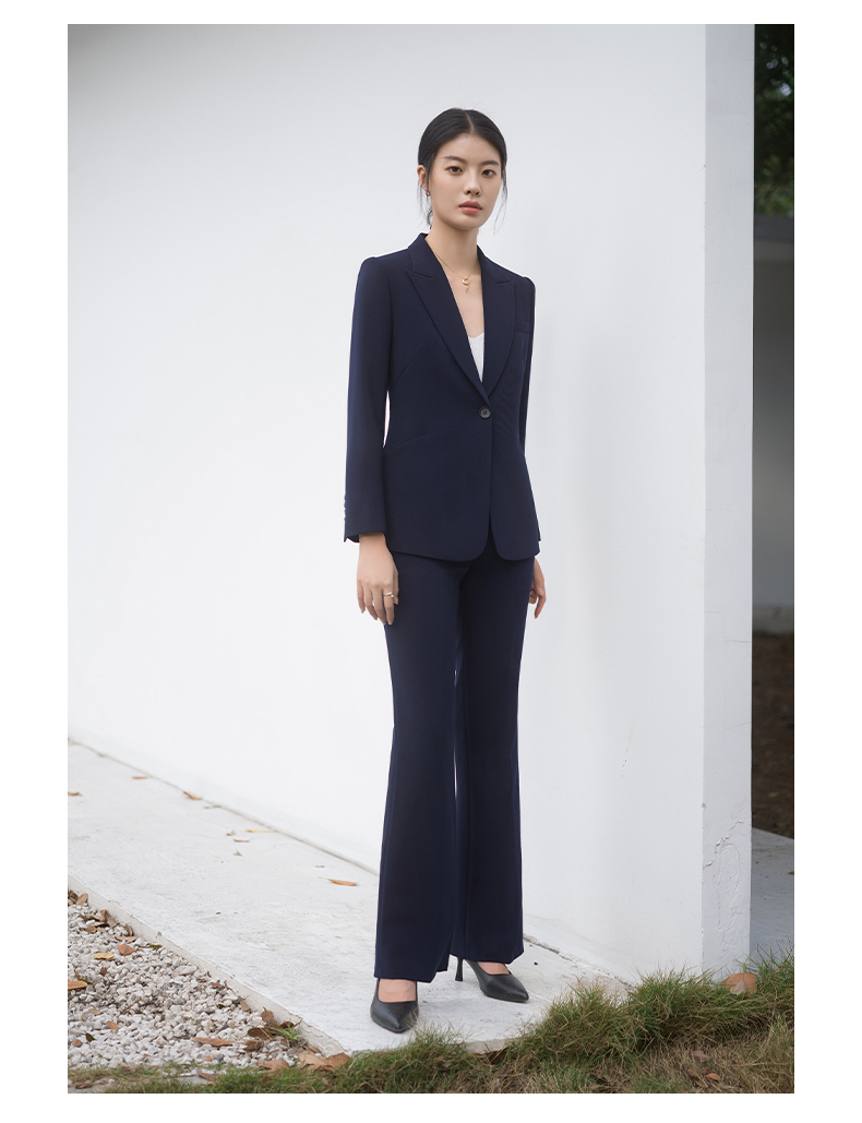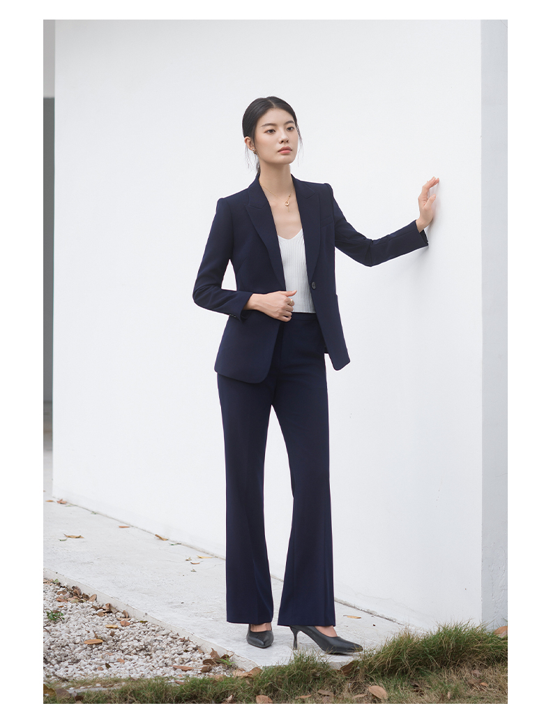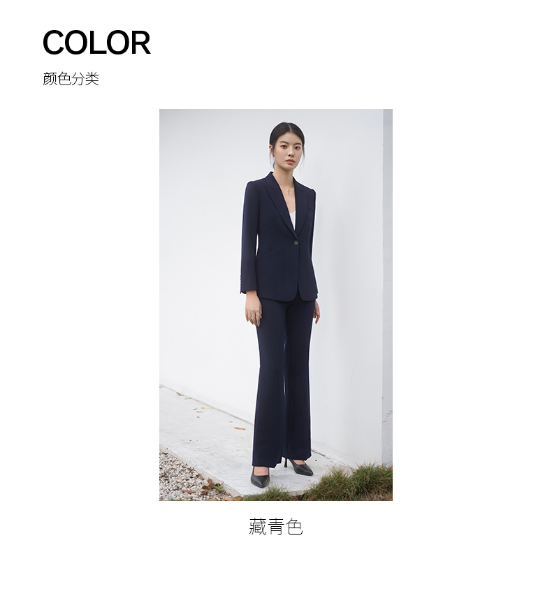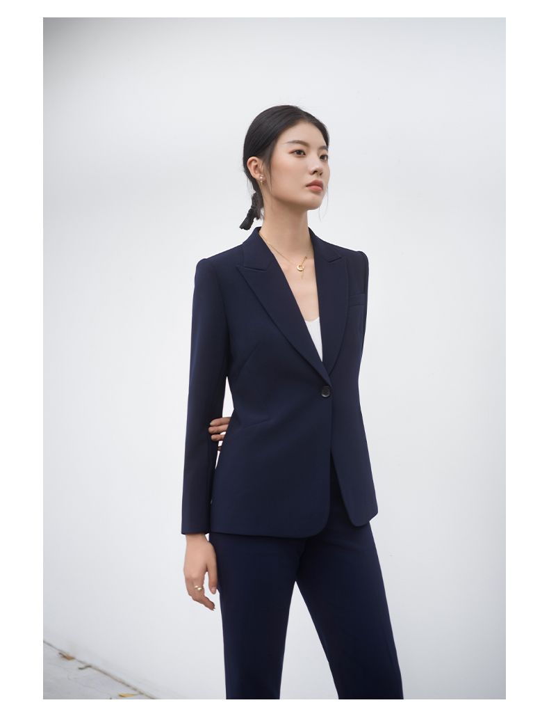 IWY/春季新款藏青色西装套装高端休闲宽松西服商务职场一粒扣裤装C14116+P34116