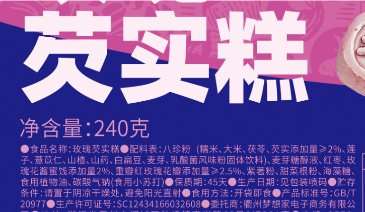 【玫瑰芡实糕】八珍古方焕新,乳酸菌加持吸收力,融合茯苓、芡实、莲子、山药等多味药食同源食材!创新添加乳酸菌风味粉,有利肠道蠕动,粗粮细作更易消化