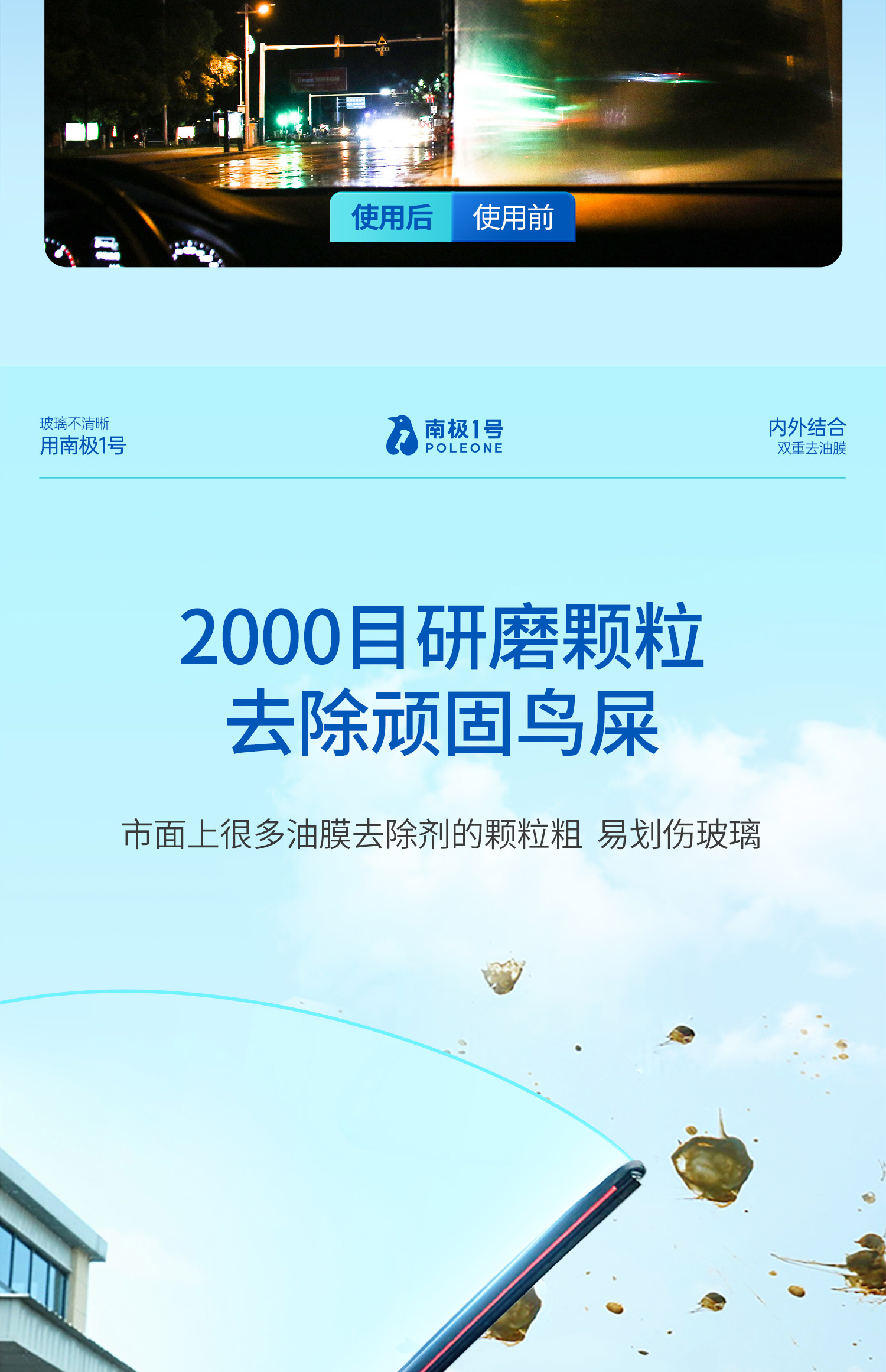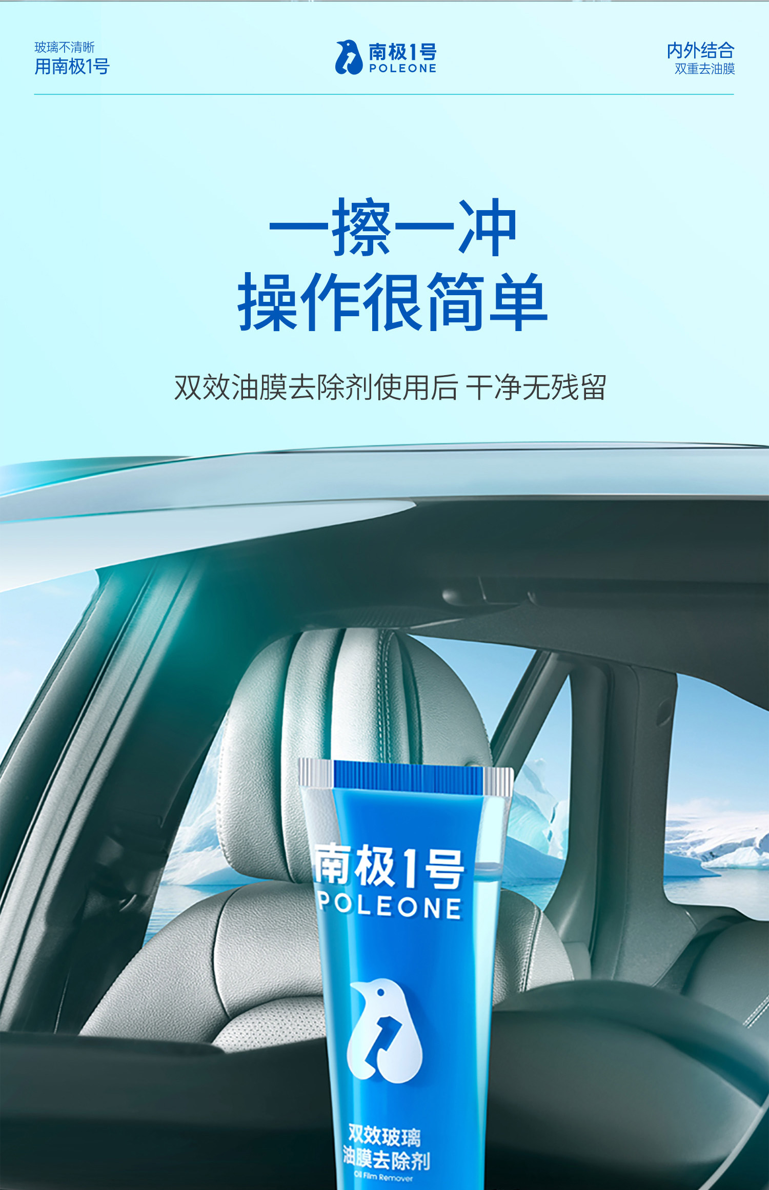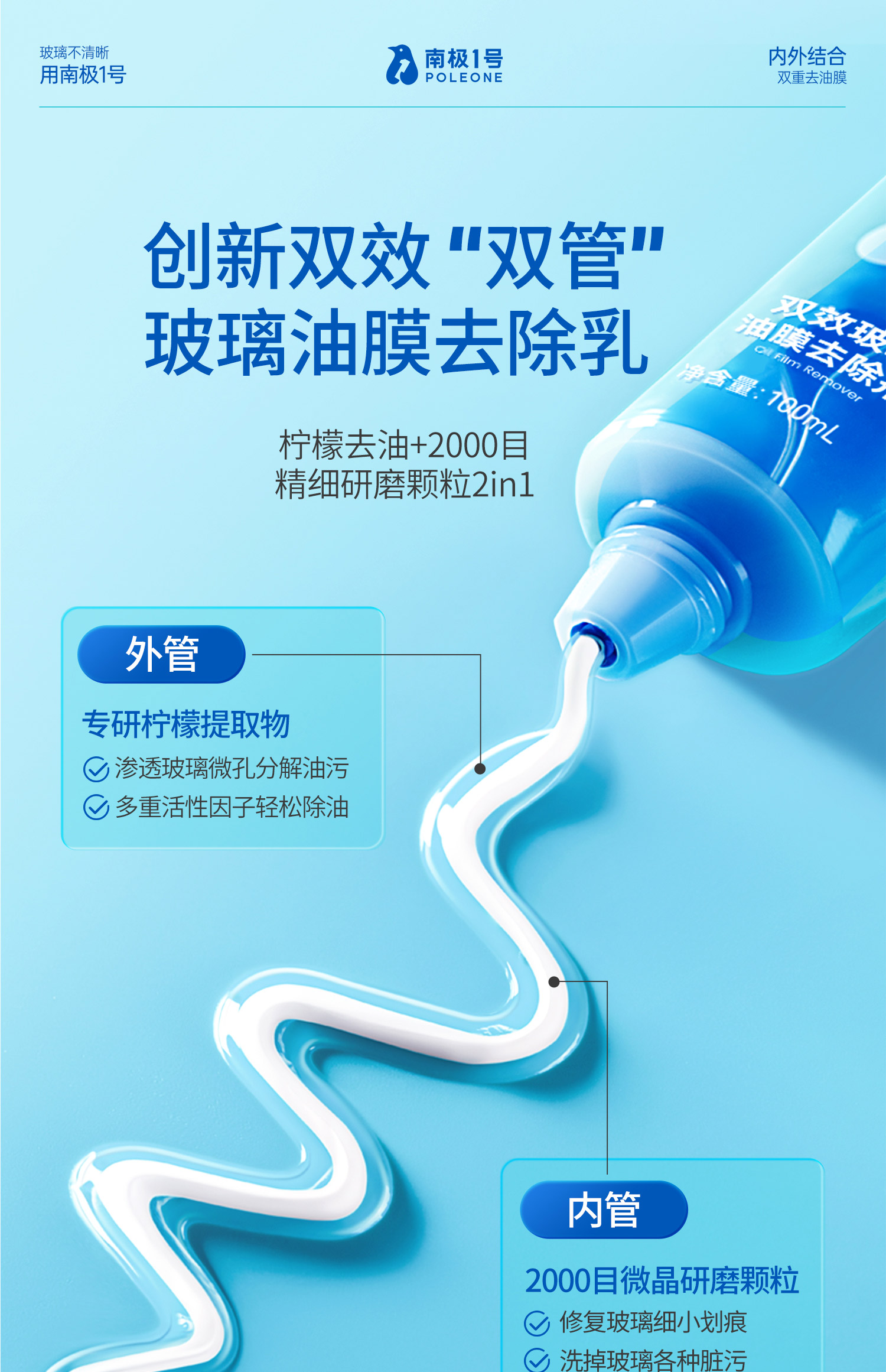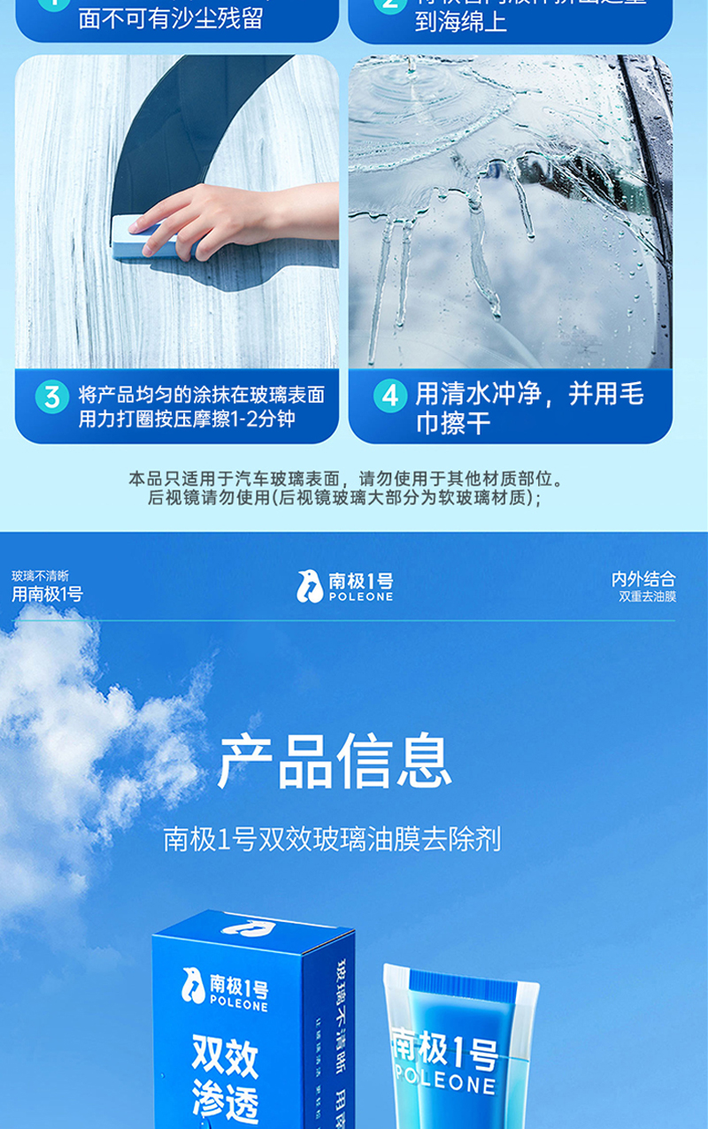 【南极1号】双效玻璃油膜去除剂 全新双层双效油膜去除乳