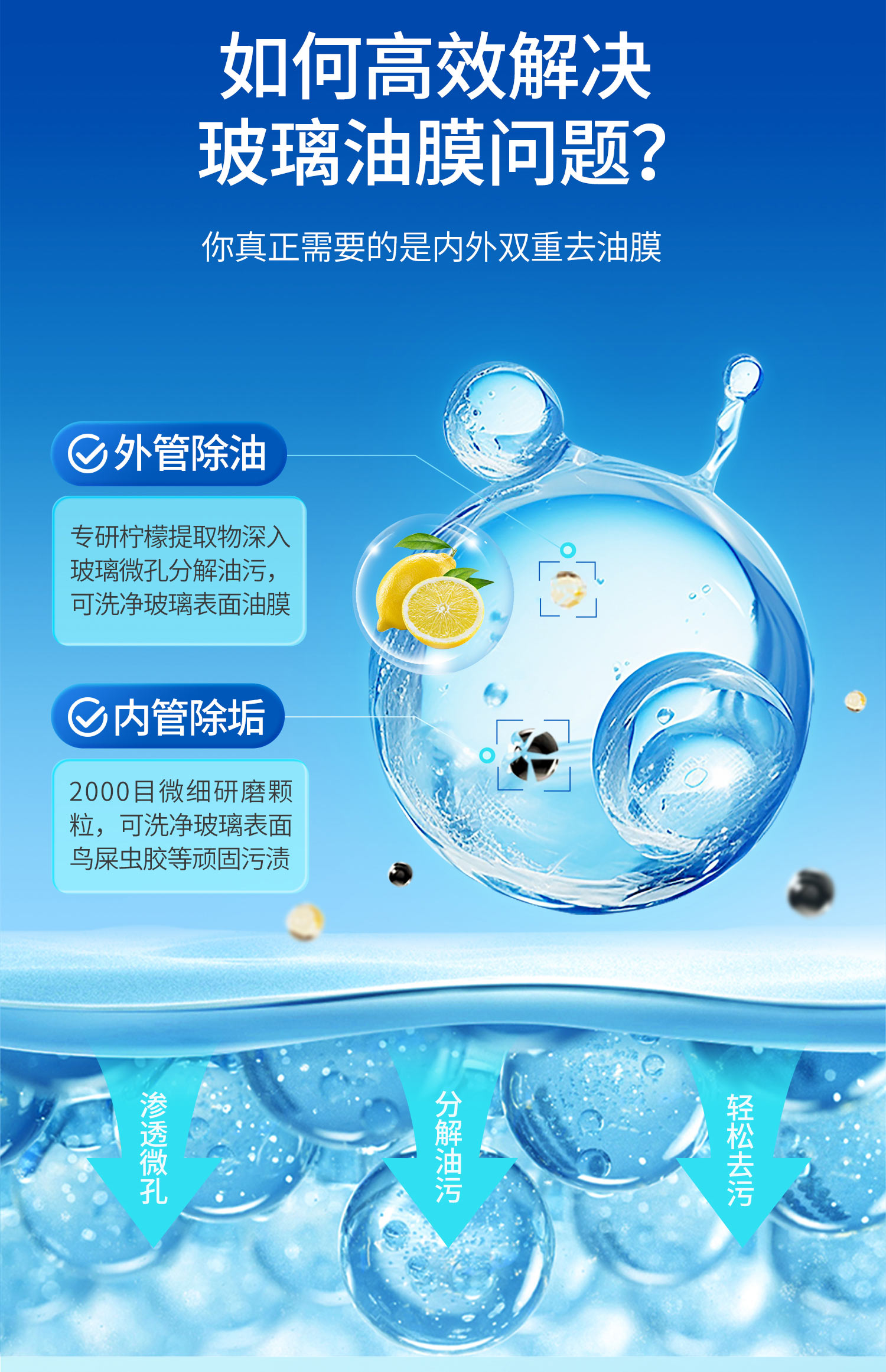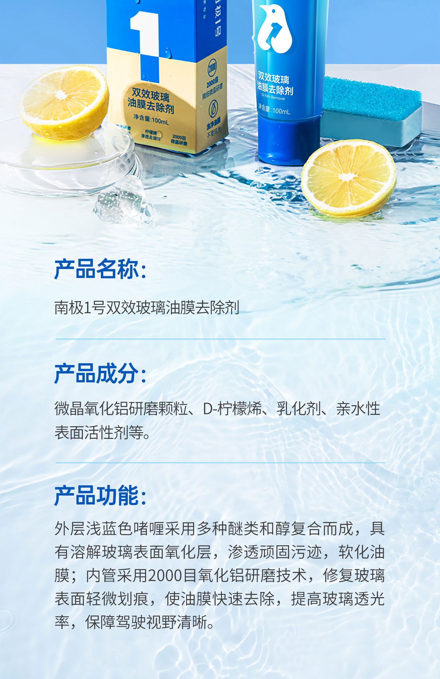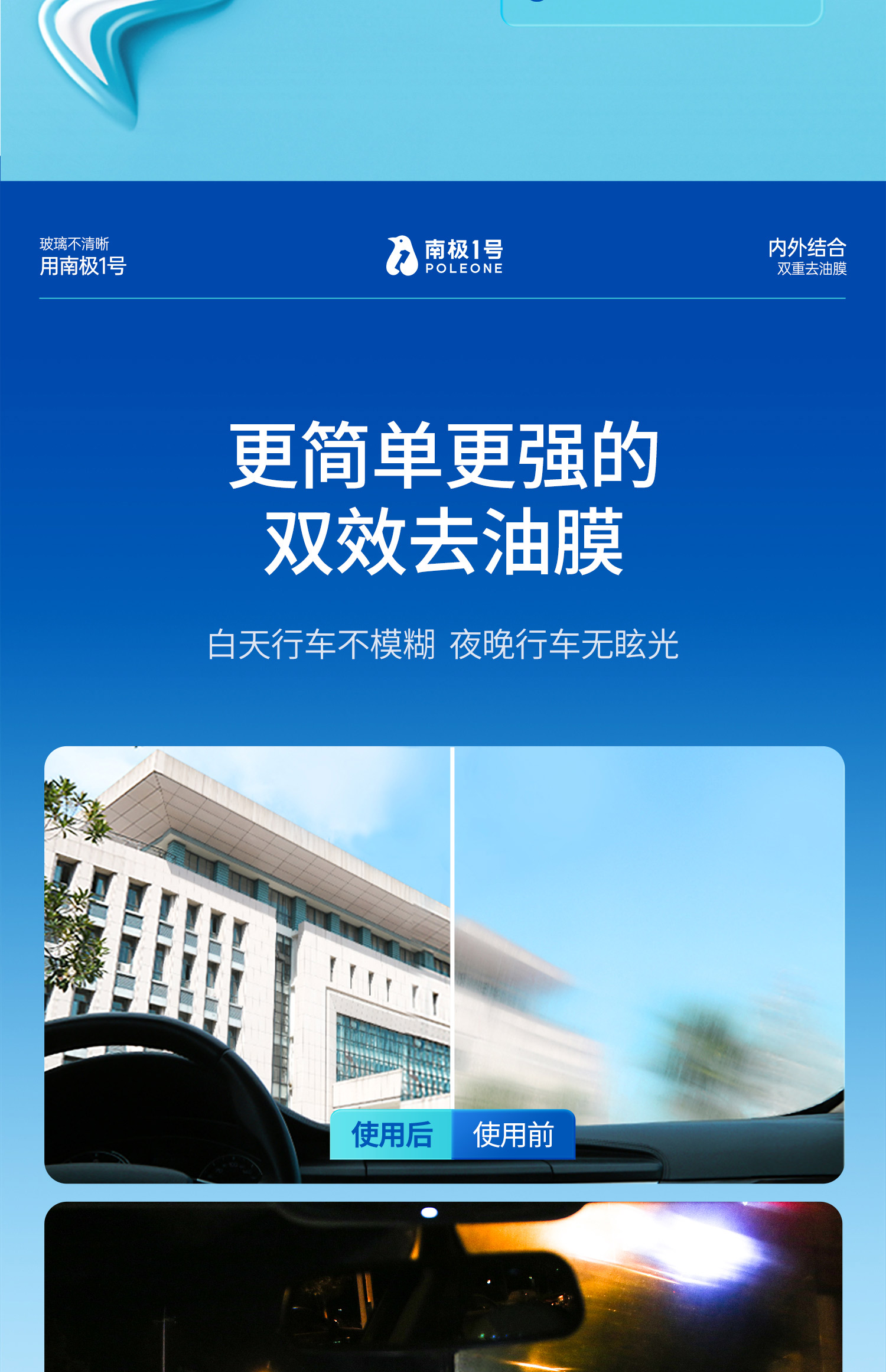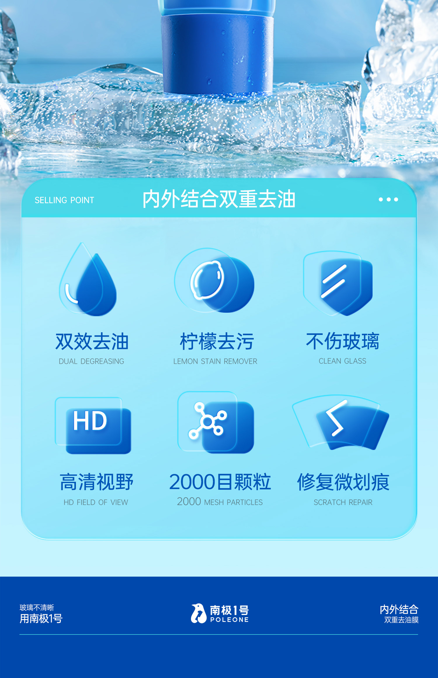 【南极1号】双效玻璃油膜去除剂 全新双层双效油膜去除乳