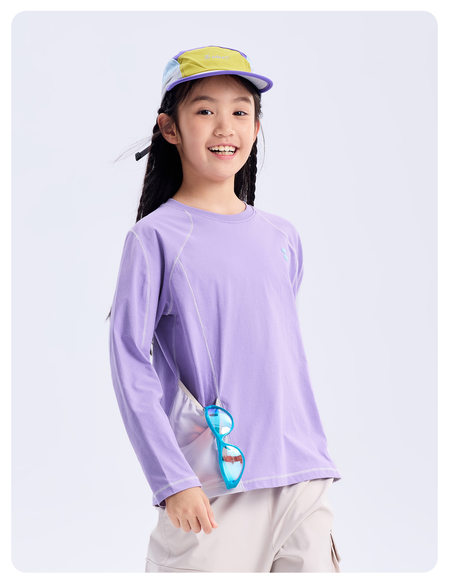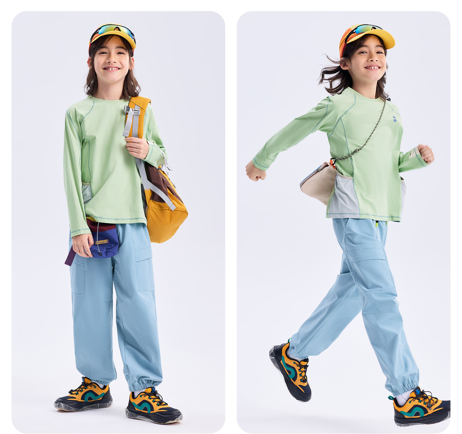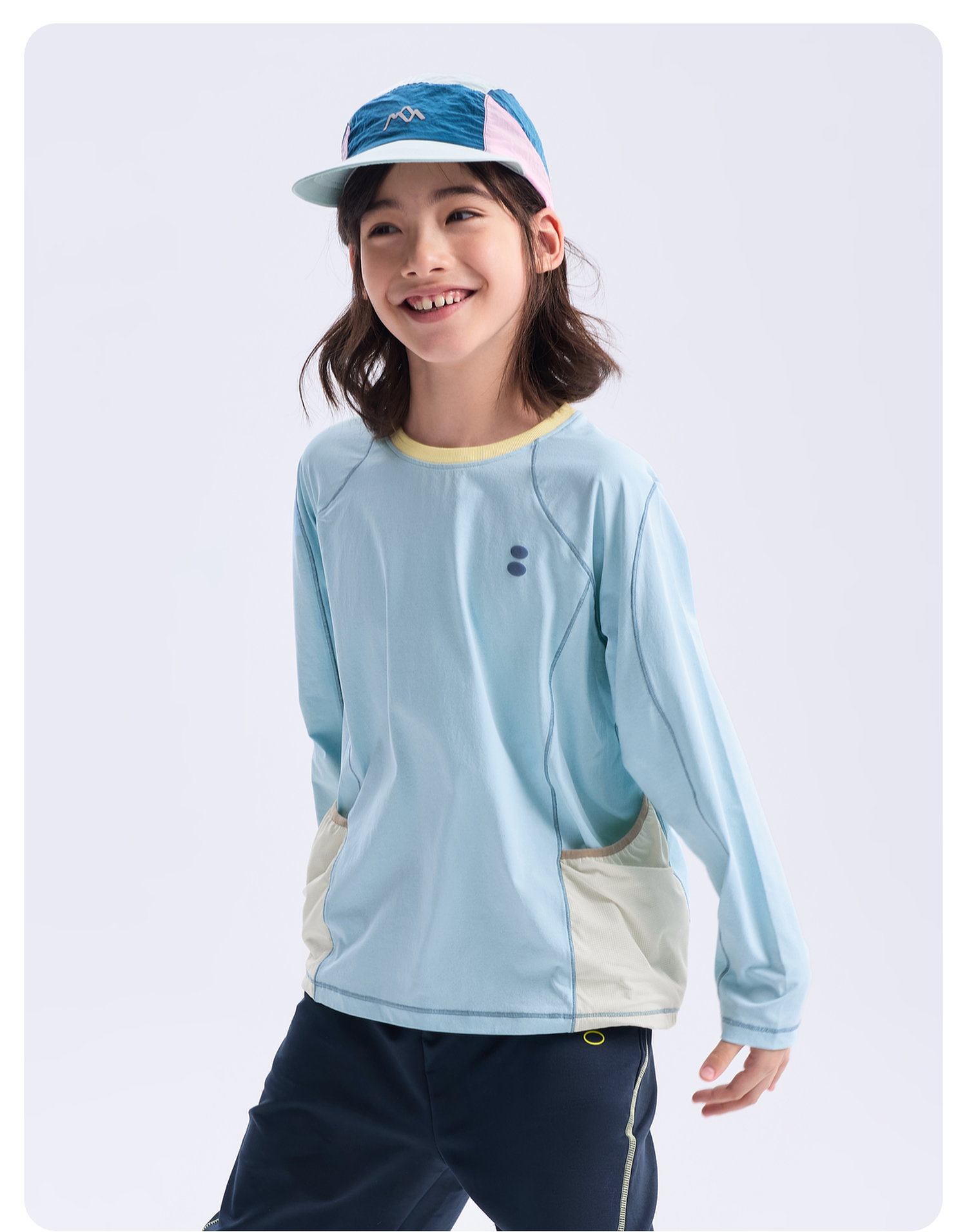 【代发】绿标越野速干T7A抑菌T儿童秋季长袖上衣简约纯色款SUNNYWHITEGreen
