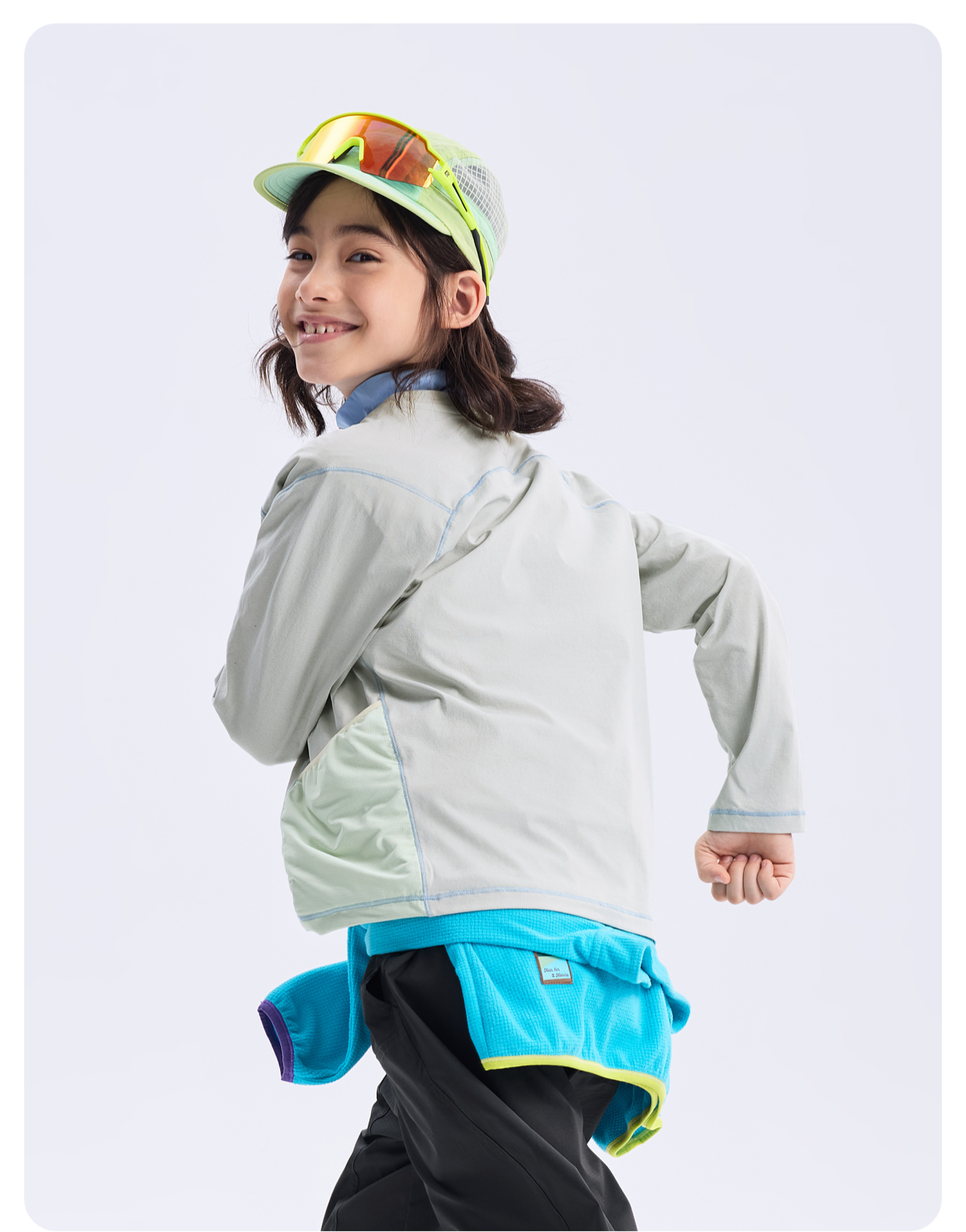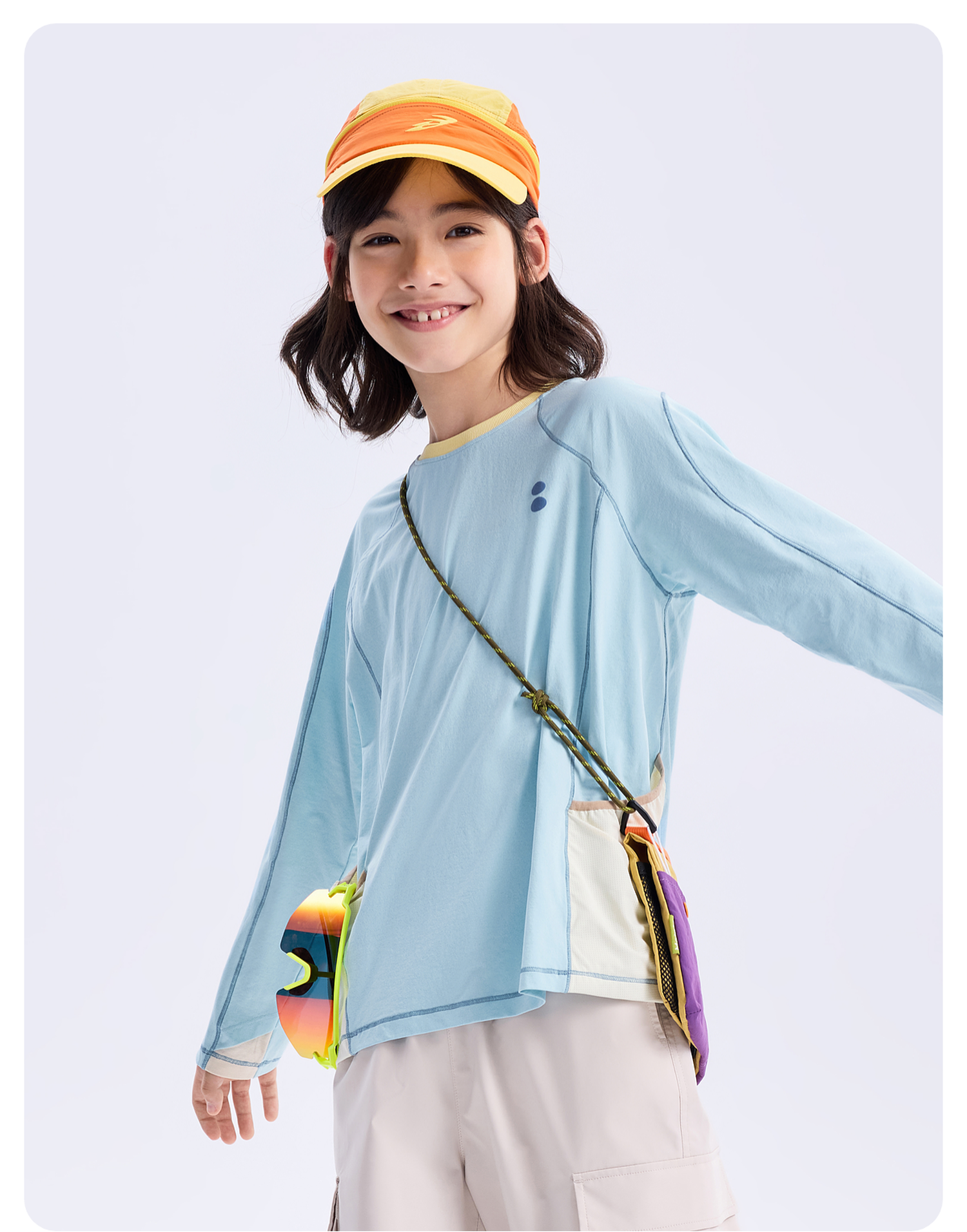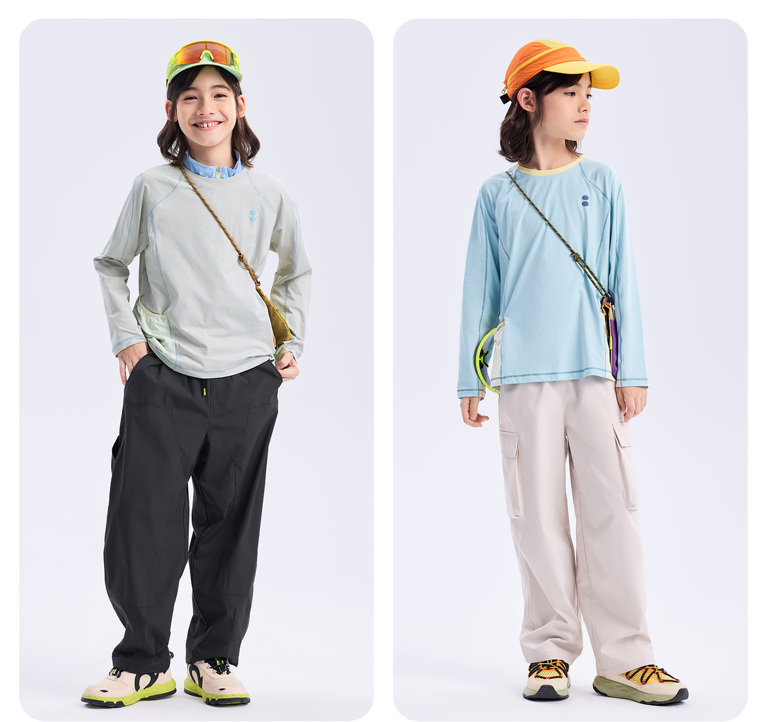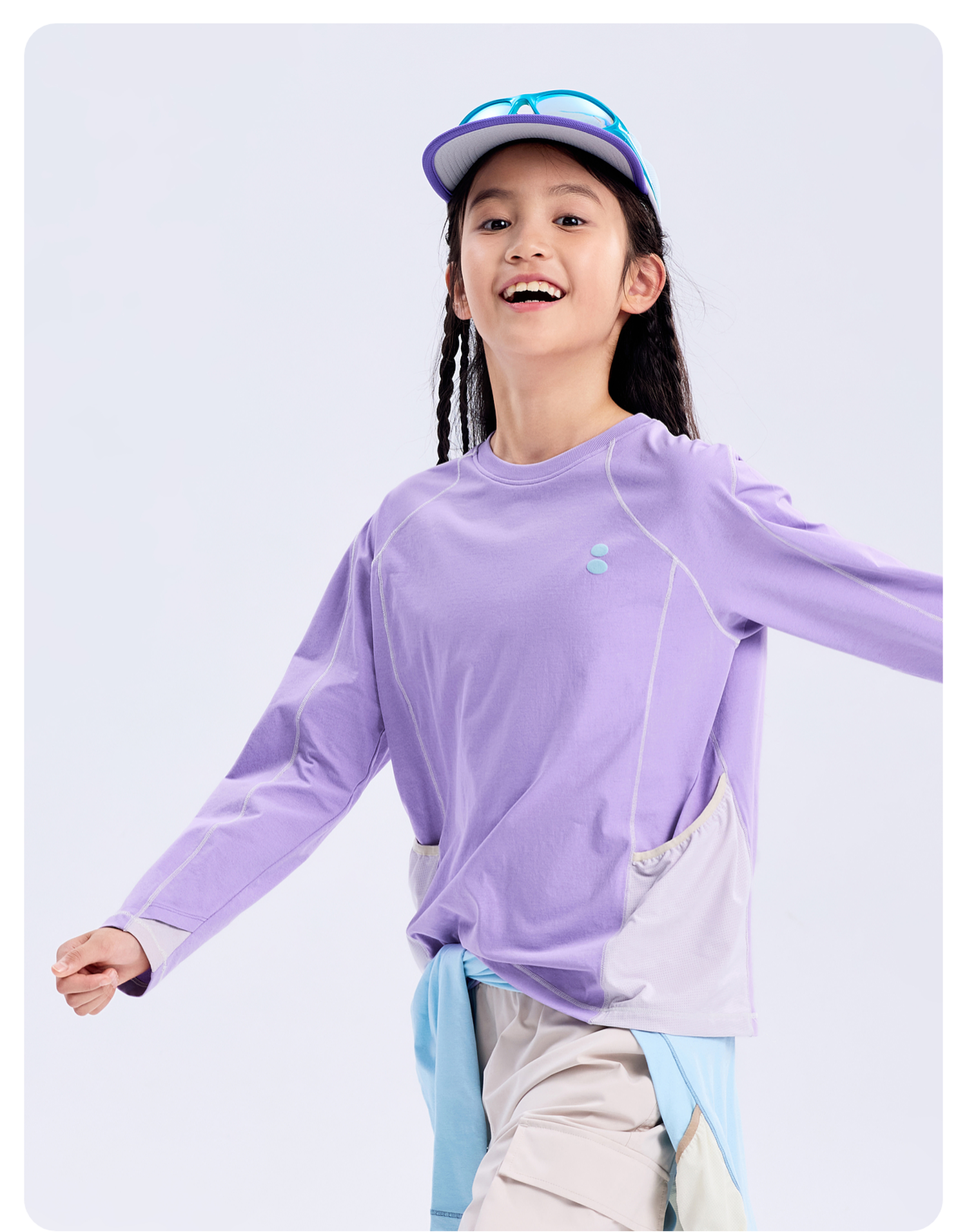 【代发】绿标越野速干T7A抑菌T儿童秋季长袖上衣简约纯色款SUNNYWHITEGreen