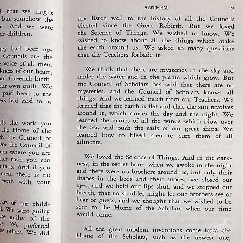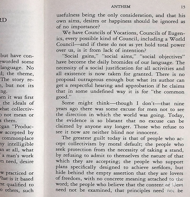 This expanded edition of Ayn Rand's classic tale of a future dark age of the great "We"--in which individuals have no name, no independence, and no values--is a beautifully written, powerful novel that projects current social trends into the future, and anticipates such later Rand masterpieces as The Fountainhead and Atlas Shrugged.