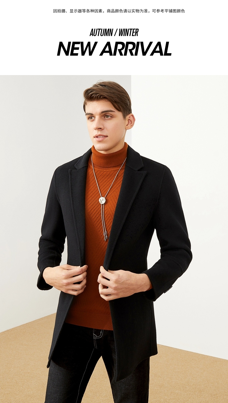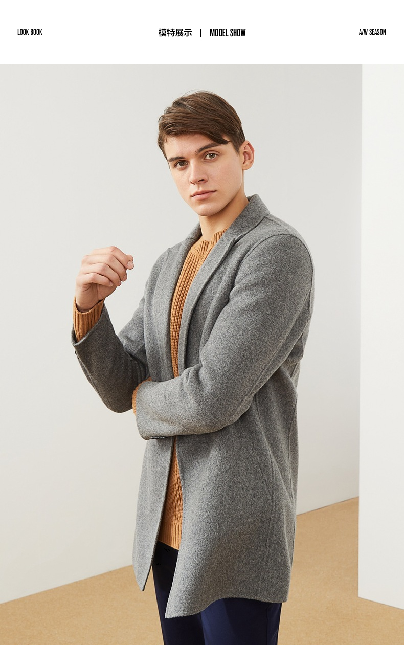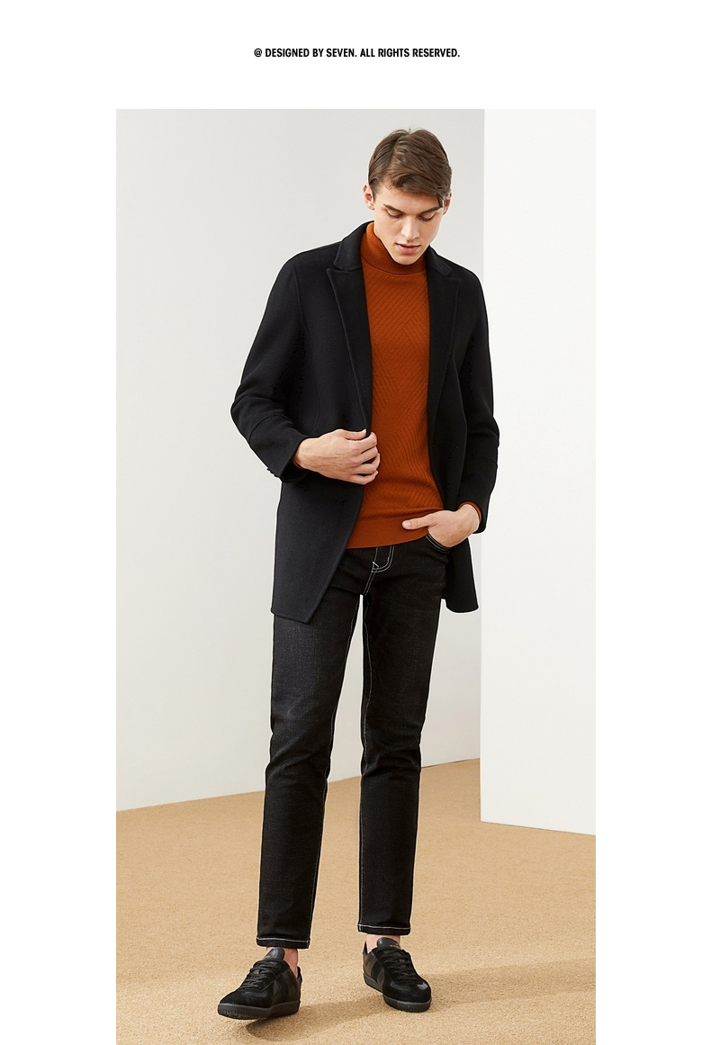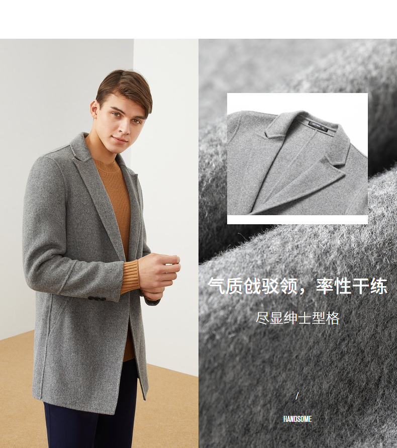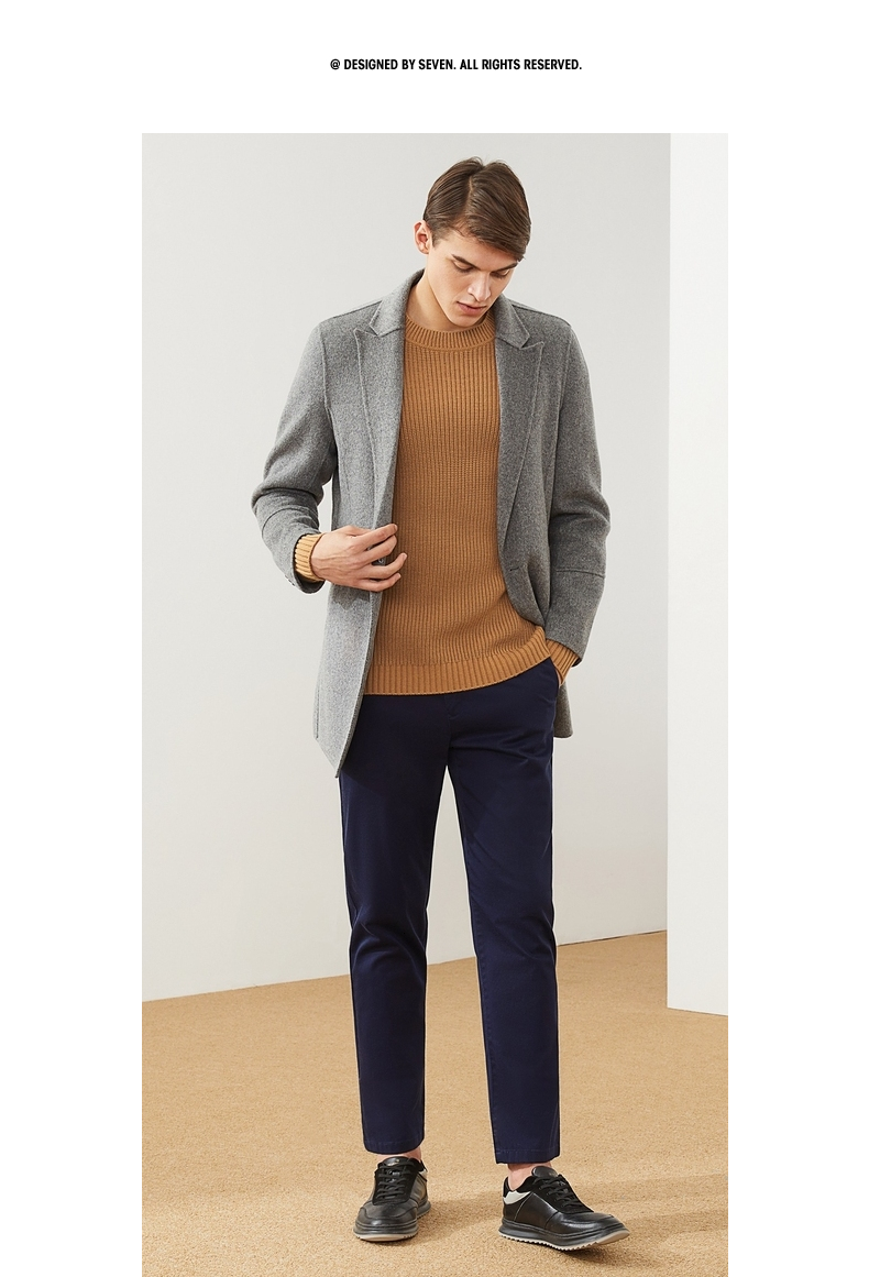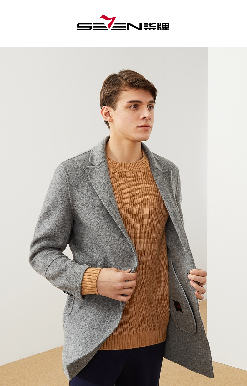 【100绵羊毛】柒牌男装毛呢男士大衣中长款加厚外套保暖121D70010
