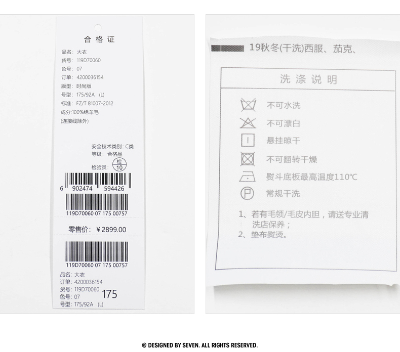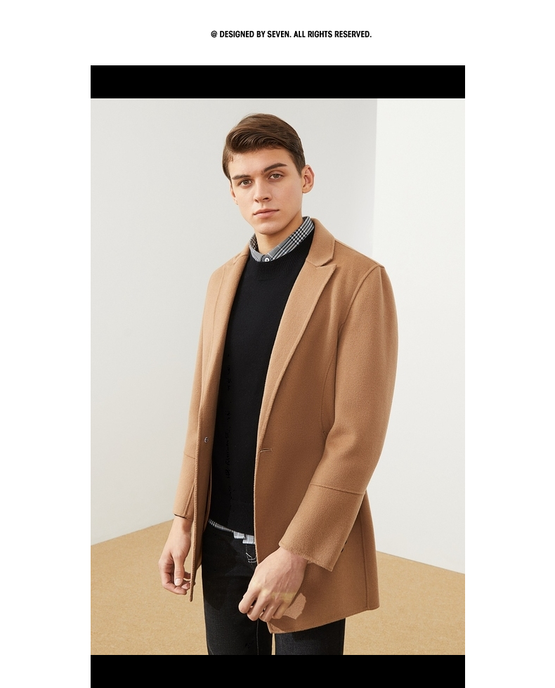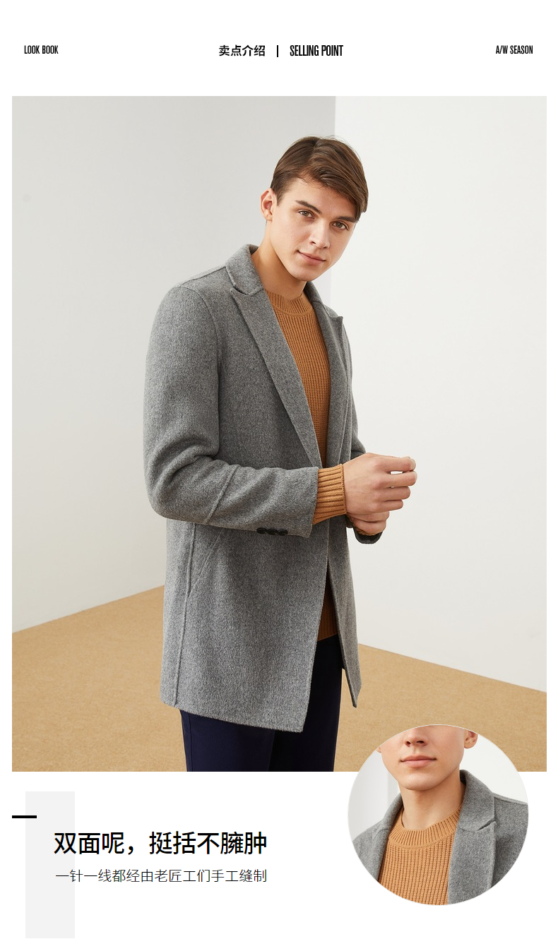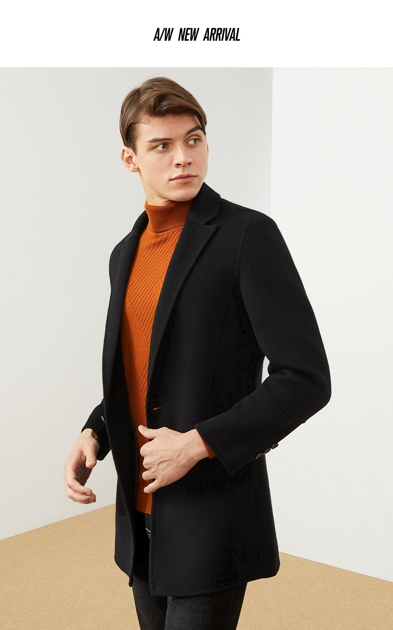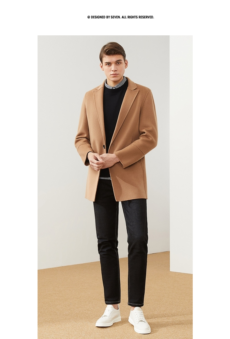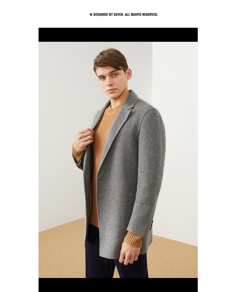 【100绵羊毛】柒牌男装毛呢男士大衣中长款加厚外套保暖121D70010