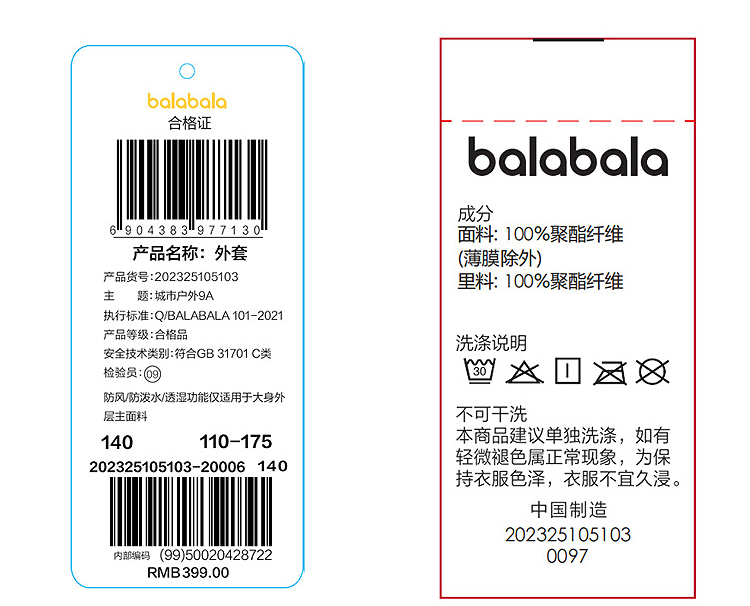 【风壳衣商场同款】巴拉巴拉男外套儿童上衣2025新款秋防泼水透湿