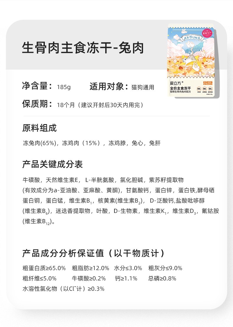 爱立方冻干生骨肉 复水补水 零食主食 多种口味 兔肉/鸡肉/鸭肉/牛肉/鹌鹑/彩虹冻干/ 海洋盛宴