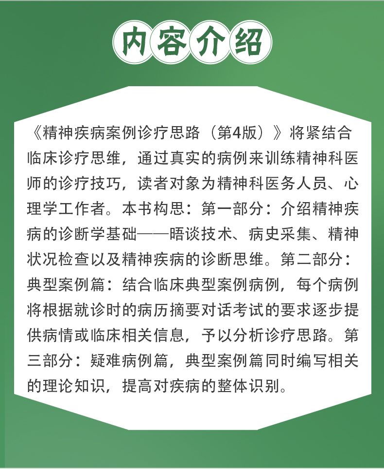 精神疾病案例诊疗思路 第4四版 杨世昌 王国强 黄国平 读者对象为精神科医务人员 心理学工作者 9787117387026 人民卫生出版社
