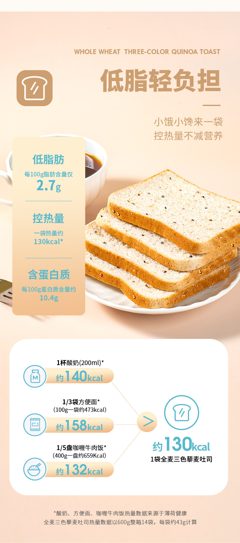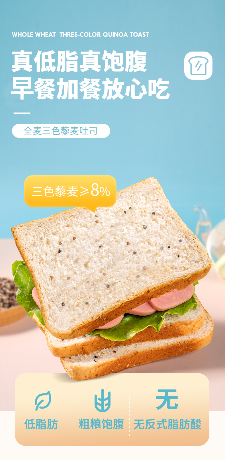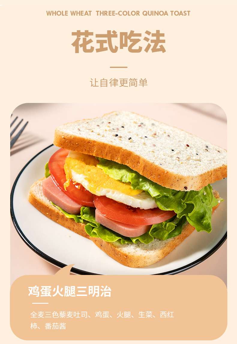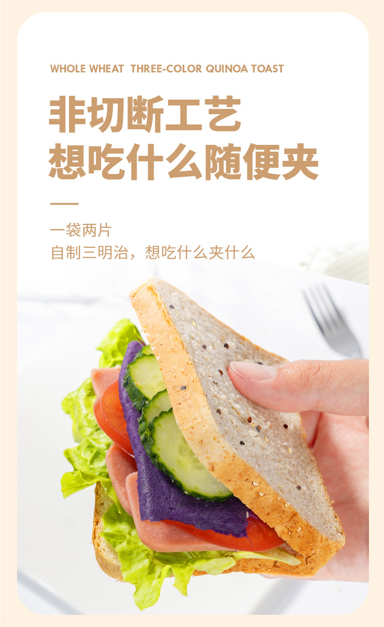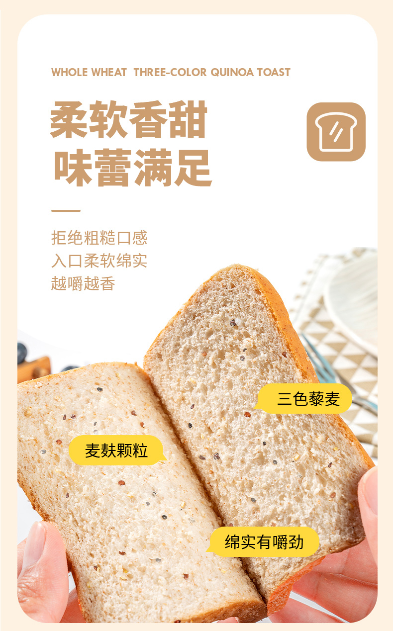 福事多 全麦三色藜麦吐司 600g*2箱