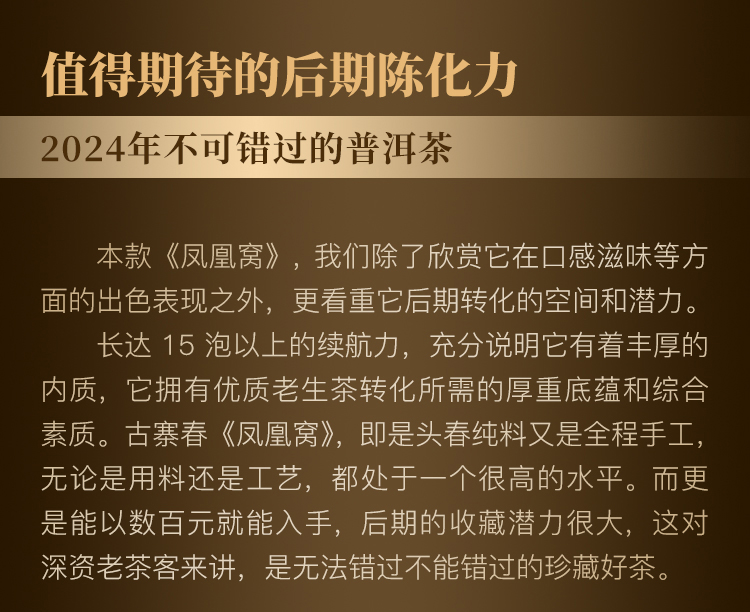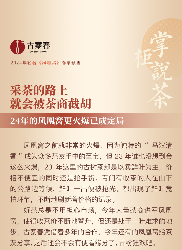 2024年春茶【凤凰窝】古寨春年年的断货王,只采墨江凤凰窝核心产区古树,喝一口一辈子都不会忘掉的“马汉清香” !云南普洱茶生茶357g/饼 拍5发6拍20发25