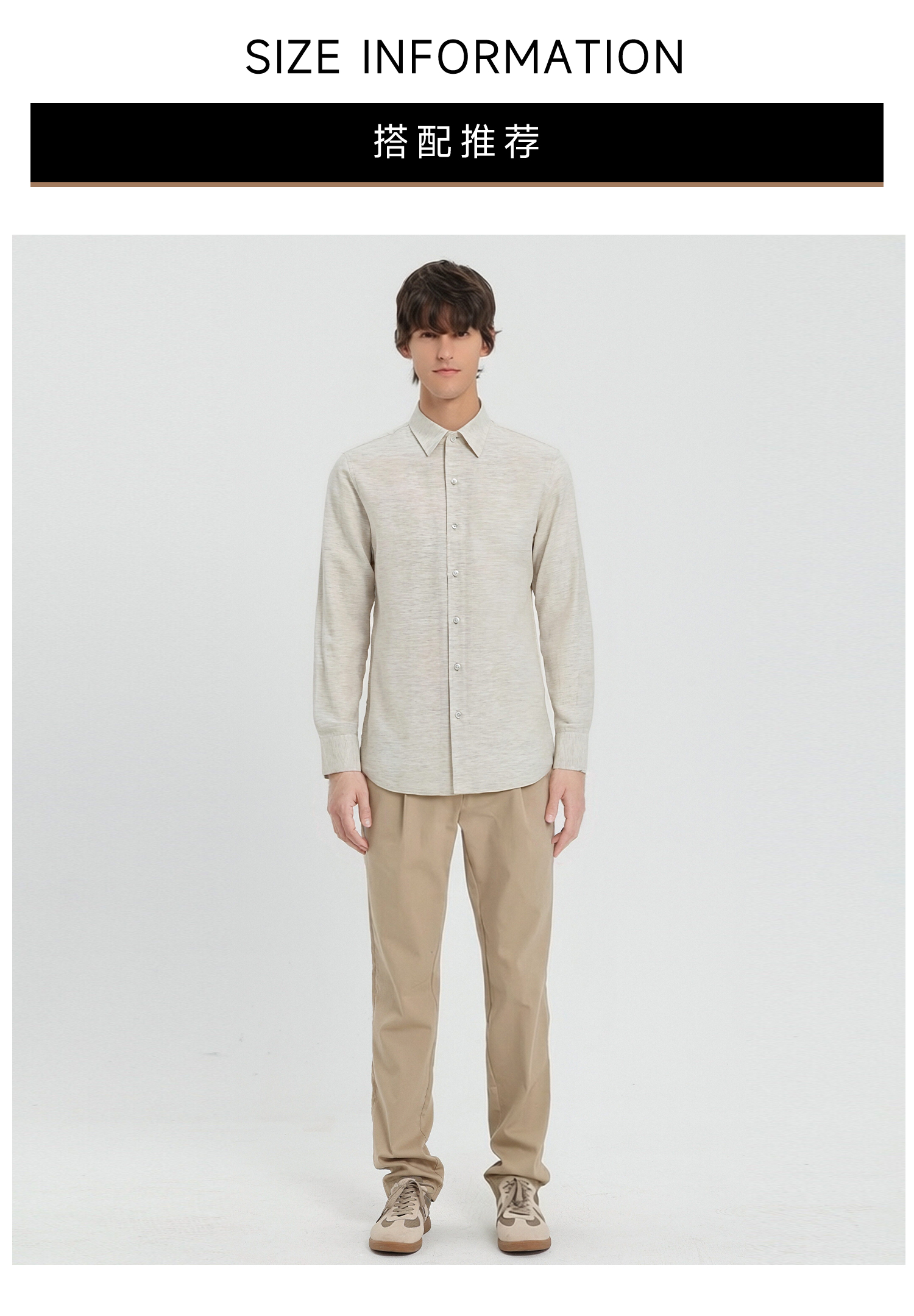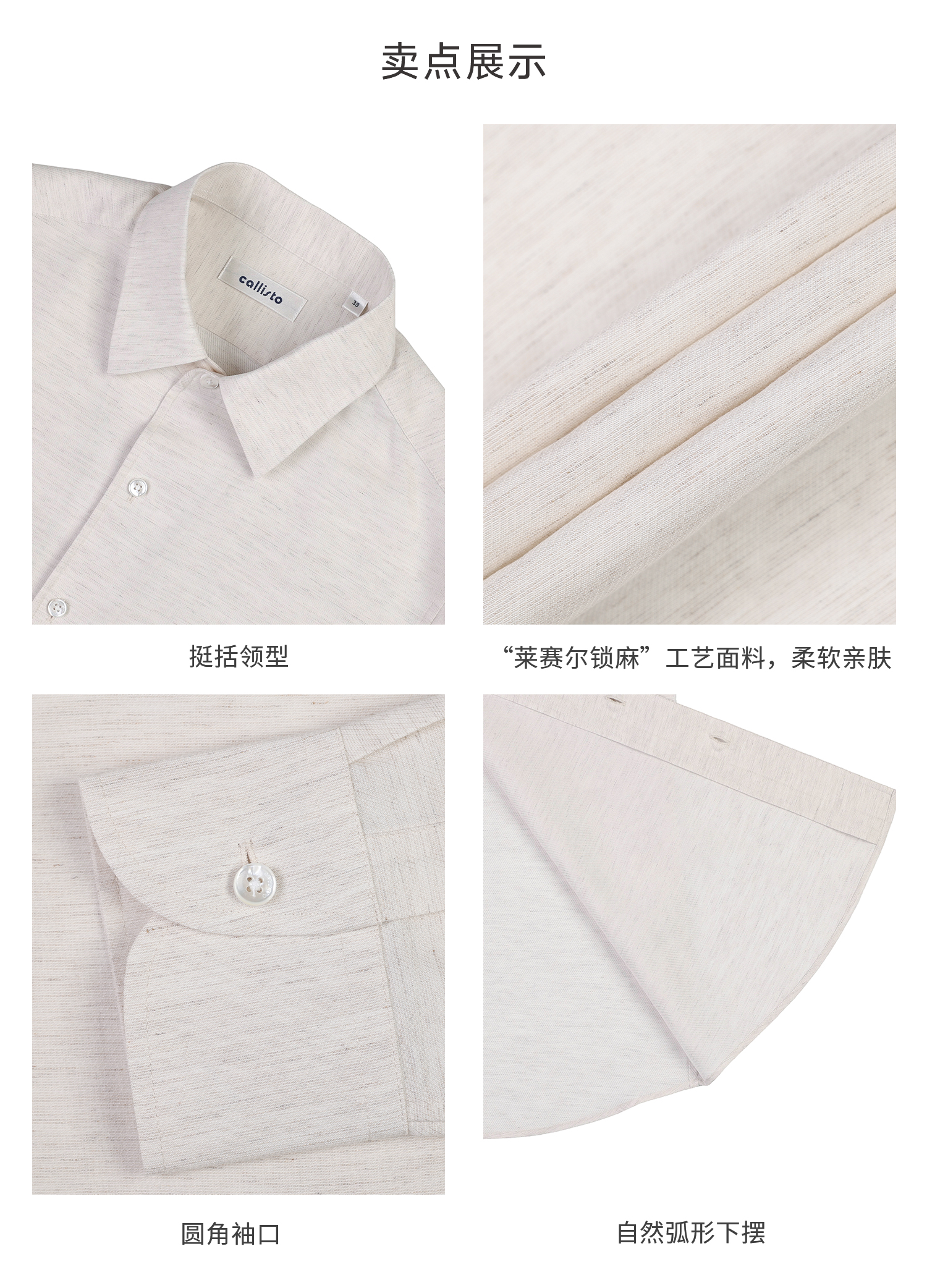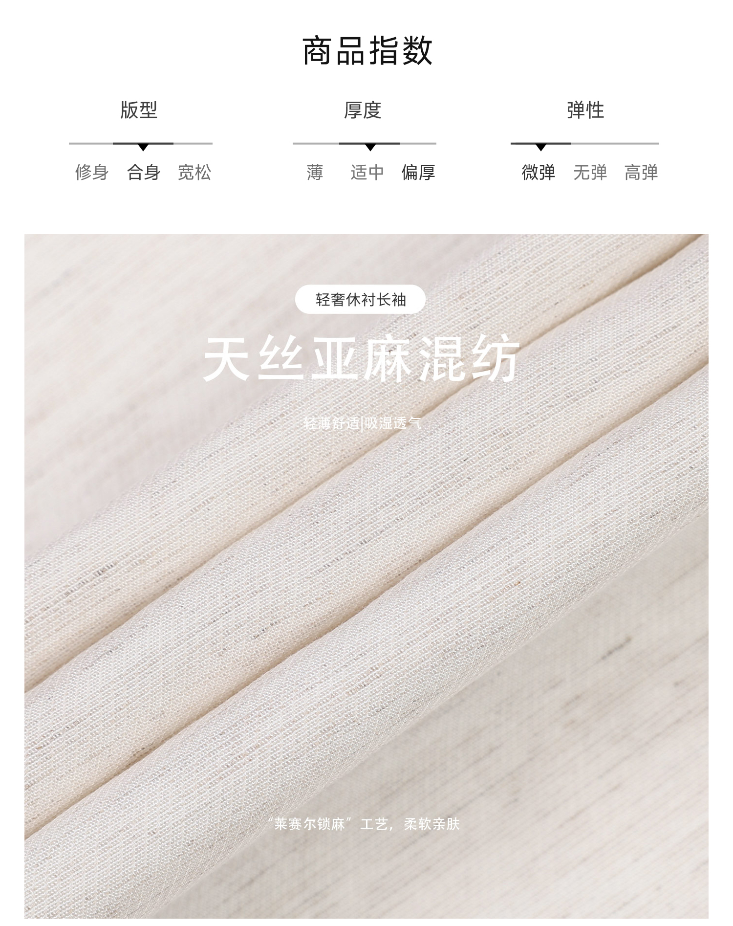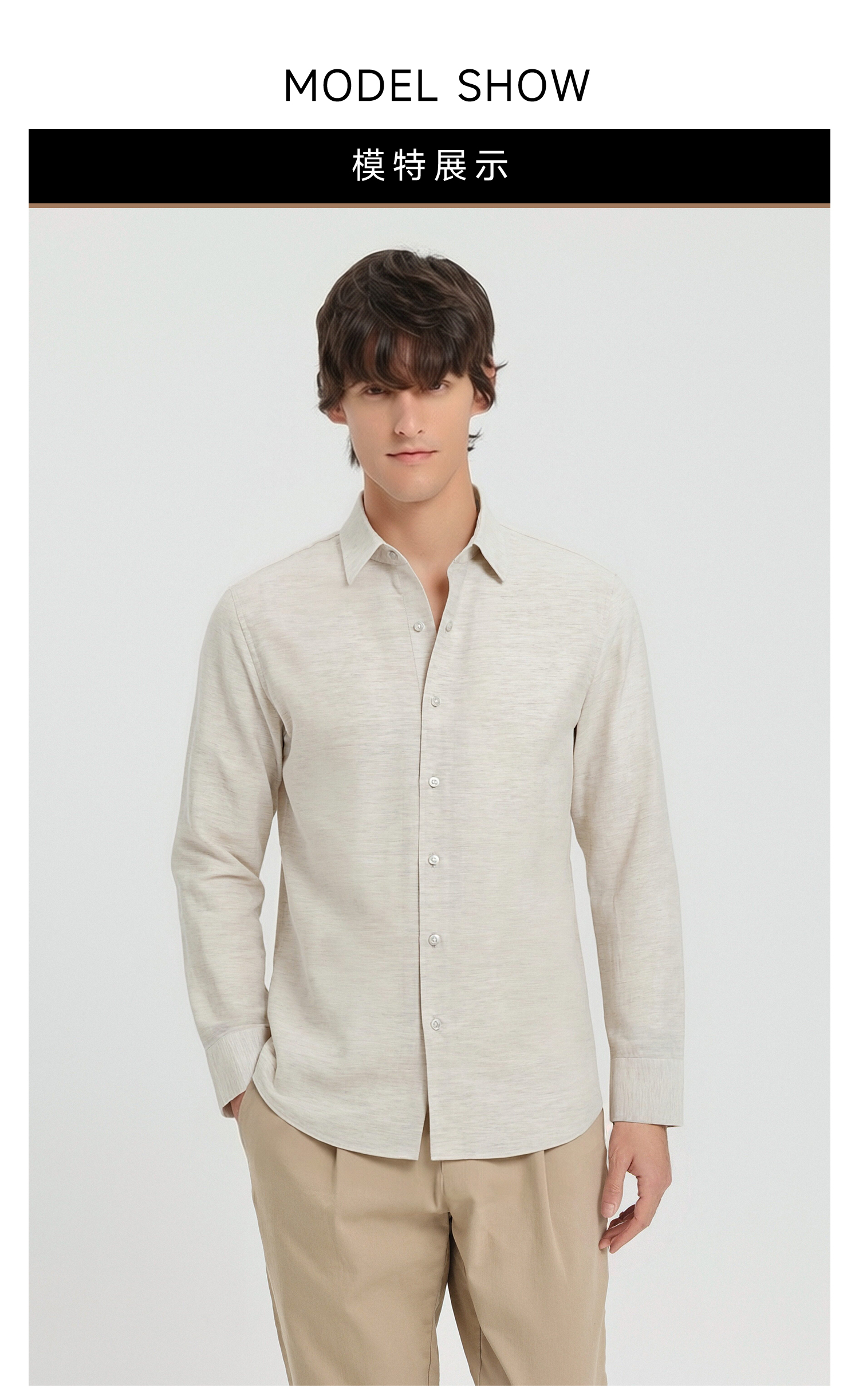 callisto米色天丝亚麻混纺休闲长袖衬衫