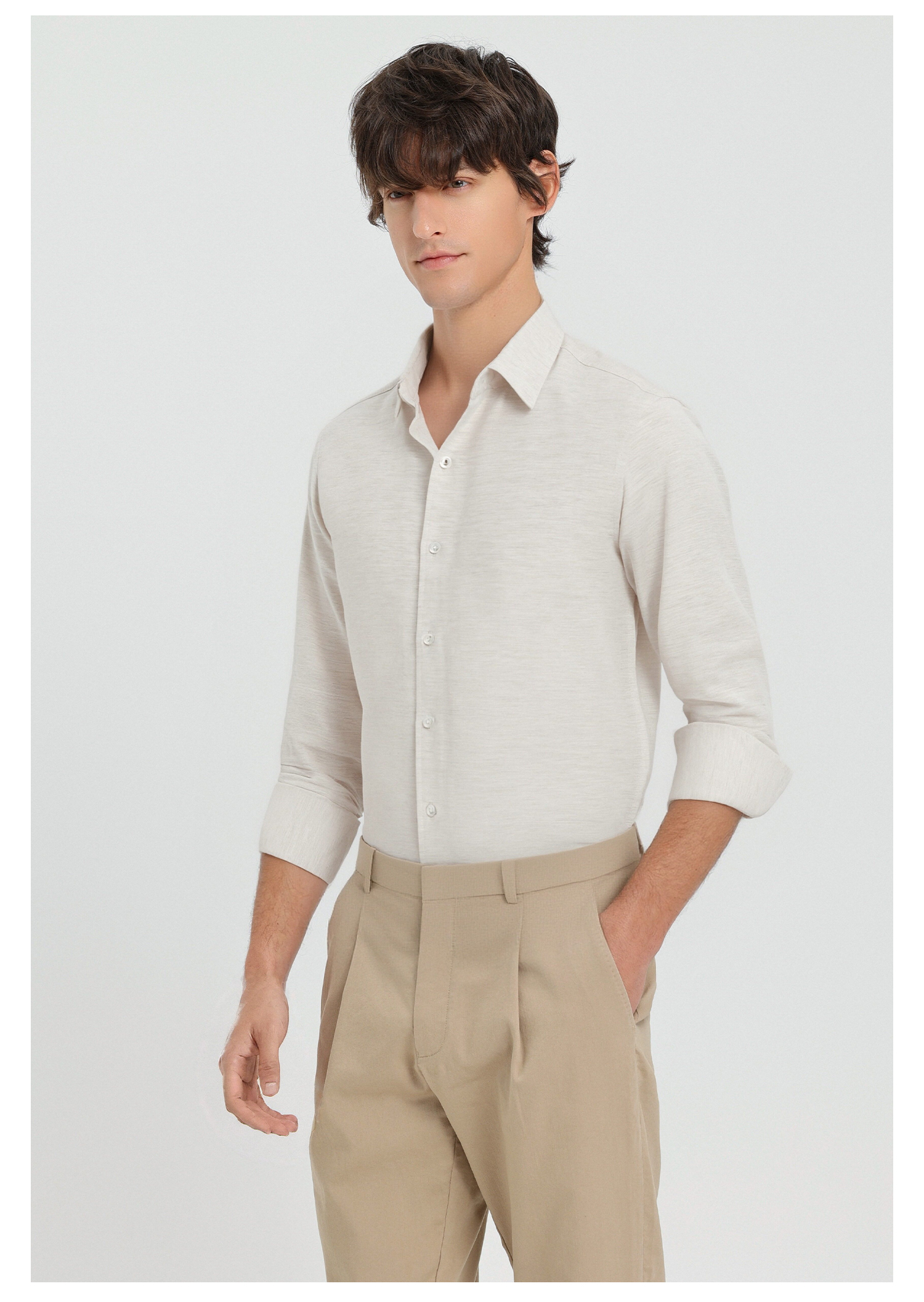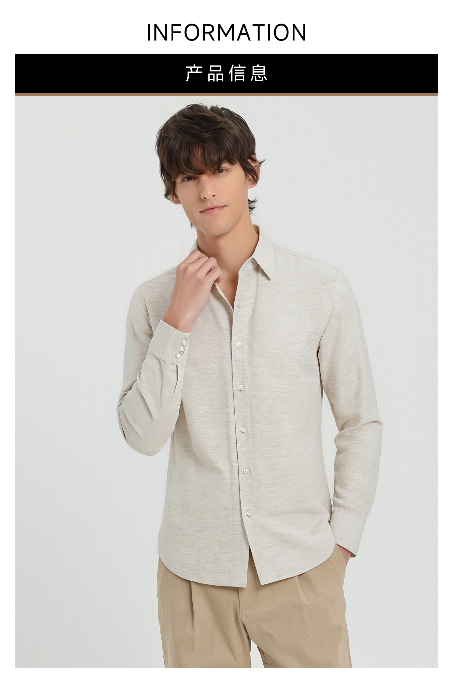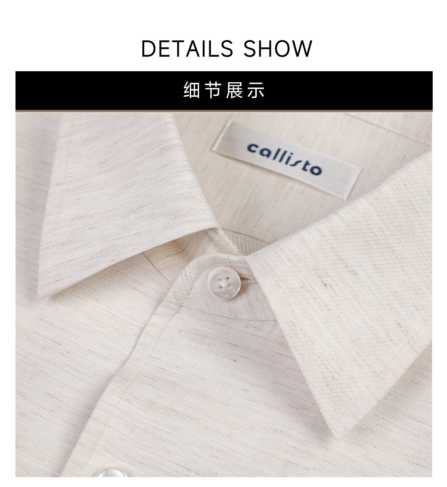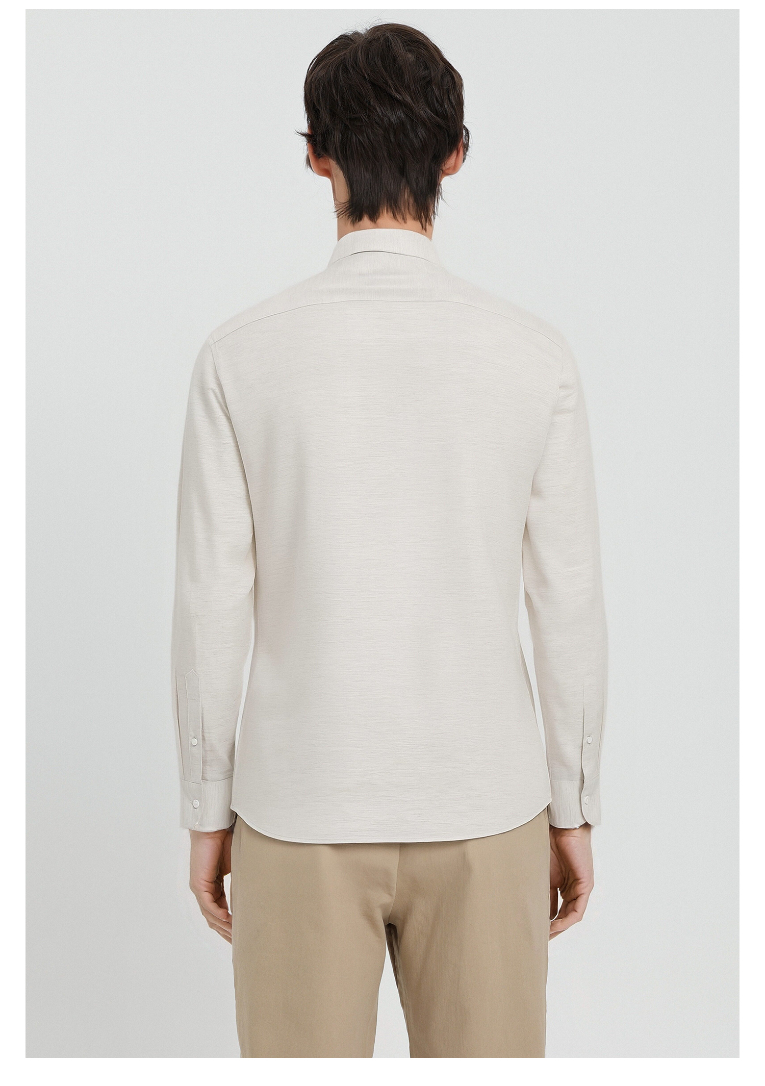 callisto米色天丝亚麻混纺休闲长袖衬衫