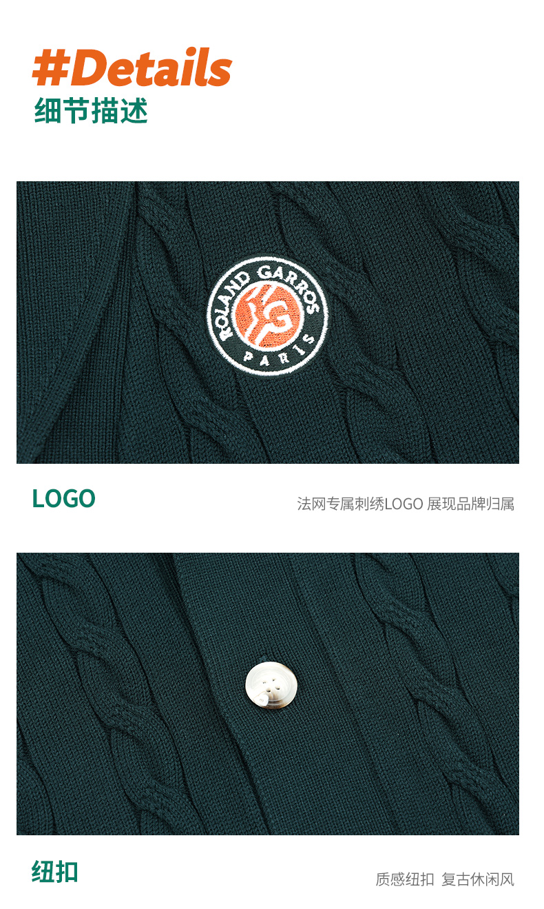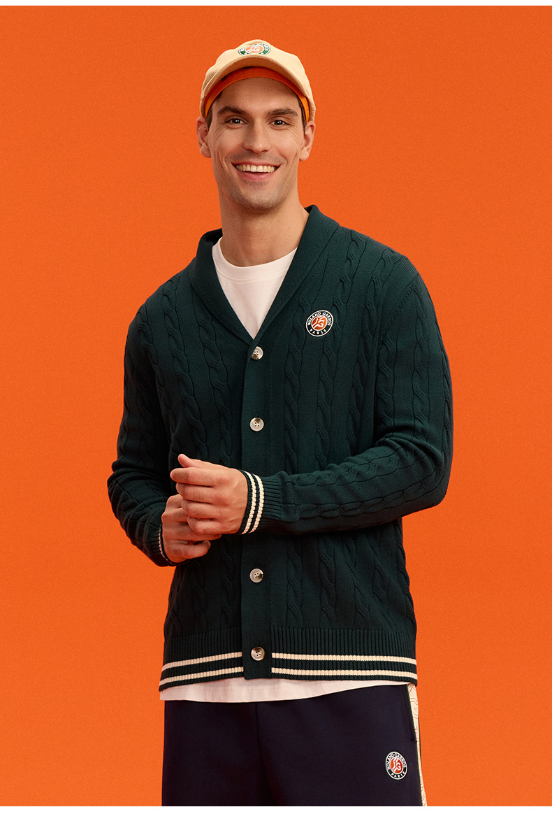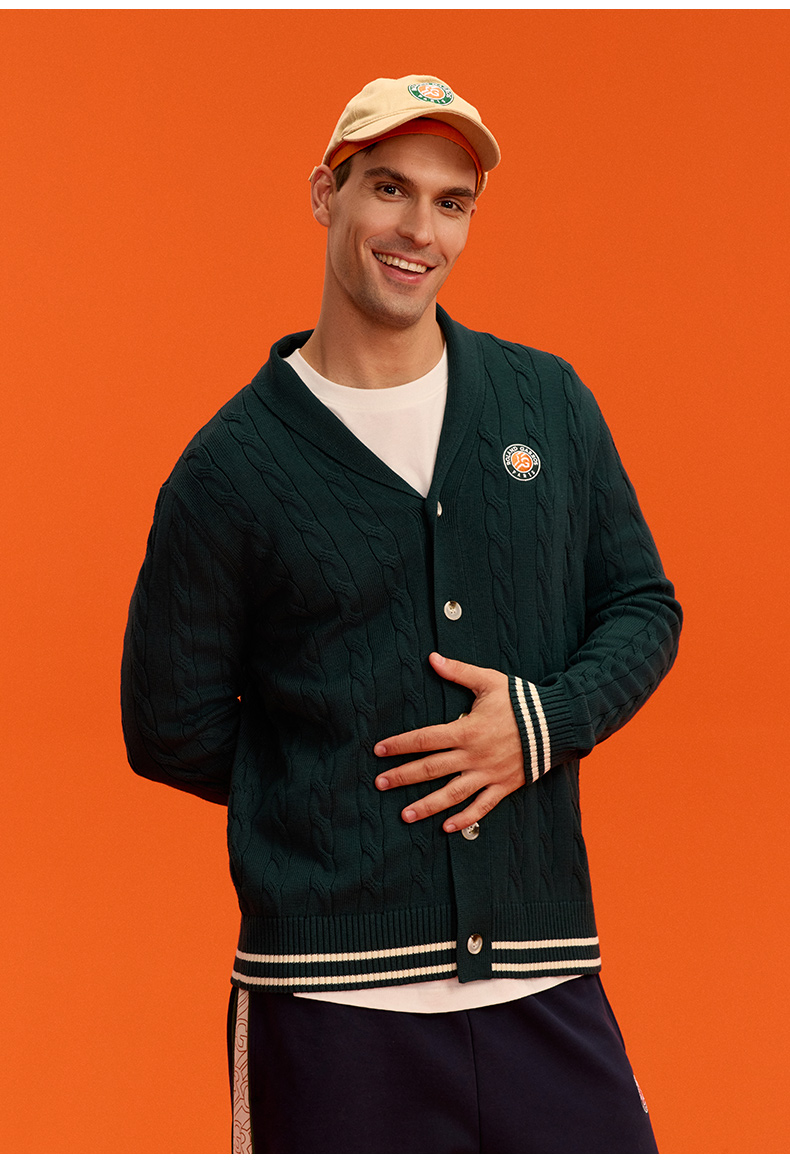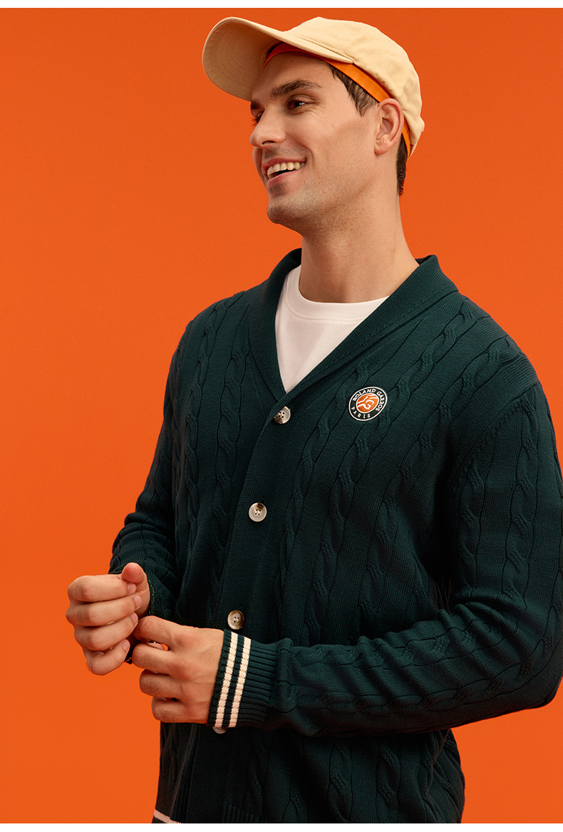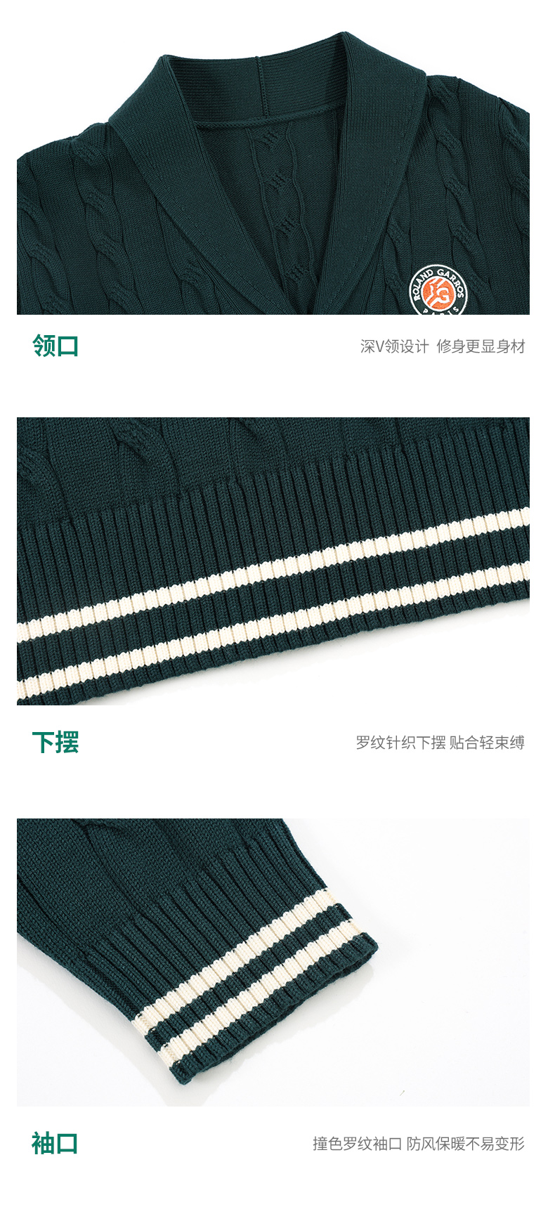 罗兰加洛斯法网开衫毛衣麻花纹V领男女春秋季针织衫宽松毛线外套