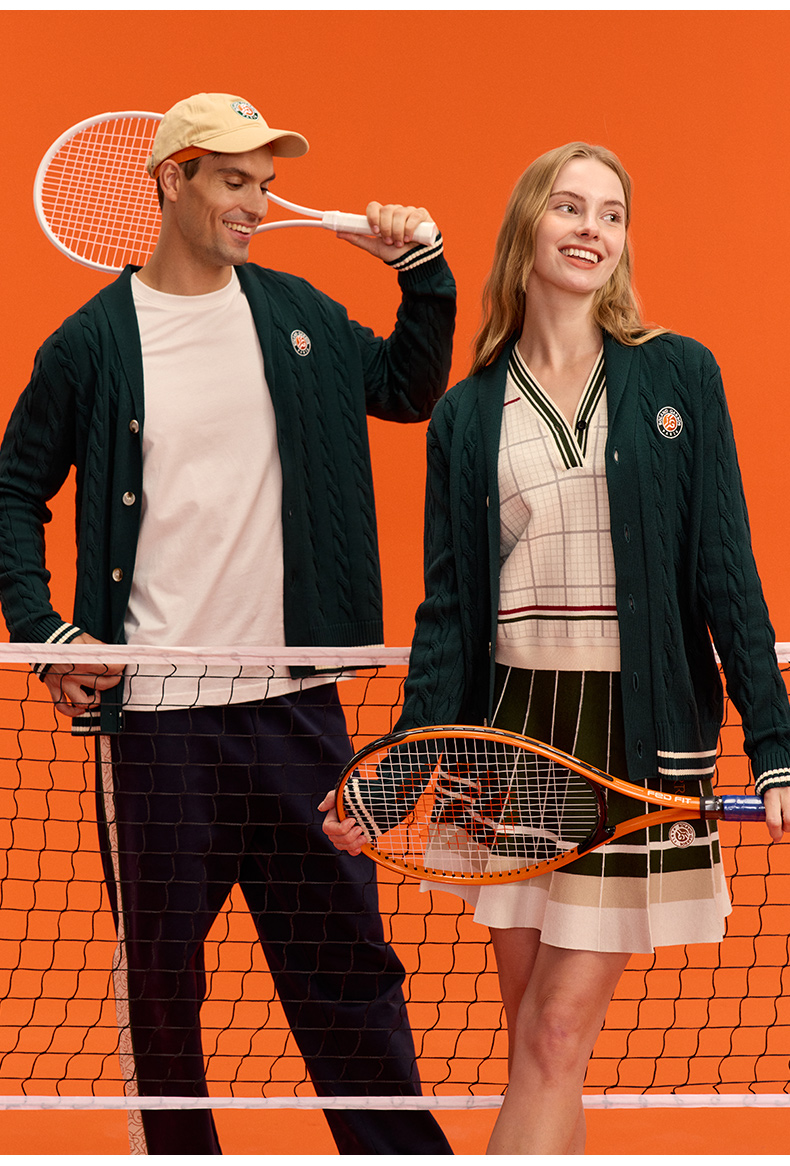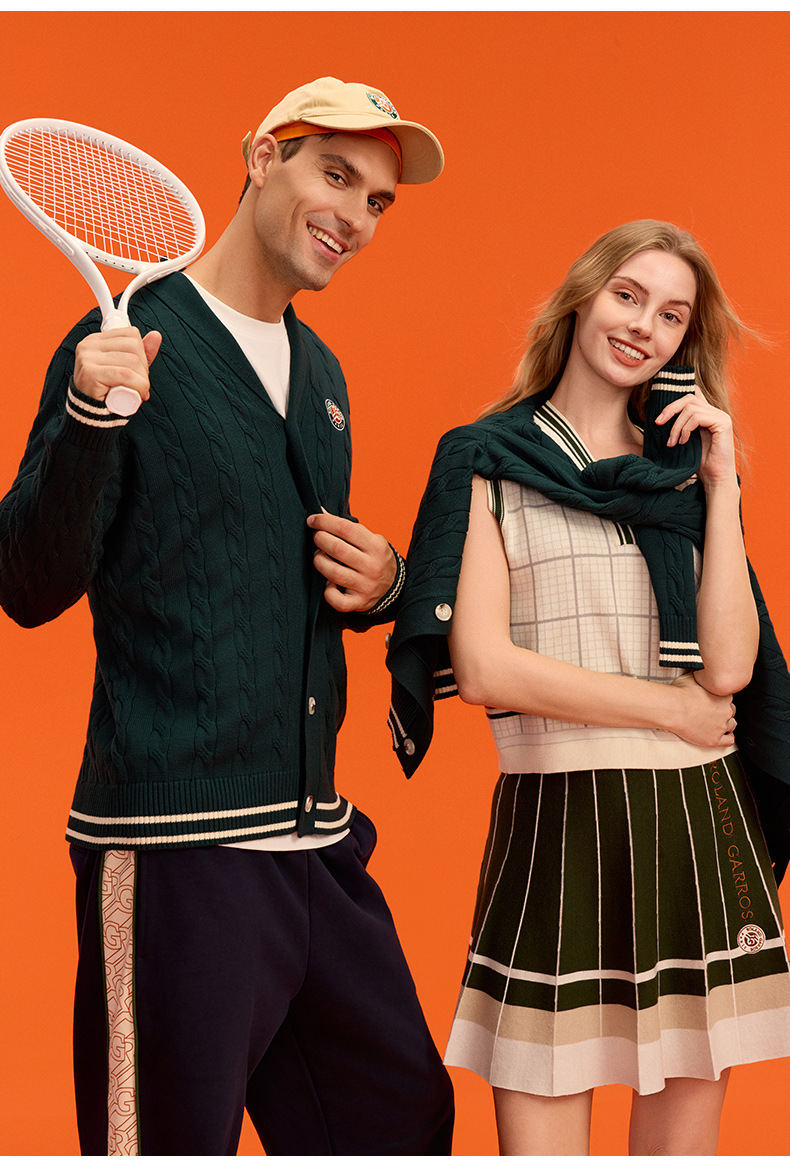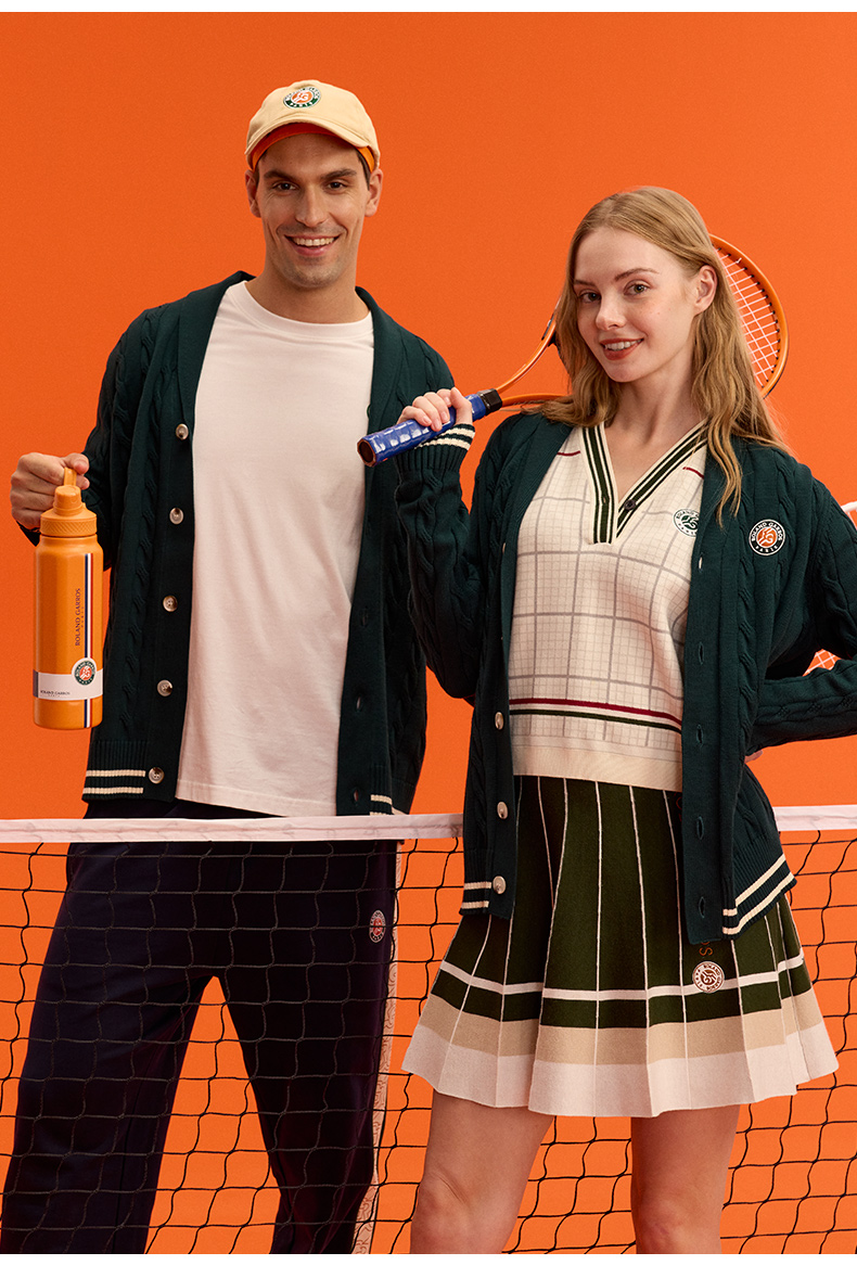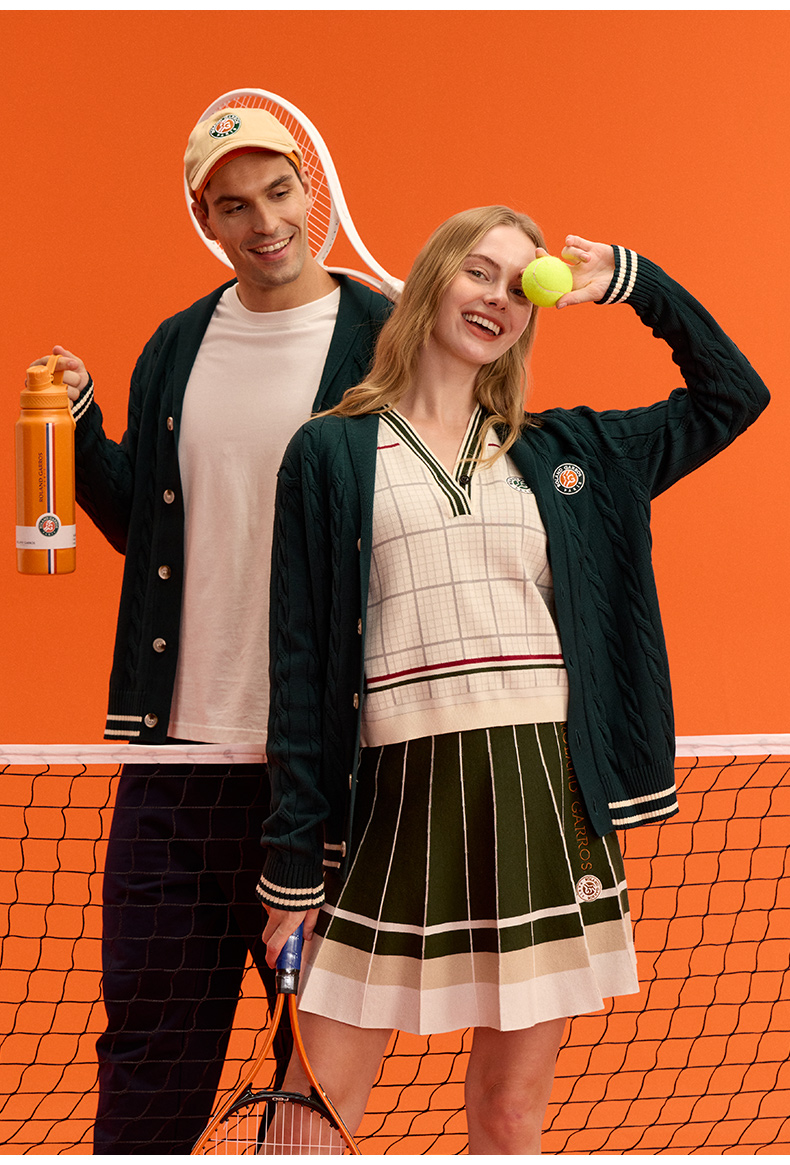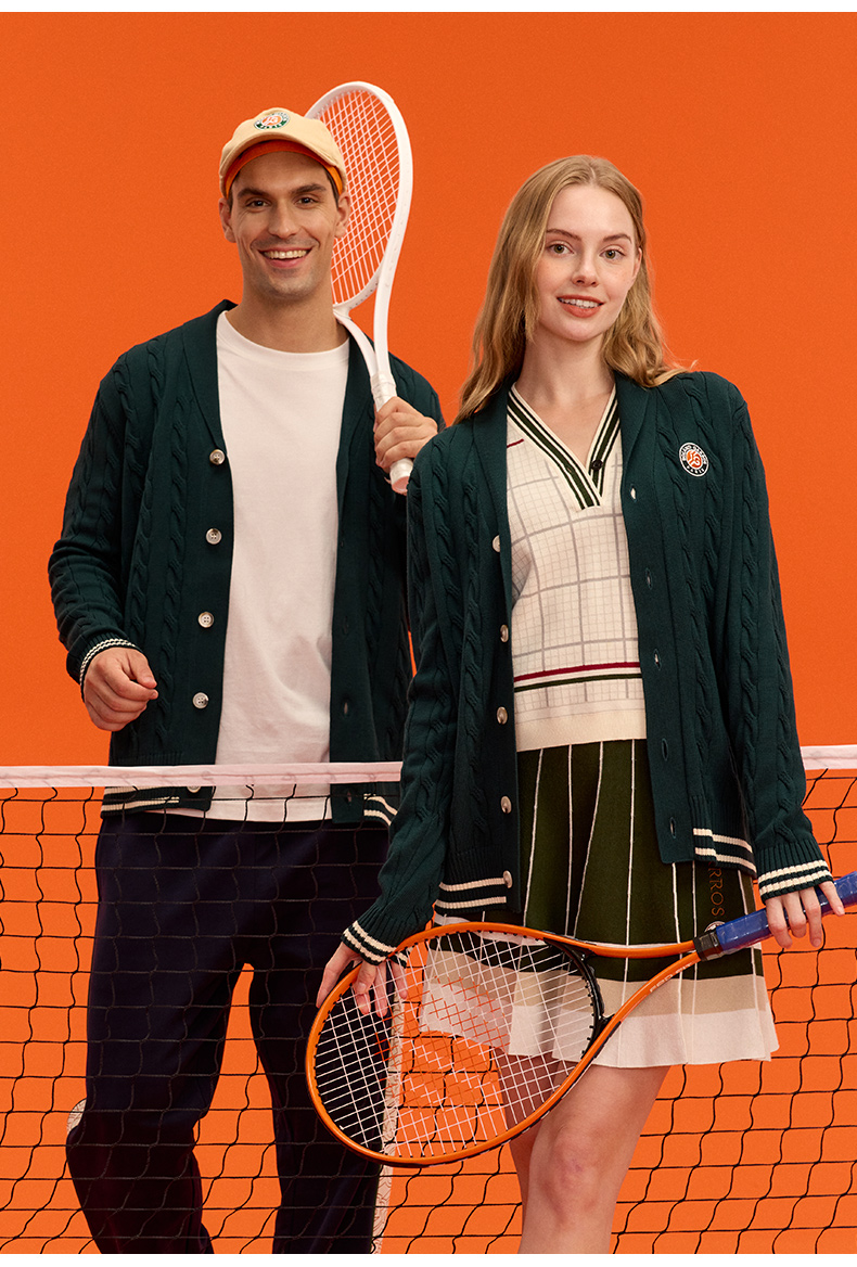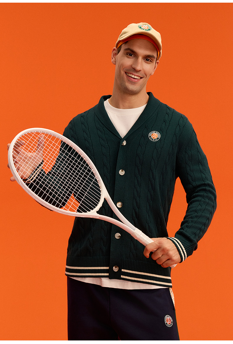 罗兰加洛斯法网开衫毛衣麻花纹V领男女春秋季针织衫宽松毛线外套