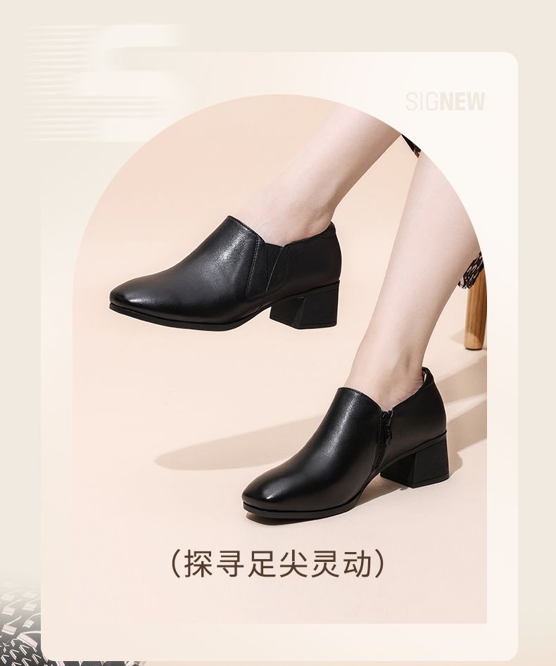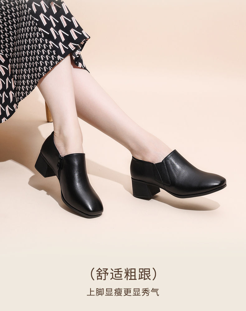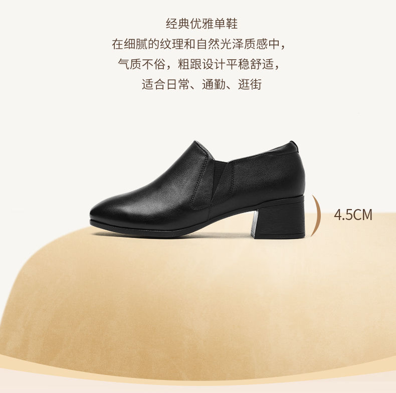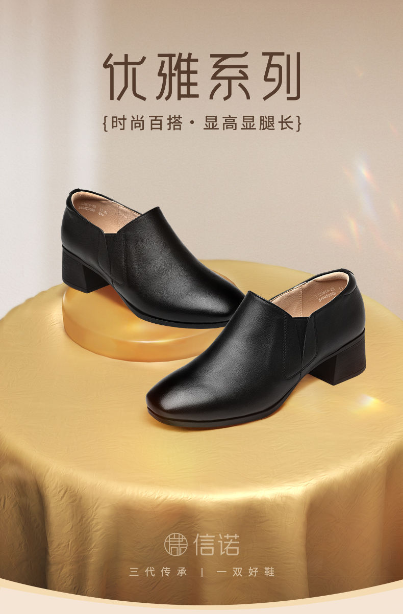 信诺 真皮舒适女鞋 2024新款秋季深口单鞋软底中跟中年妈妈鞋皮鞋Q2610-25