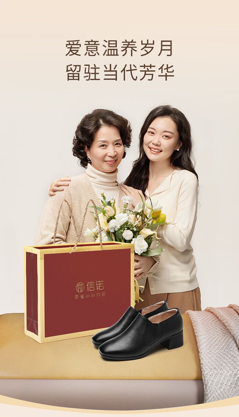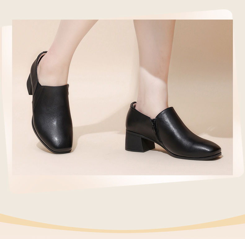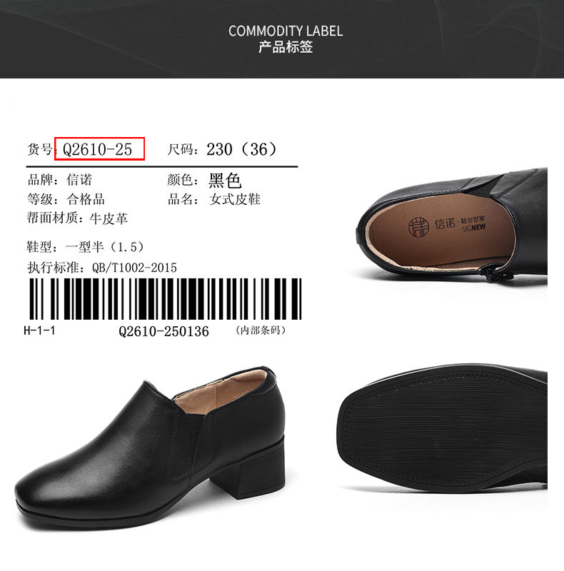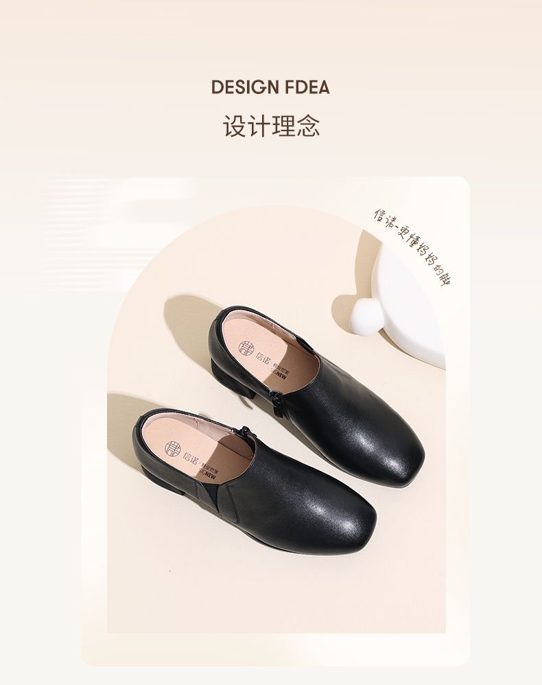 信诺 真皮舒适女鞋 2024新款秋季深口单鞋软底中跟中年妈妈鞋皮鞋Q2610-25