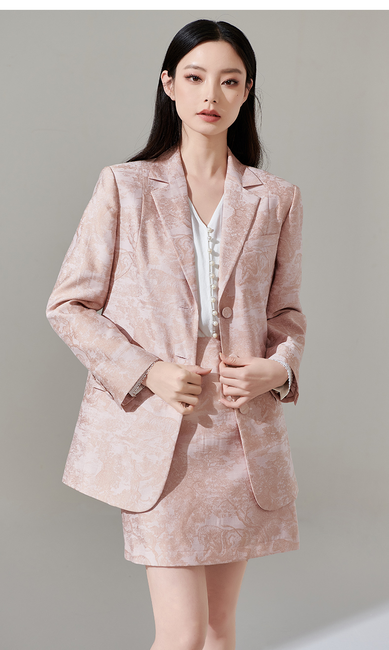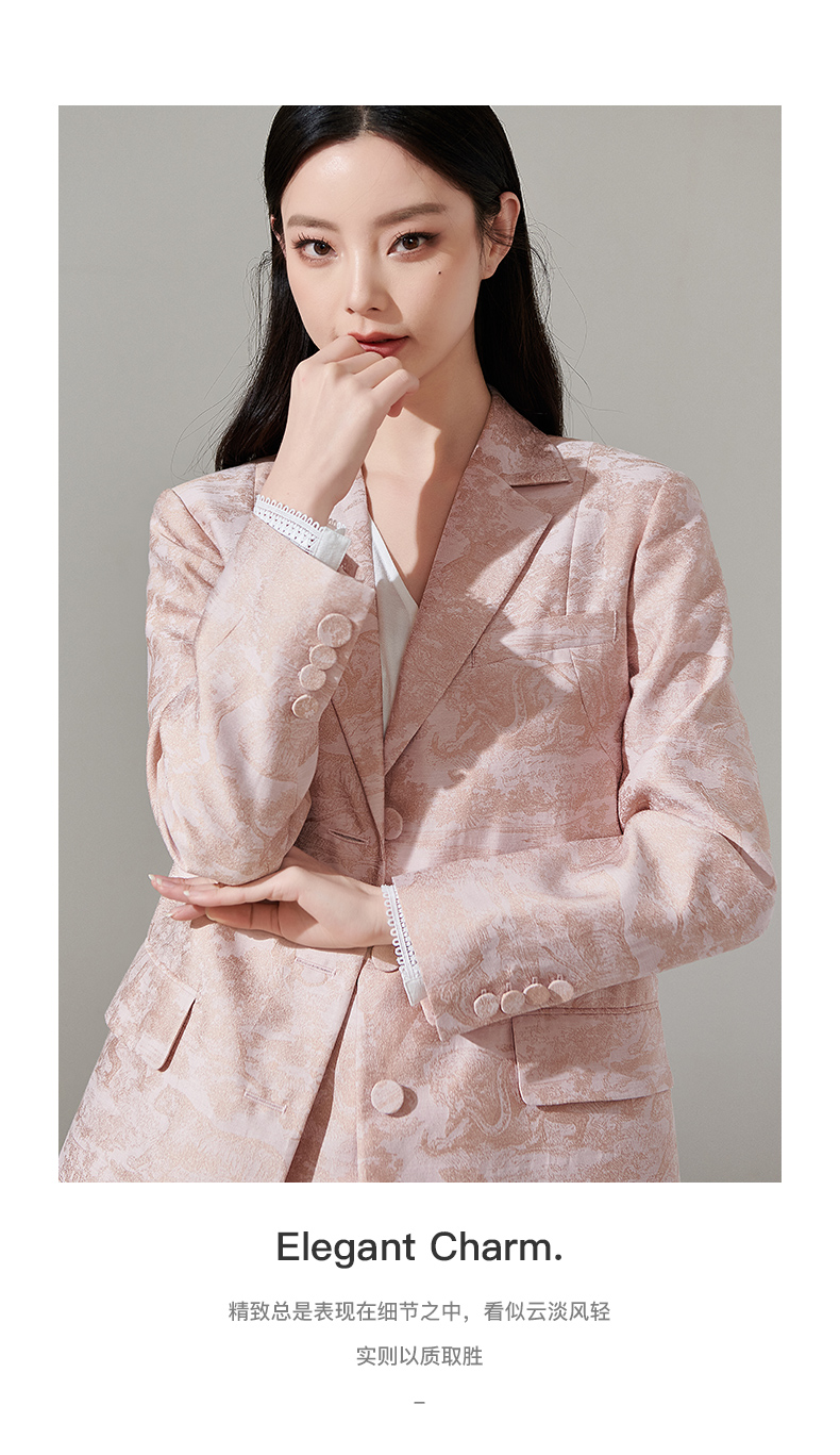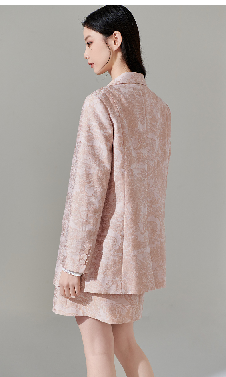 剩XL 芳外新款设计感别致印花通勤西装提花百搭西服外套女8T24AX0211