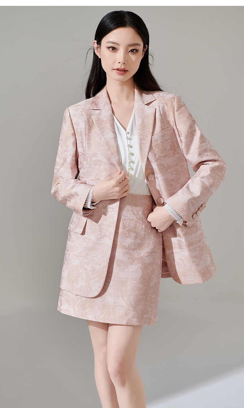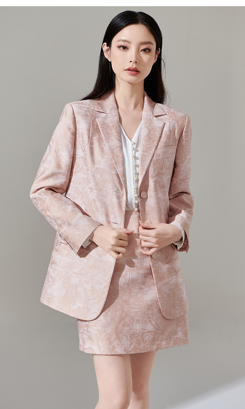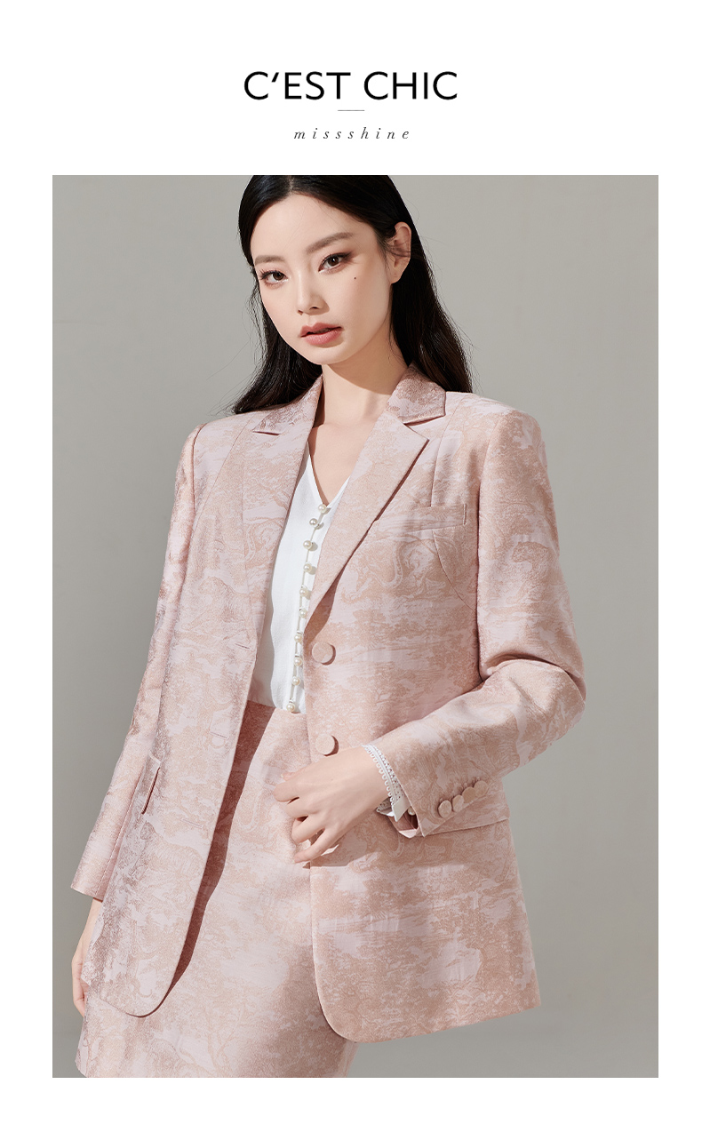 剩XL 芳外新款设计感别致印花通勤西装提花百搭西服外套女8T24AX0211