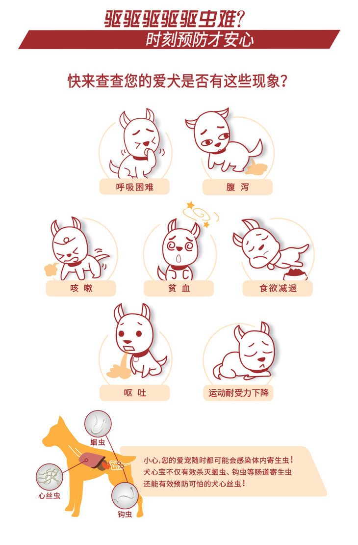 犬心保 驱虫牛肉块 M 体重12-22kg 6粒/盒