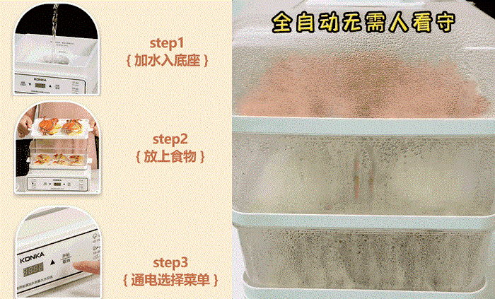 可用蒸锅做菜,只需3步:加水——放菜——开关,即使你是厨房小白都尽管气定神闲。