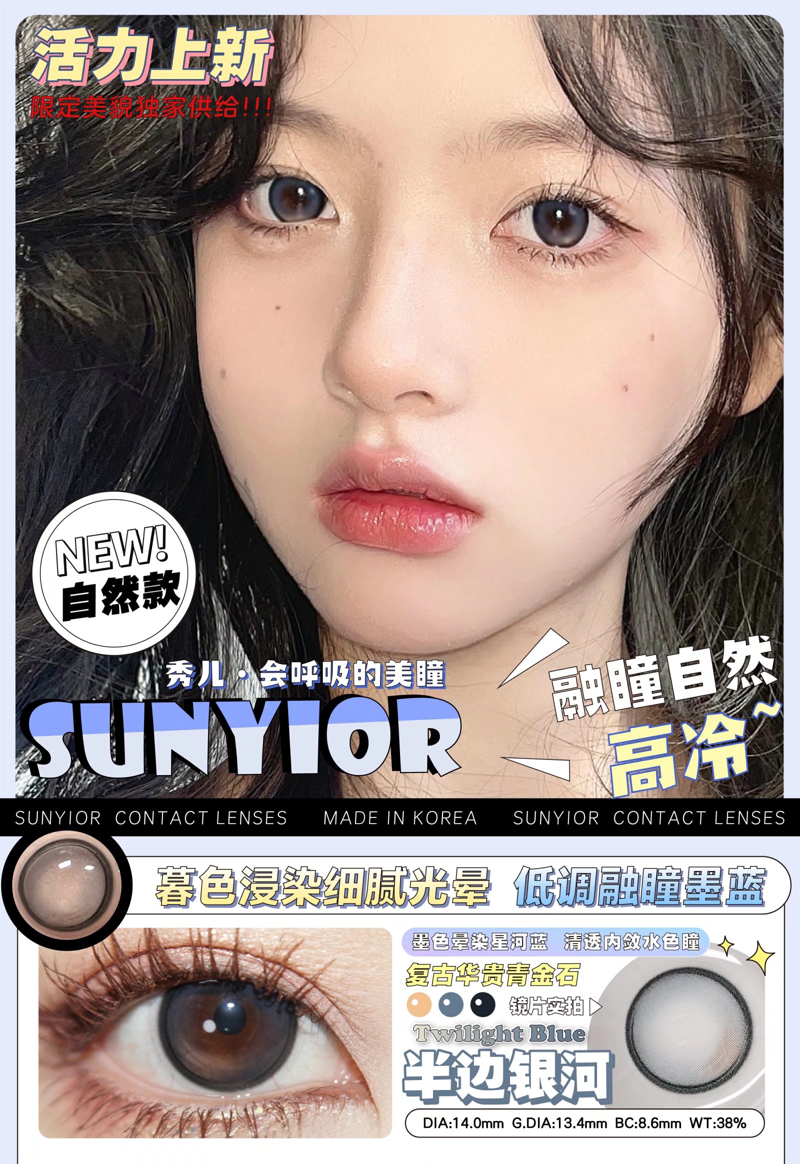 SunYior半边银河(硅水凝胶)约14.0mm 着色约13.4mm【年抛】375/600/700/1000度缺货