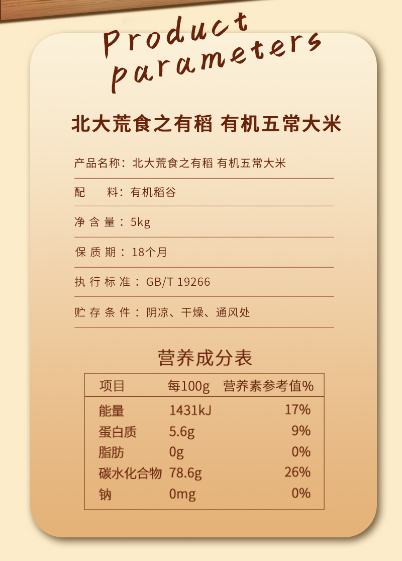 北大荒 食之有稻有机五常大米5kg