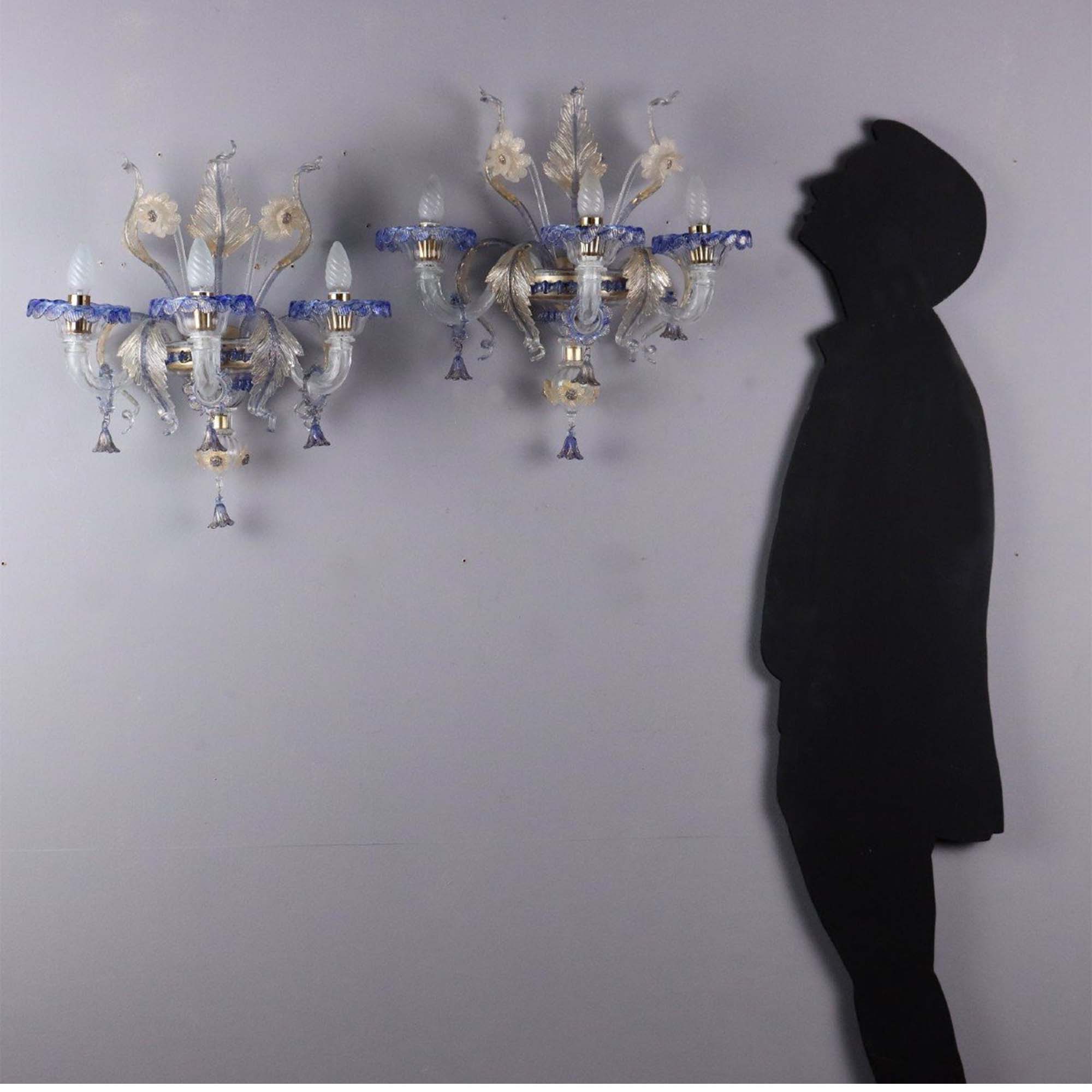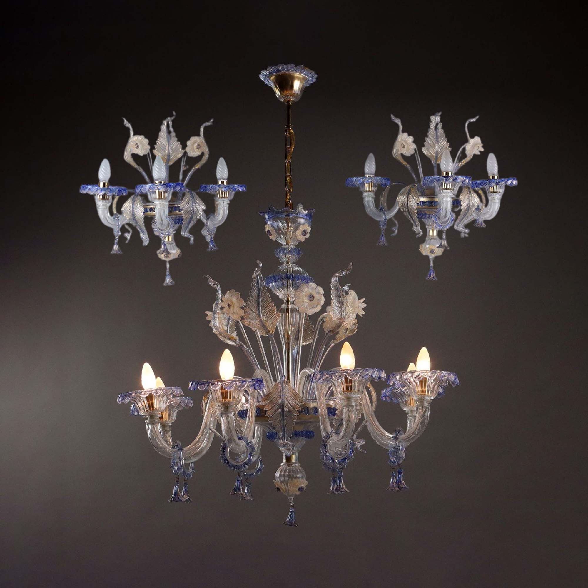 20世纪意大利出品穆拉诺玻璃点金工艺修饰花叶主题烛台式枝形吊灯及壁灯三件套