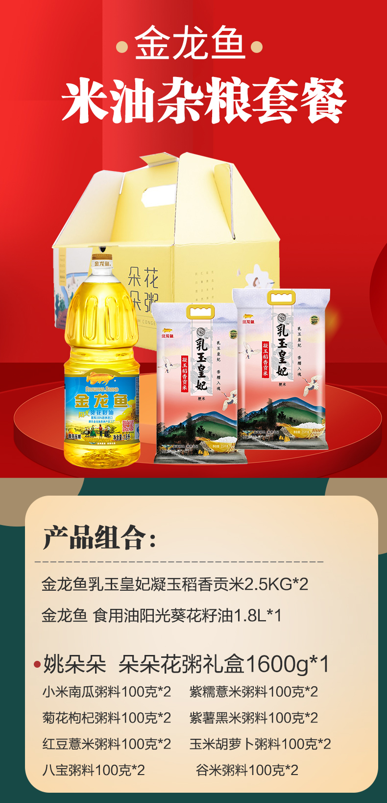 金龙鱼乳玉皇妃凝玉稻香贡米2.5KG*2+金龙鱼食用油阳光葵花籽油1.8L*1+姚朵朵 朵朵花粥礼盒1600g*1