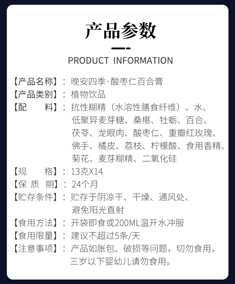 晚安四季 酸枣仁百合膏植物饮品13g*14