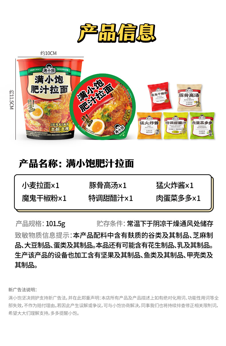 满小饱 肥汁拉面 101g/杯