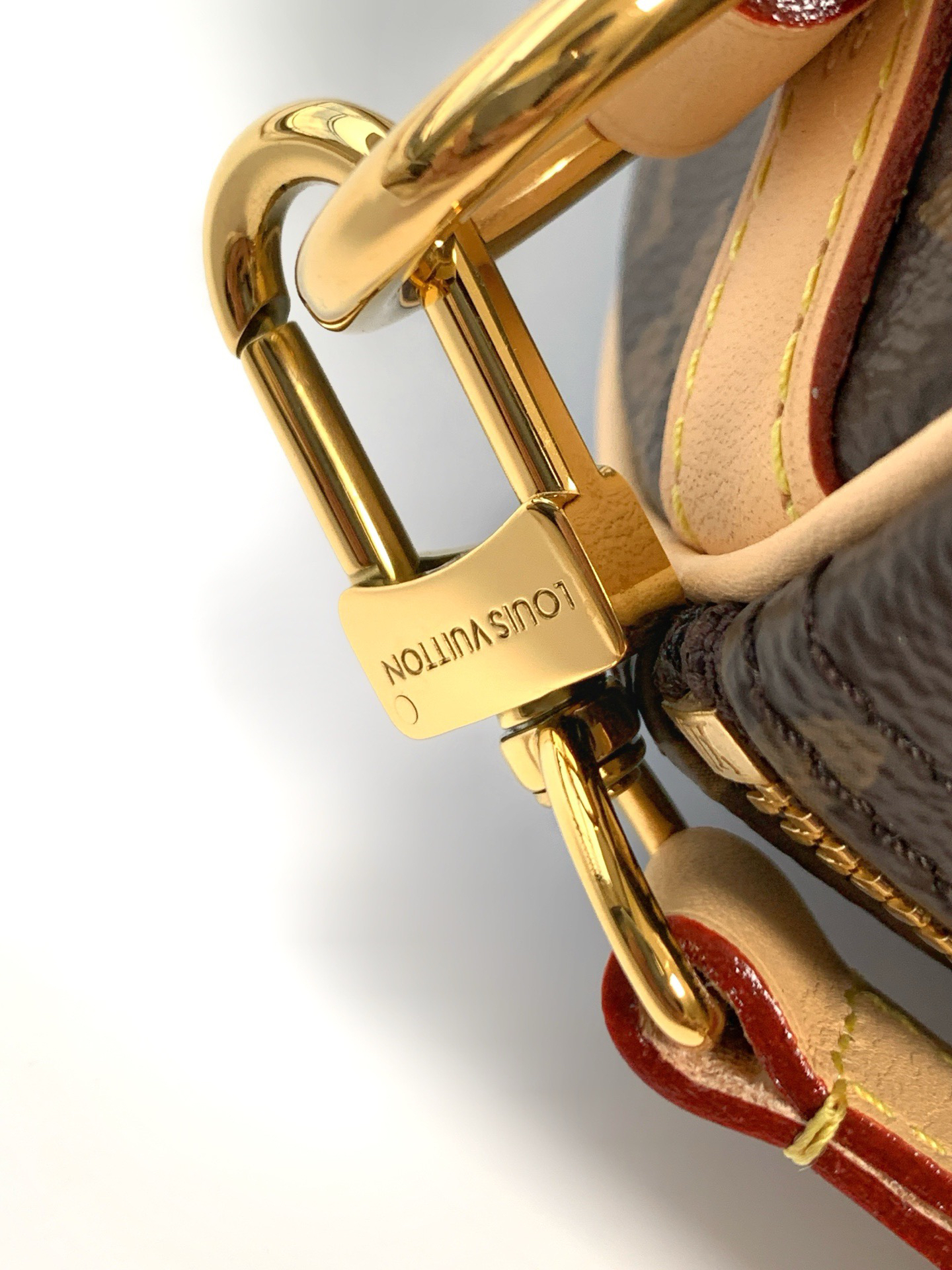尺寸:30 x21 x17厘米(长度x高x宽)Monogram 涂层帆布牛皮革饰边织物内衬金属件双拉链挂锁内贴袋