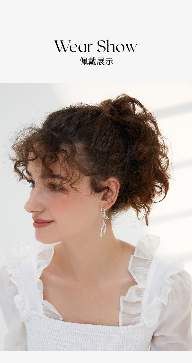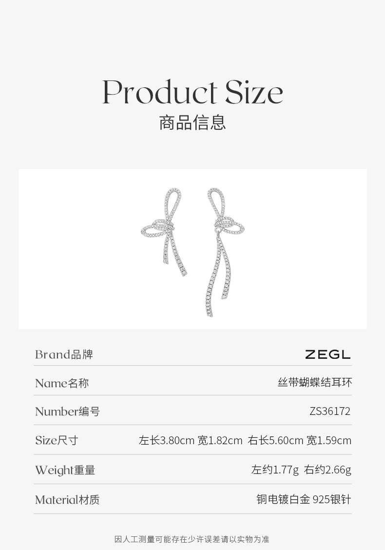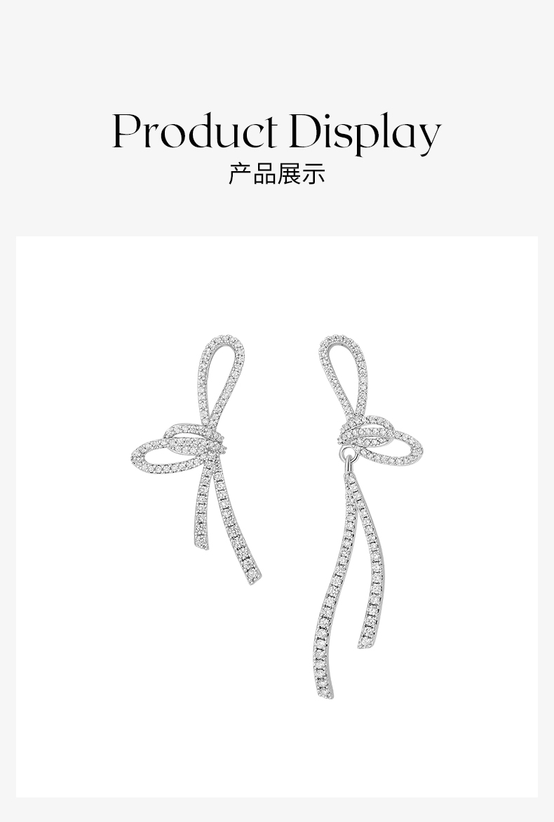 ZEGL蝴蝶结流苏耳环女小众设计感高级耳钉不对称925银针夏季耳饰