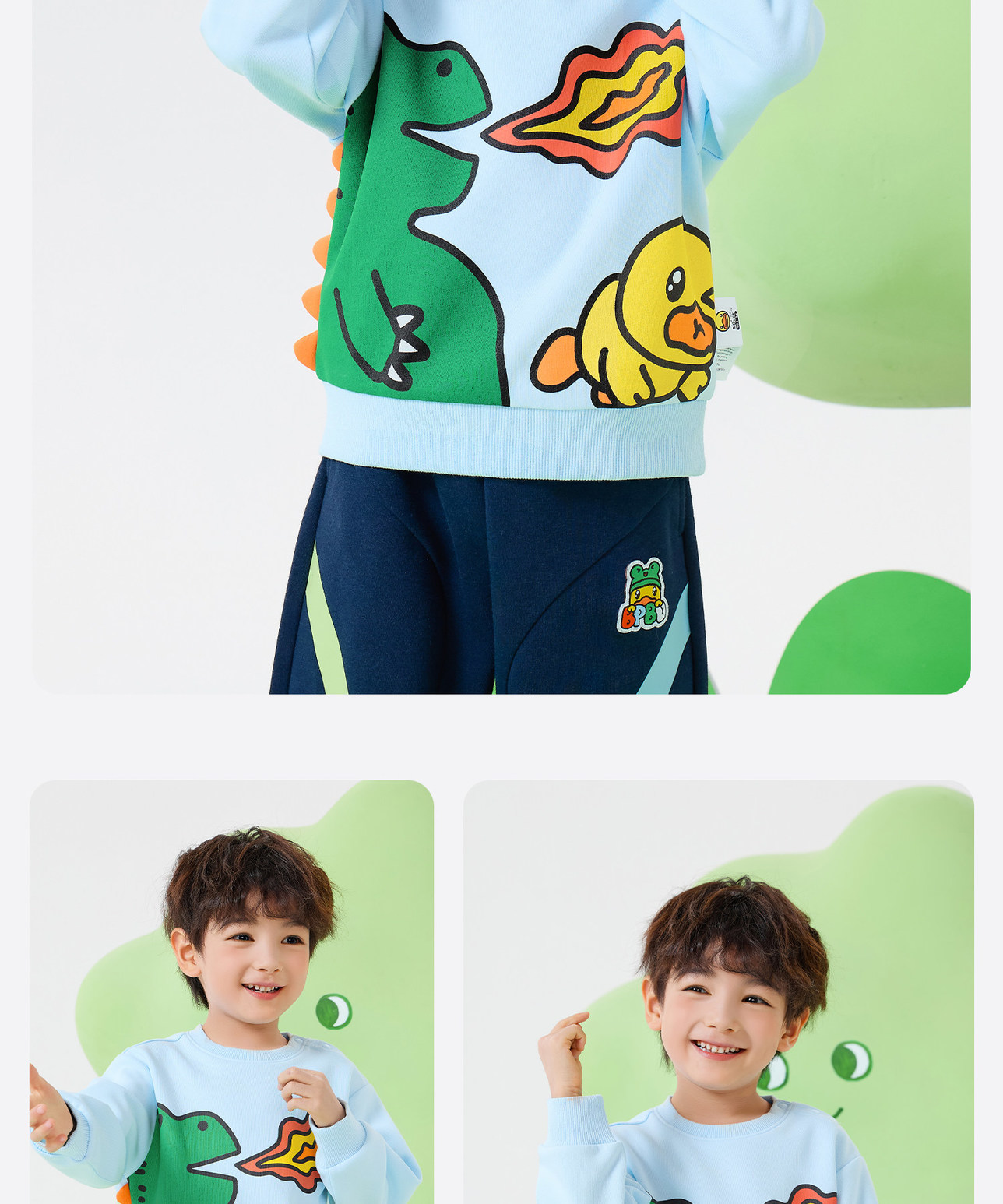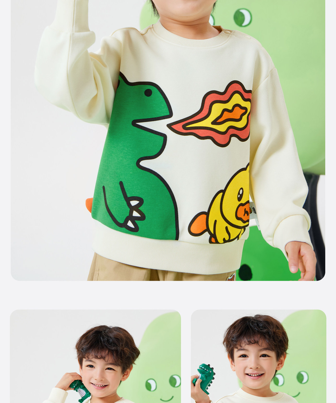 bduck小黄鸭童装春秋男童卫衣儿童套头衫恐龙宝宝上衣90-130 BF1608017