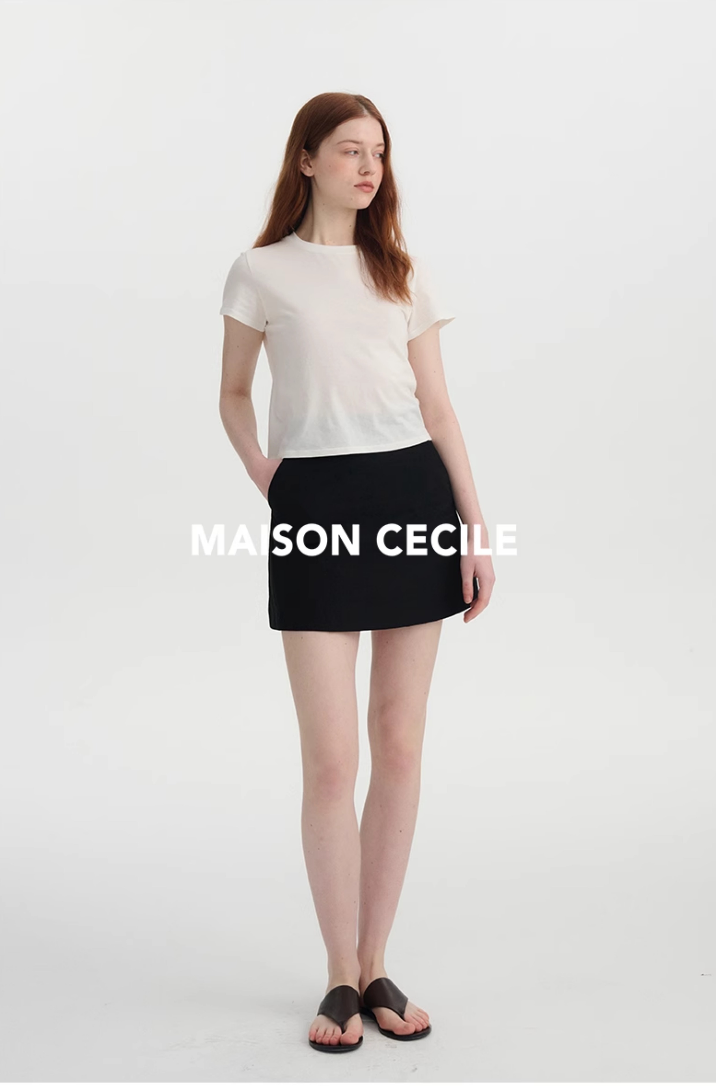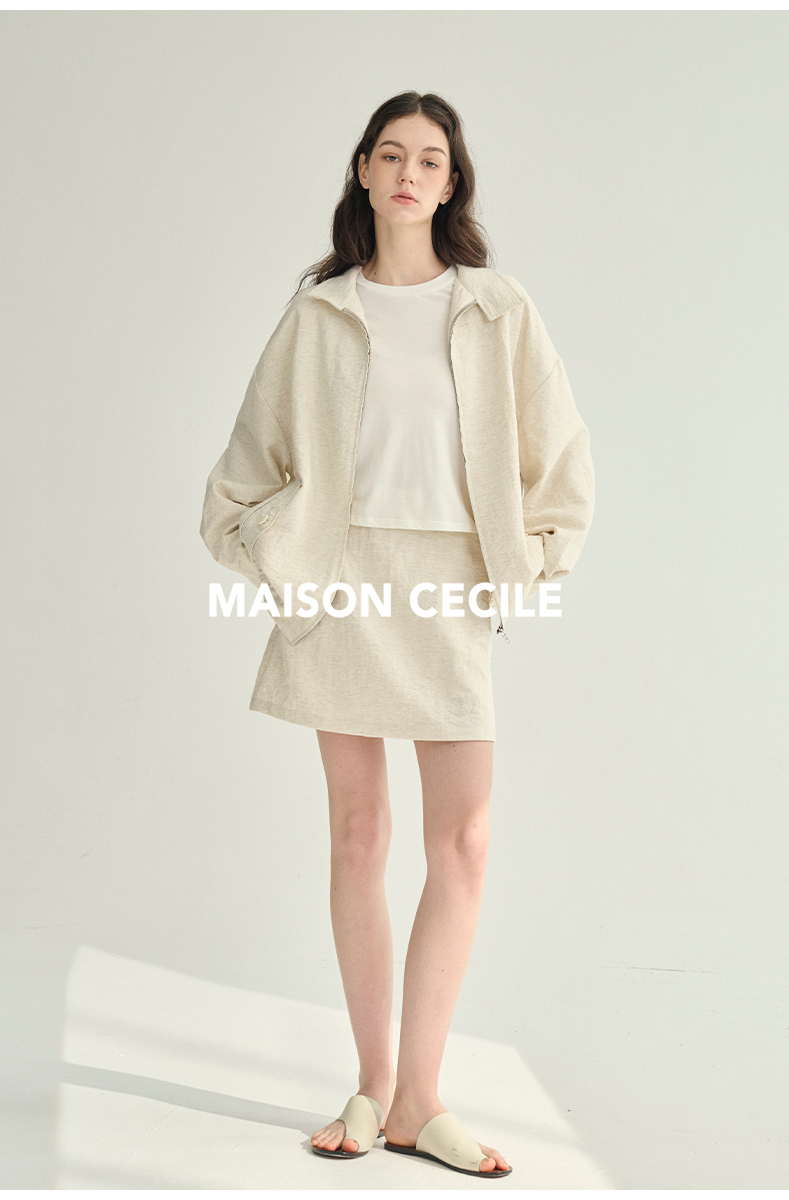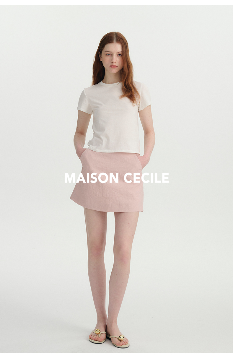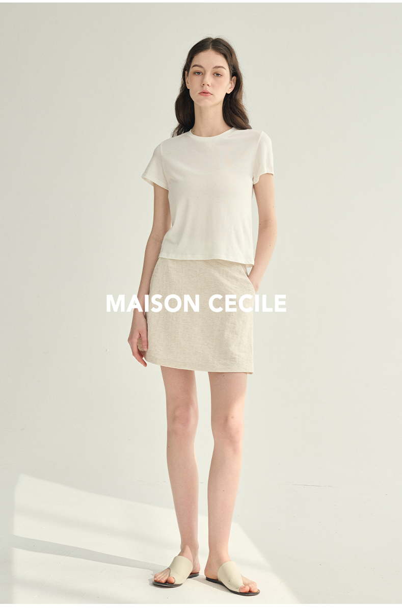 MAISON CECILE极简四色百搭显比例亚麻A字防走光短裙