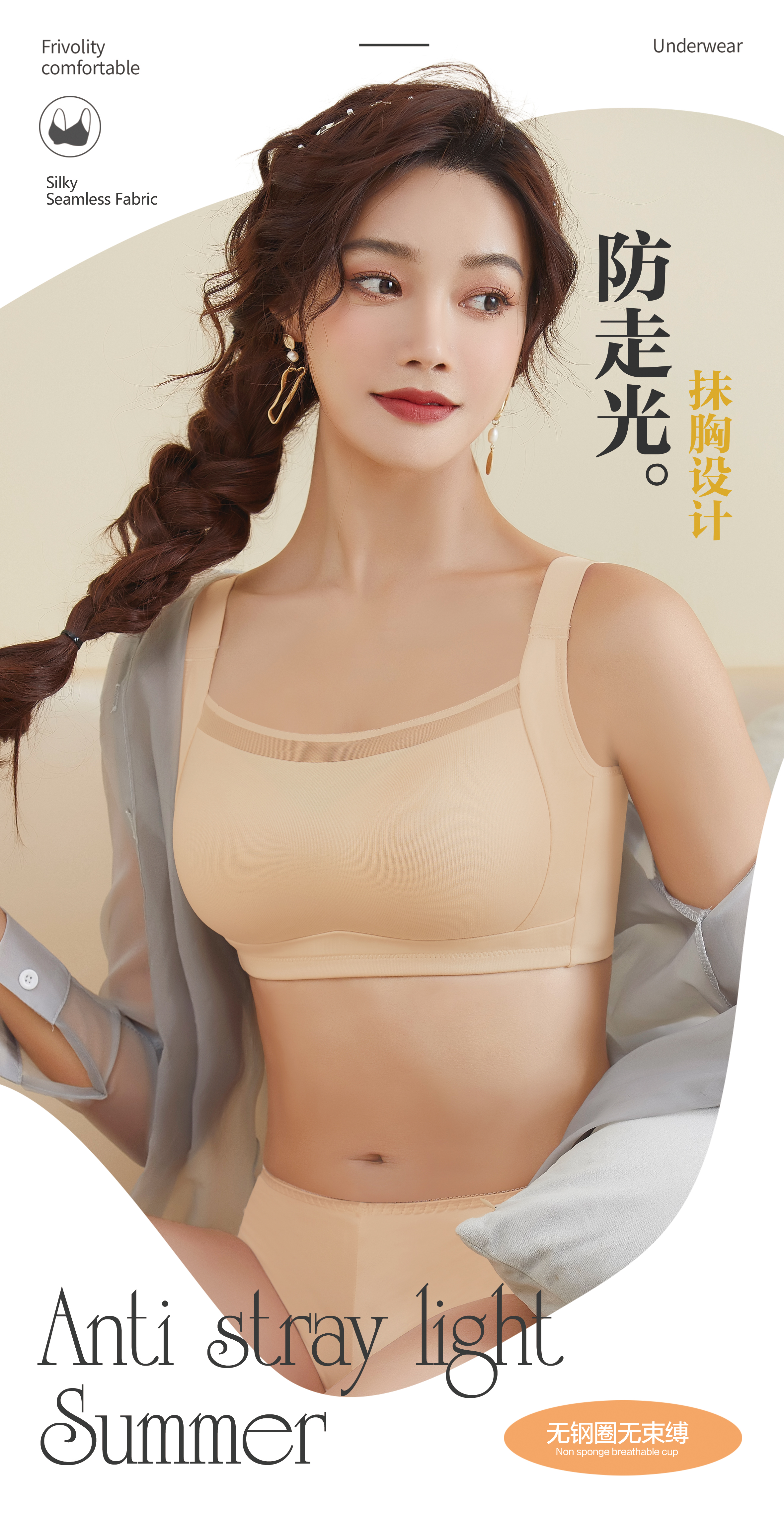 【39元1件】固定杯夏季薄款内衣女背心式文胸无痕无钢圈夏天冰丝超薄女士胸罩-1226