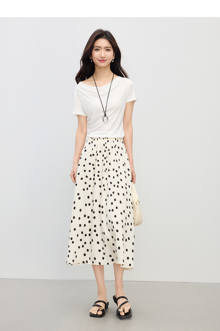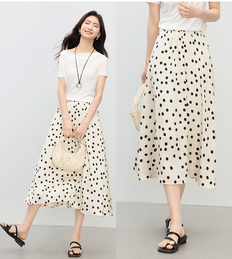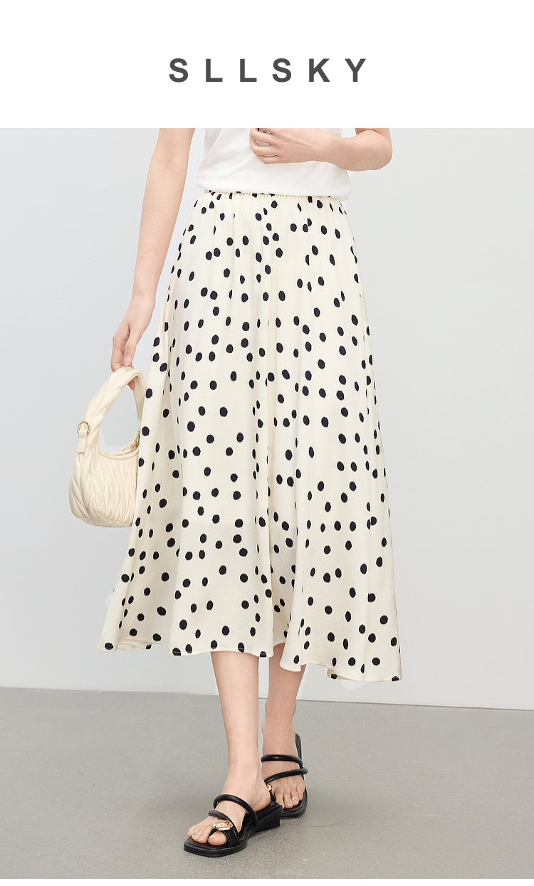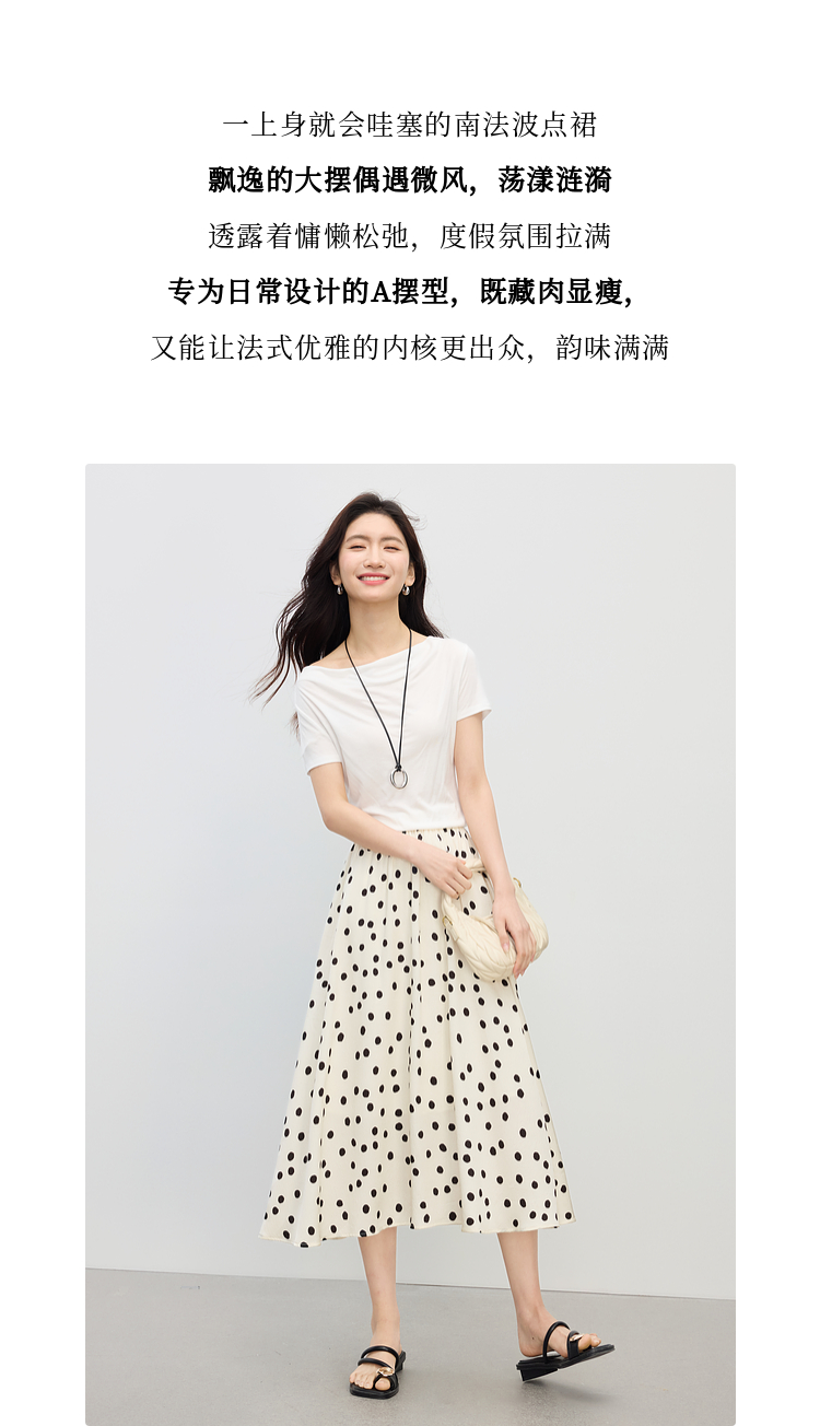 熙世界海边度假风波点半身裙女气质优雅a字雪纺裙子