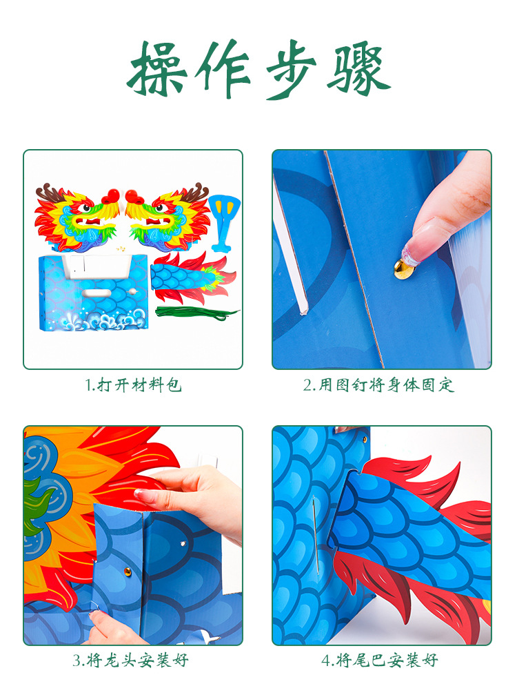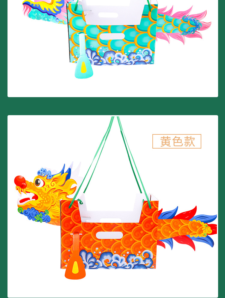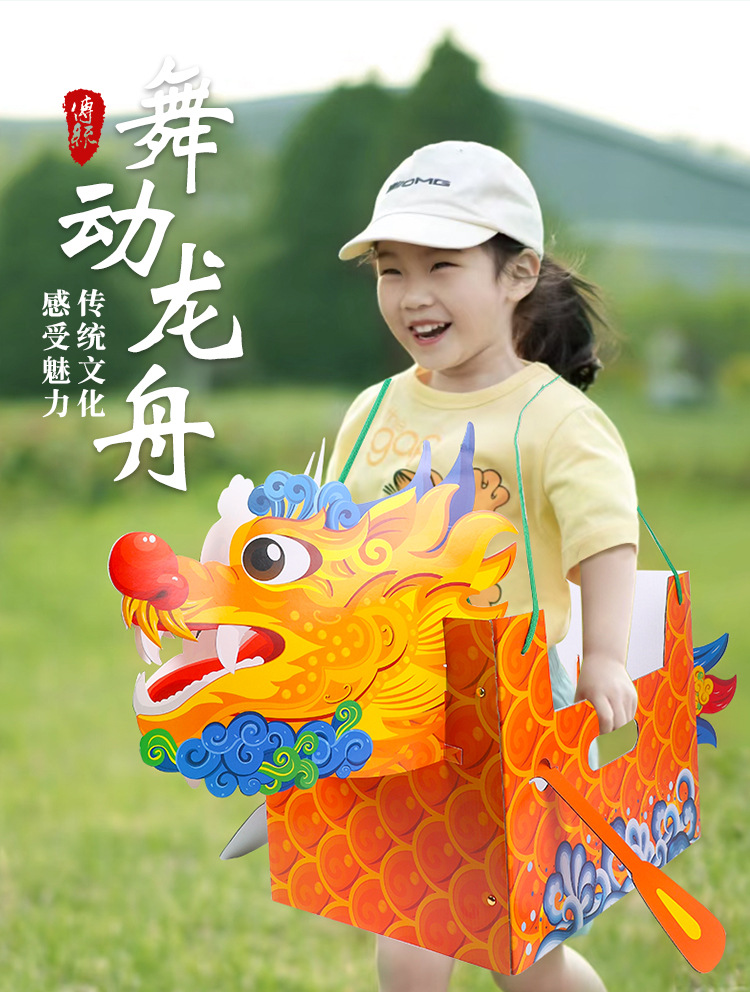 【舞动龙舟 手工拼接可穿戴】 端午节舞动龙舟 手工diy划龙舟 可穿戴制作材料包 自制赛龙舟玩具