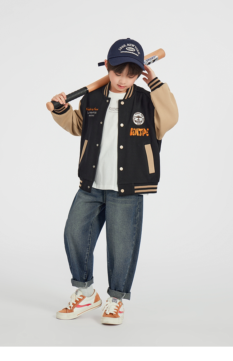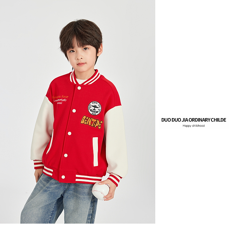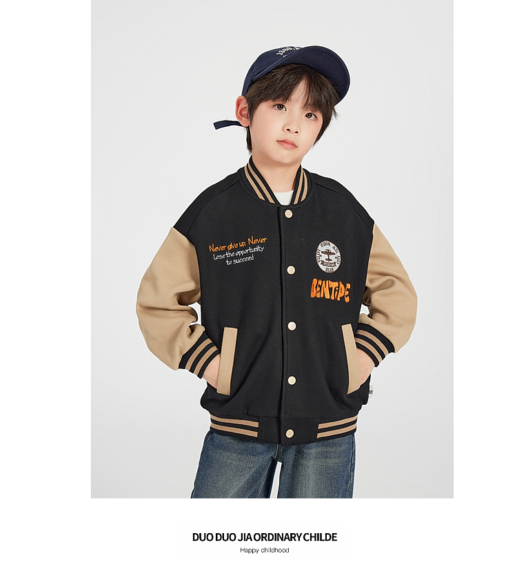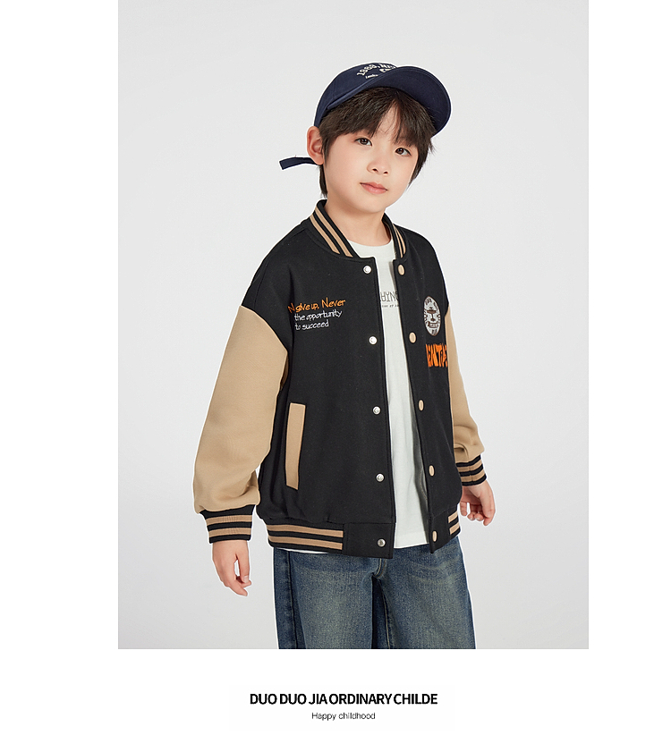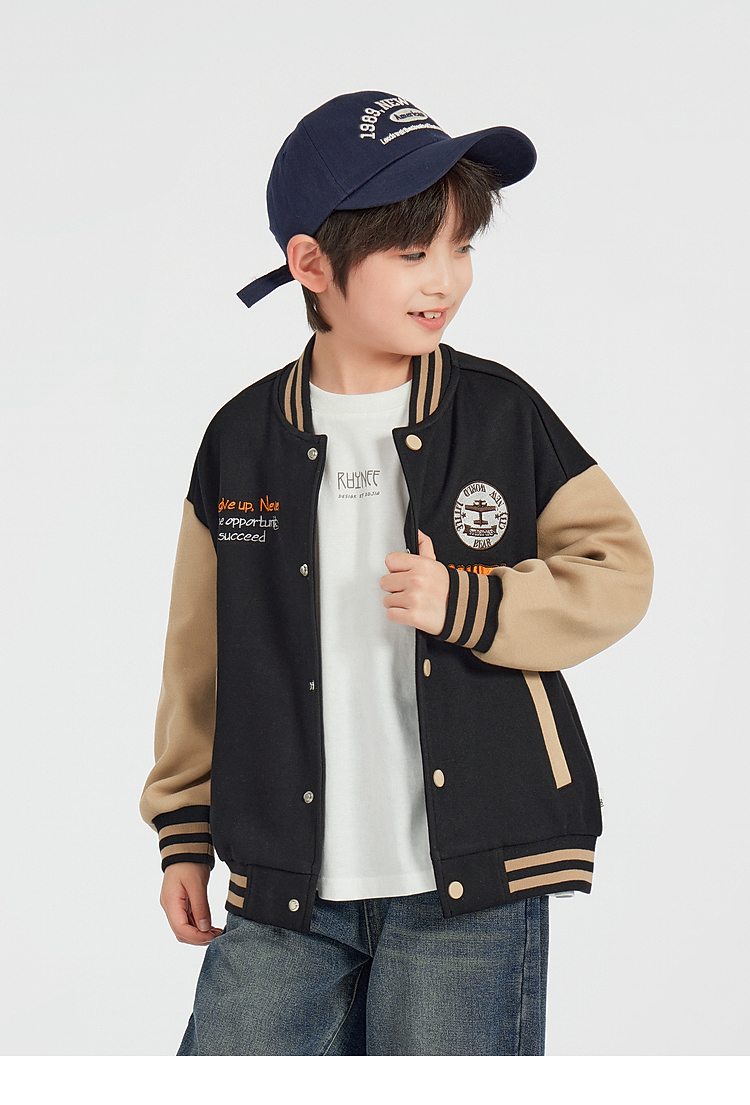 【团购价89.9】多多家男童棒球服外套2025春秋款新款儿童中大童撞色刺绣洋气上衣10276