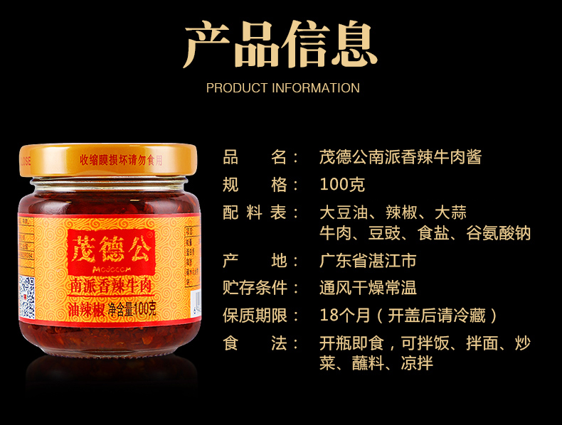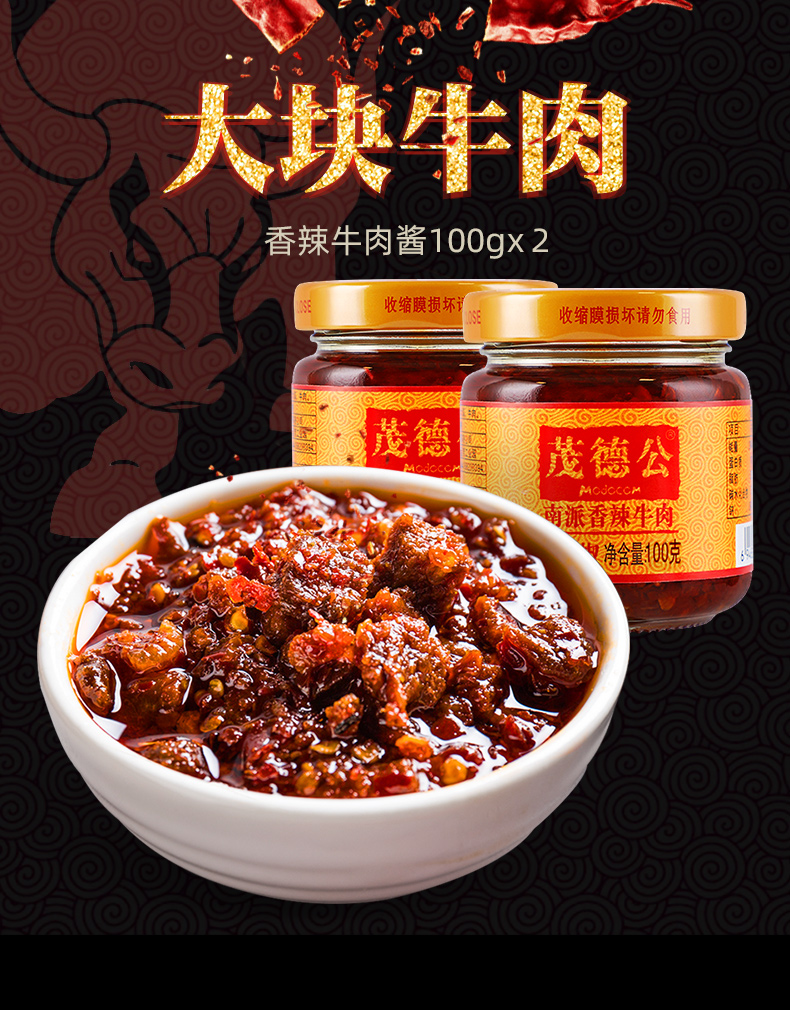 茂德公辣椒酱香辣牛肉酱农家自制下饭菜拌饭拌面酱辣酱下饭酱100g