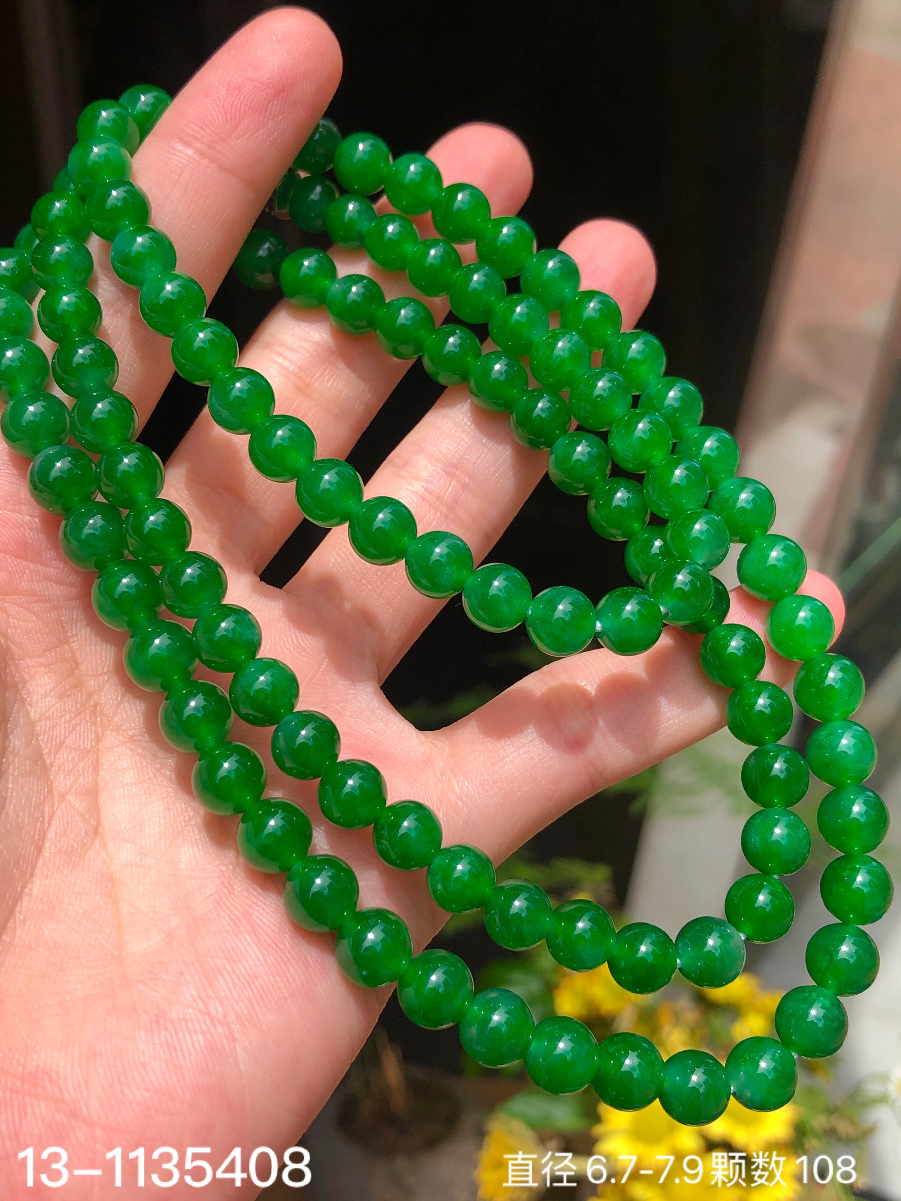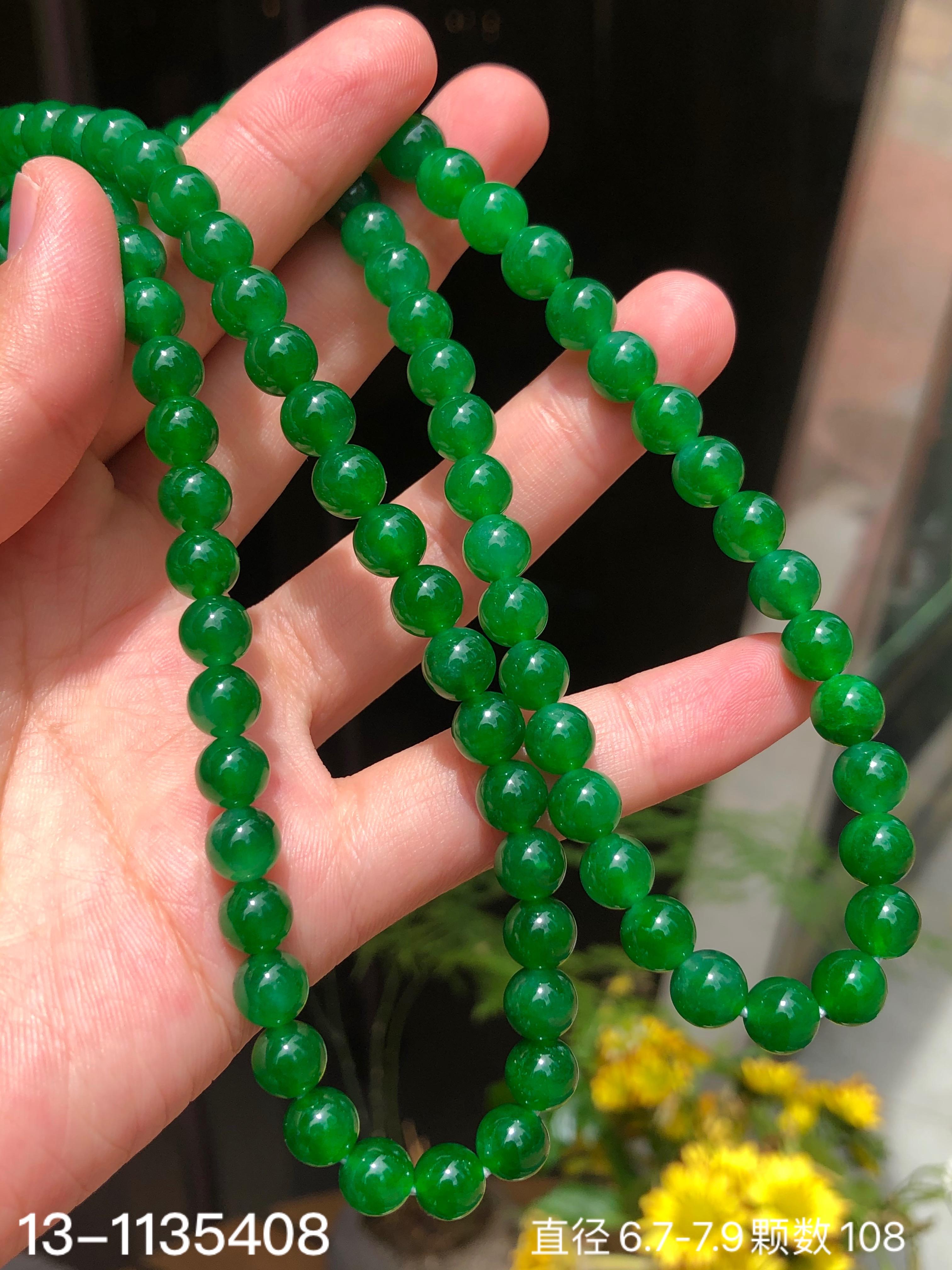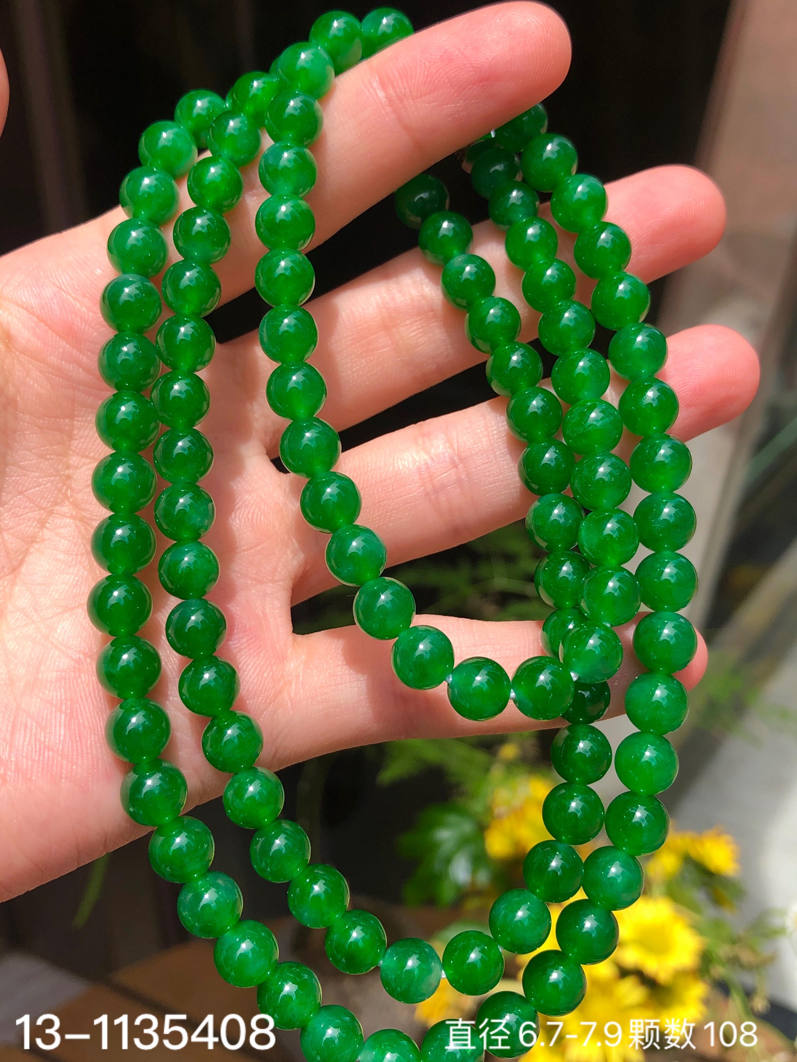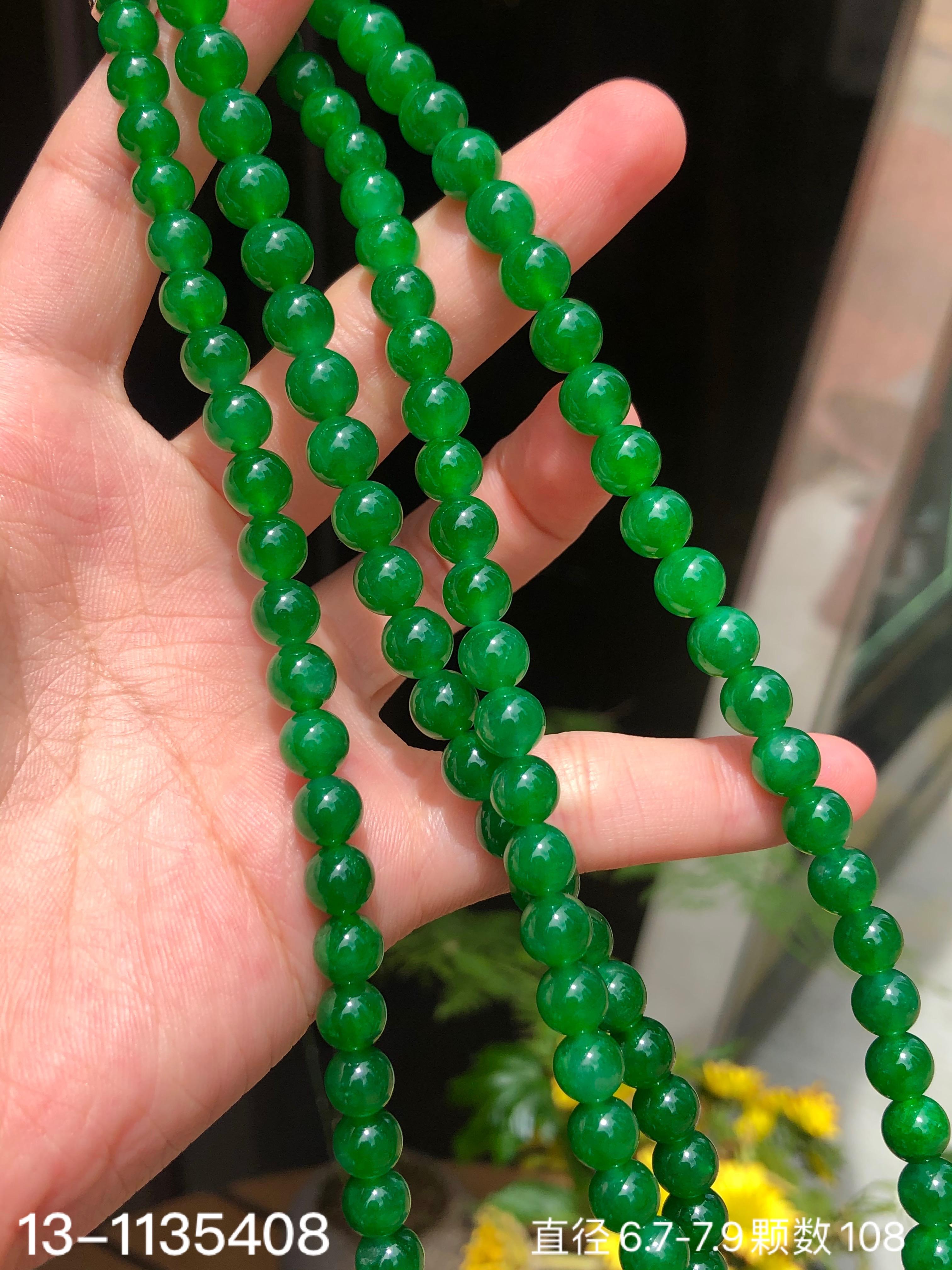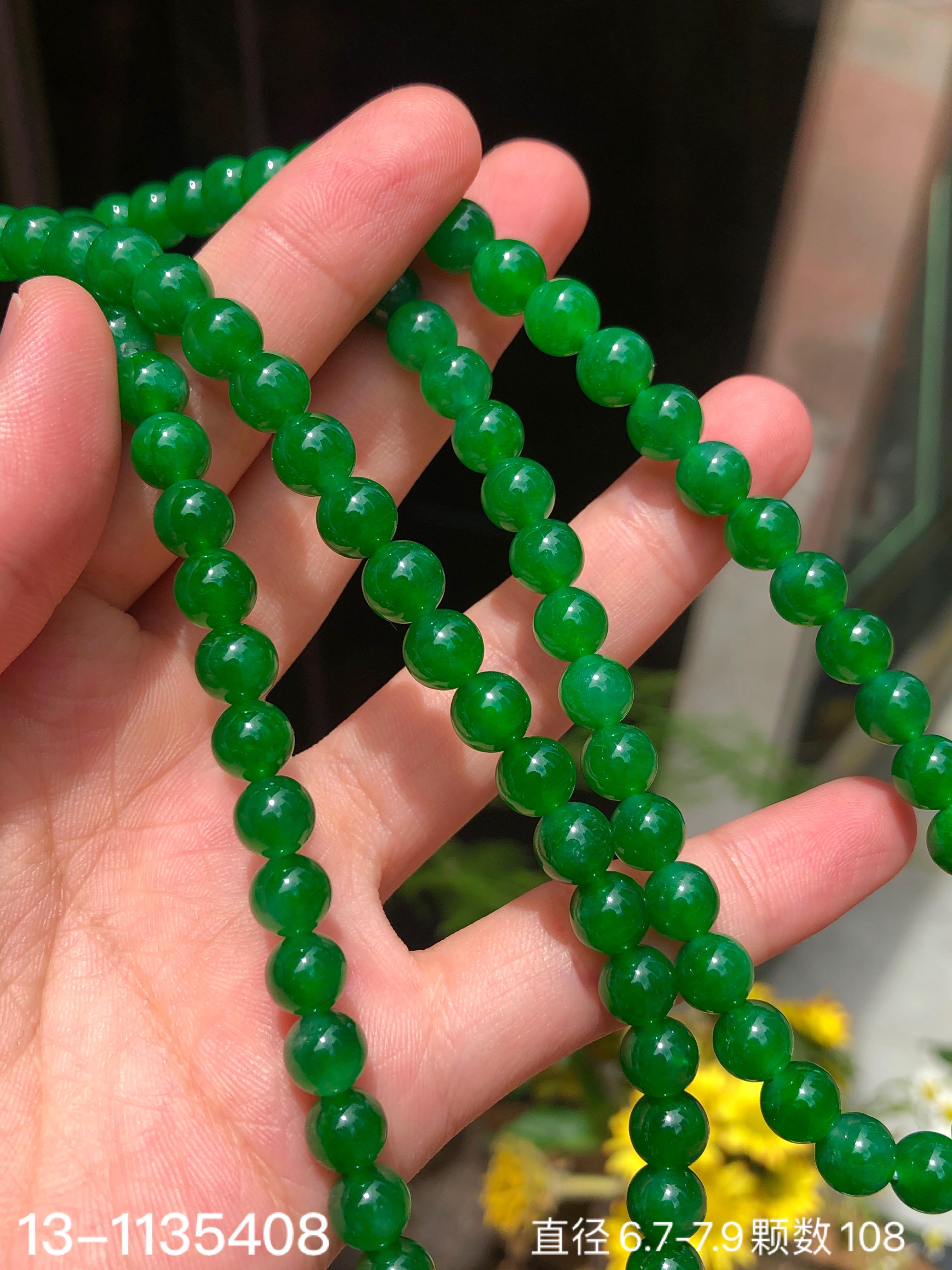 绿珠串 直径6.7-7.9 颗数108 13-1135408。具体价格微信咨询