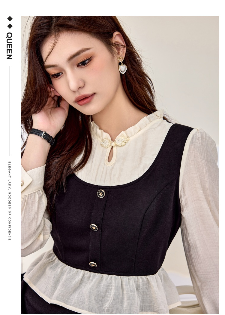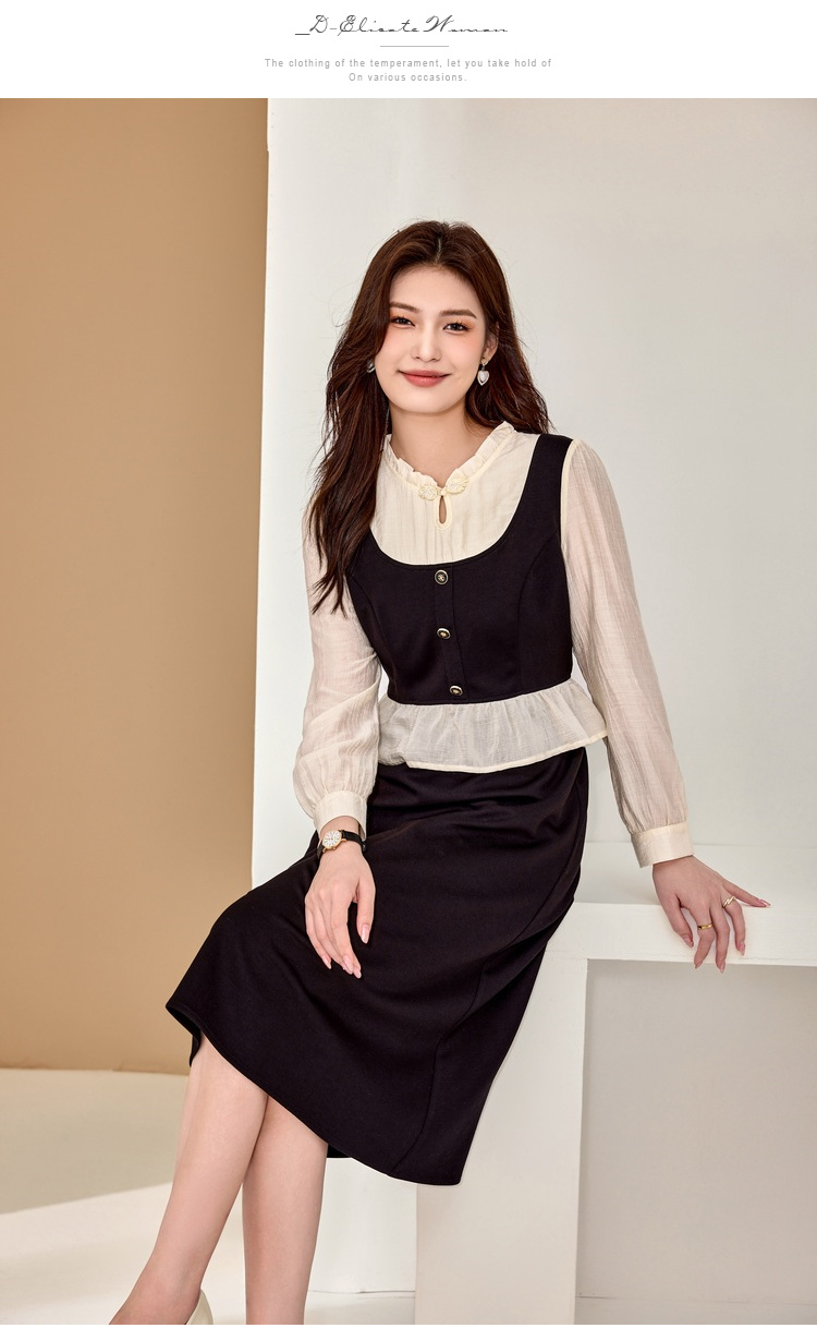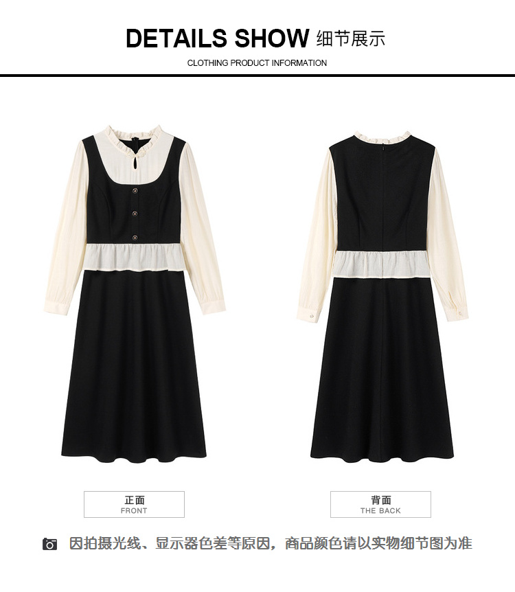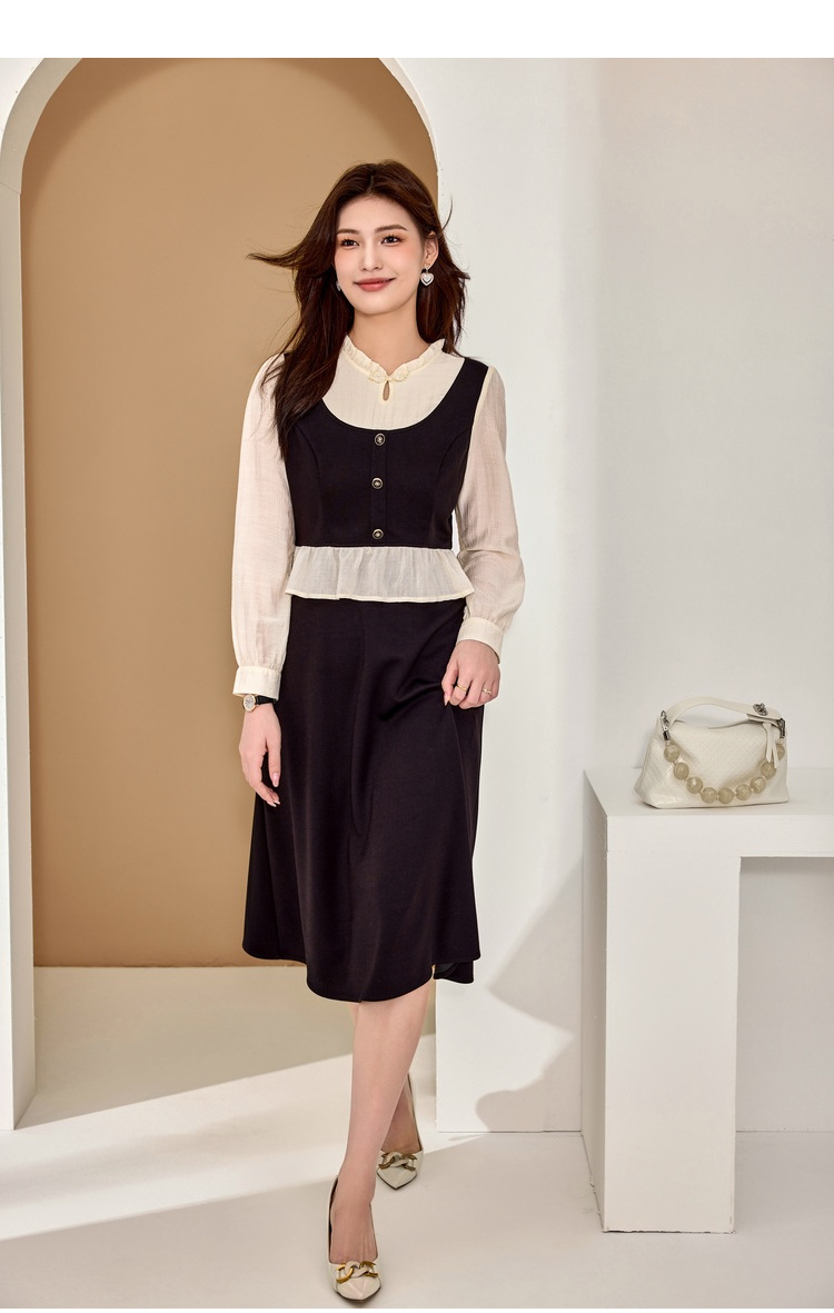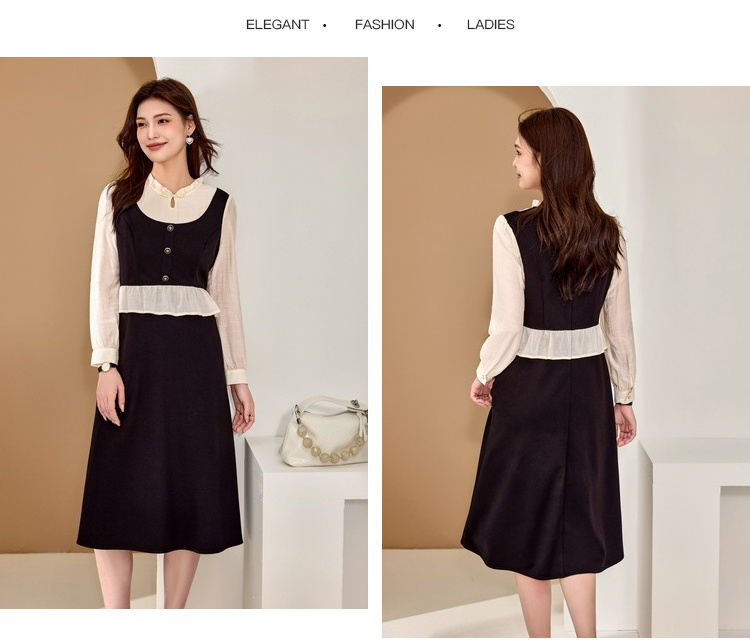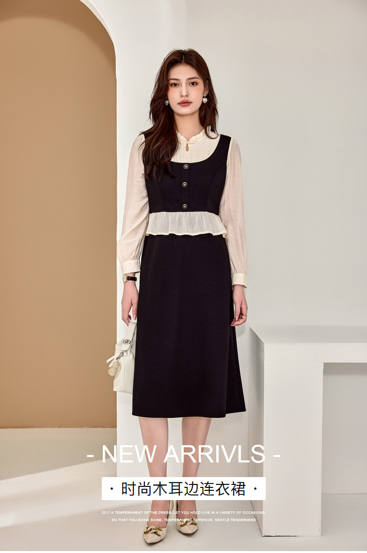 奢姿大码女装2025秋季减龄盘扣荷叶边裙子胖妹妹时尚木耳领连衣裙9943826661
