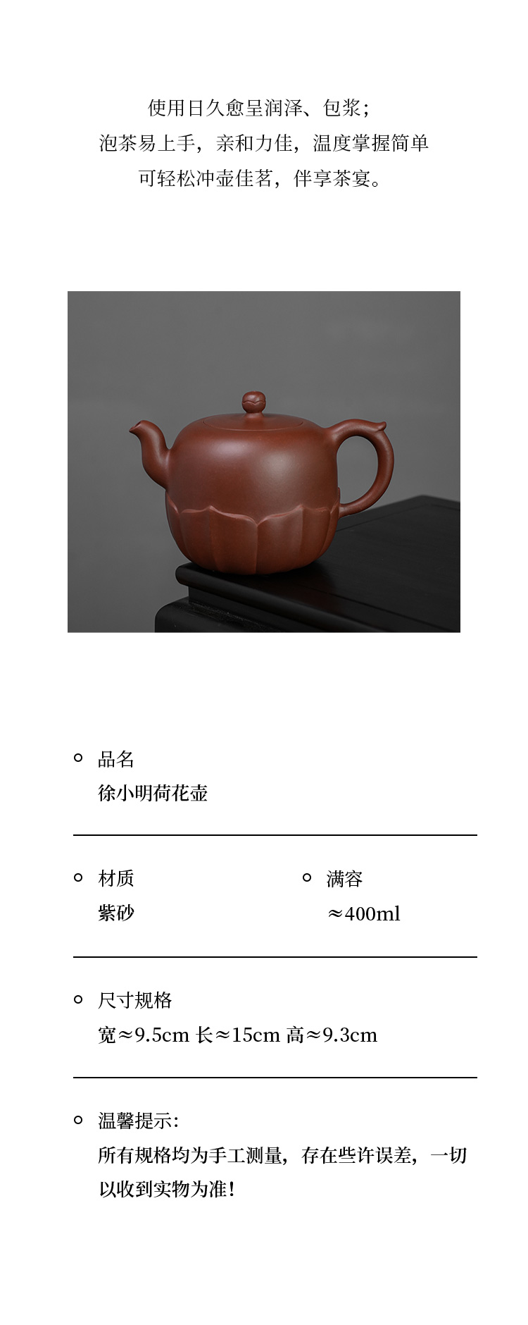 徐小明 荷花壶 宜兴紫砂原矿茶壶紫砂壶功夫茶泡茶壶茶具仿古