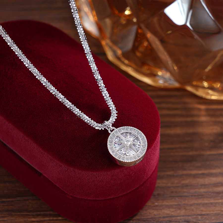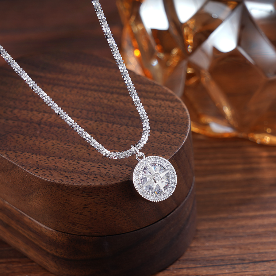 子佩集S925银【星芒幻梦】套链【FYL-1474】纯银项链时尚圆形星芒锆石八芒星2503